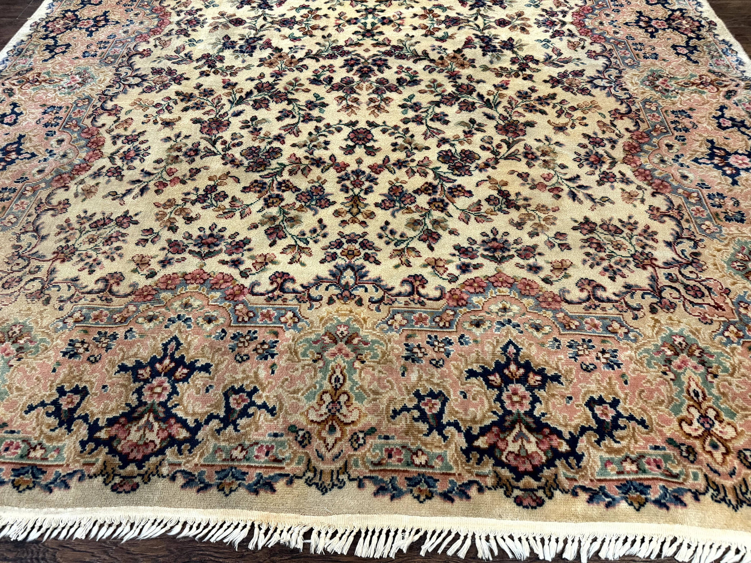 USED Antique Karastan Rug 8.8 x 12 Lanamar Floral Ivory Kirman Wool Discontinued