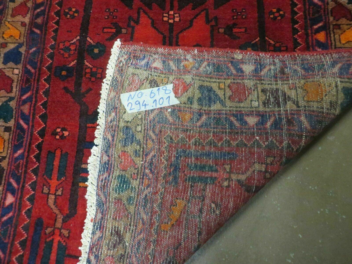 USED Antique Persian Hamadan Runner 3.4 x 9.7 - Wool, Red and Navy Blue