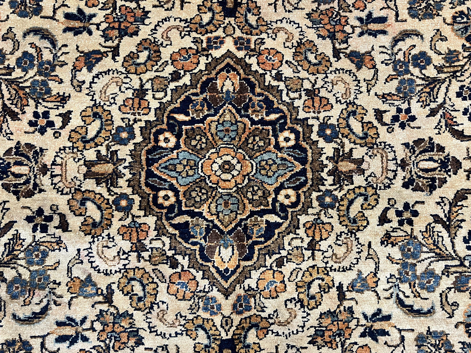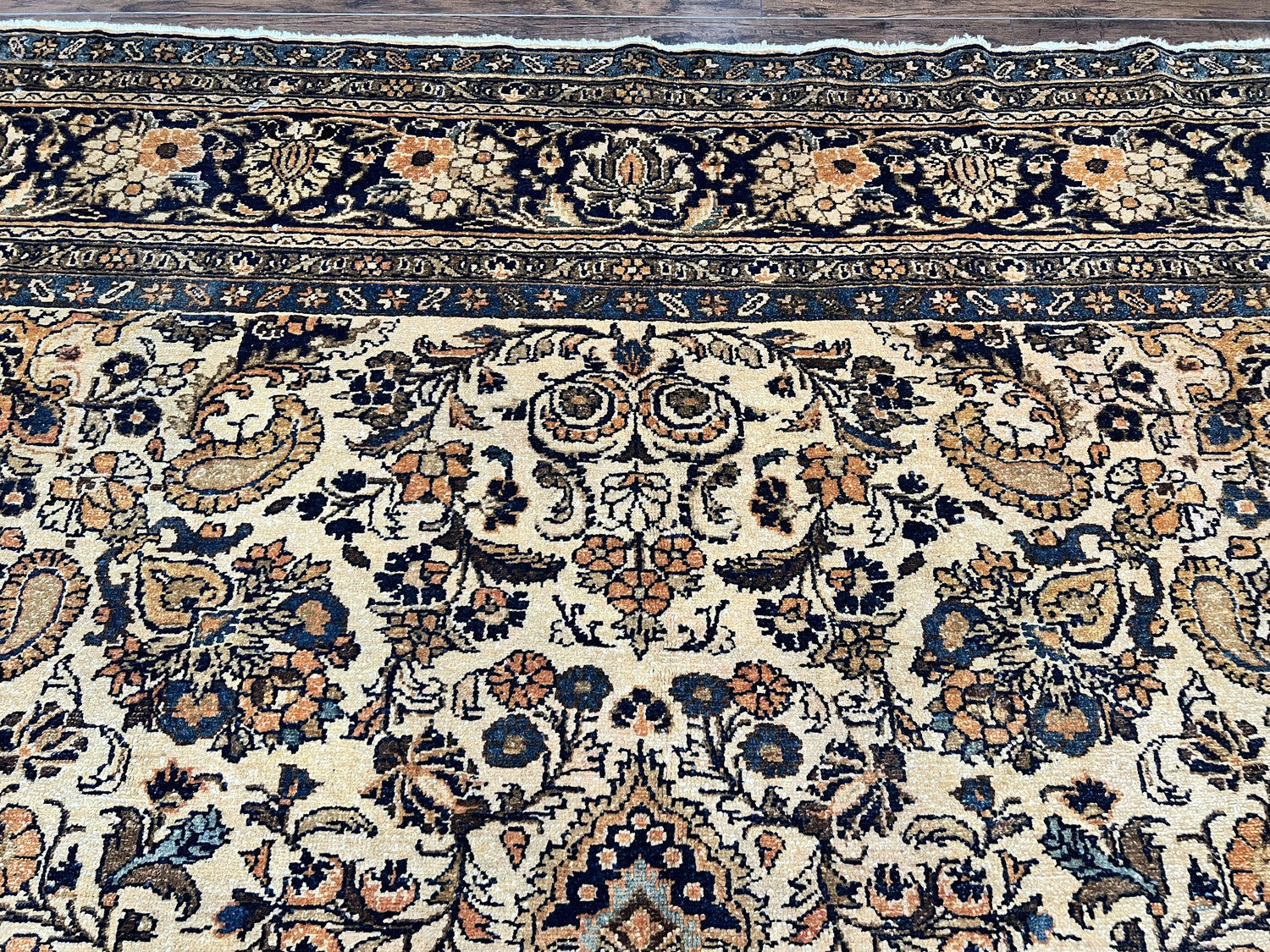 USED Antique Persian Rug 9x11, Wool Handmade 1920s Oriental Carpet, Persian Hamadan Anjelas Rug, Cream Black, Floral Allover Oriental Rug 9 x 11 Room Sized Rug