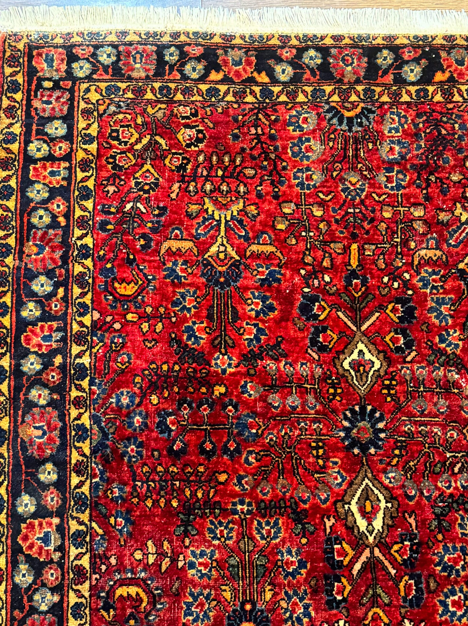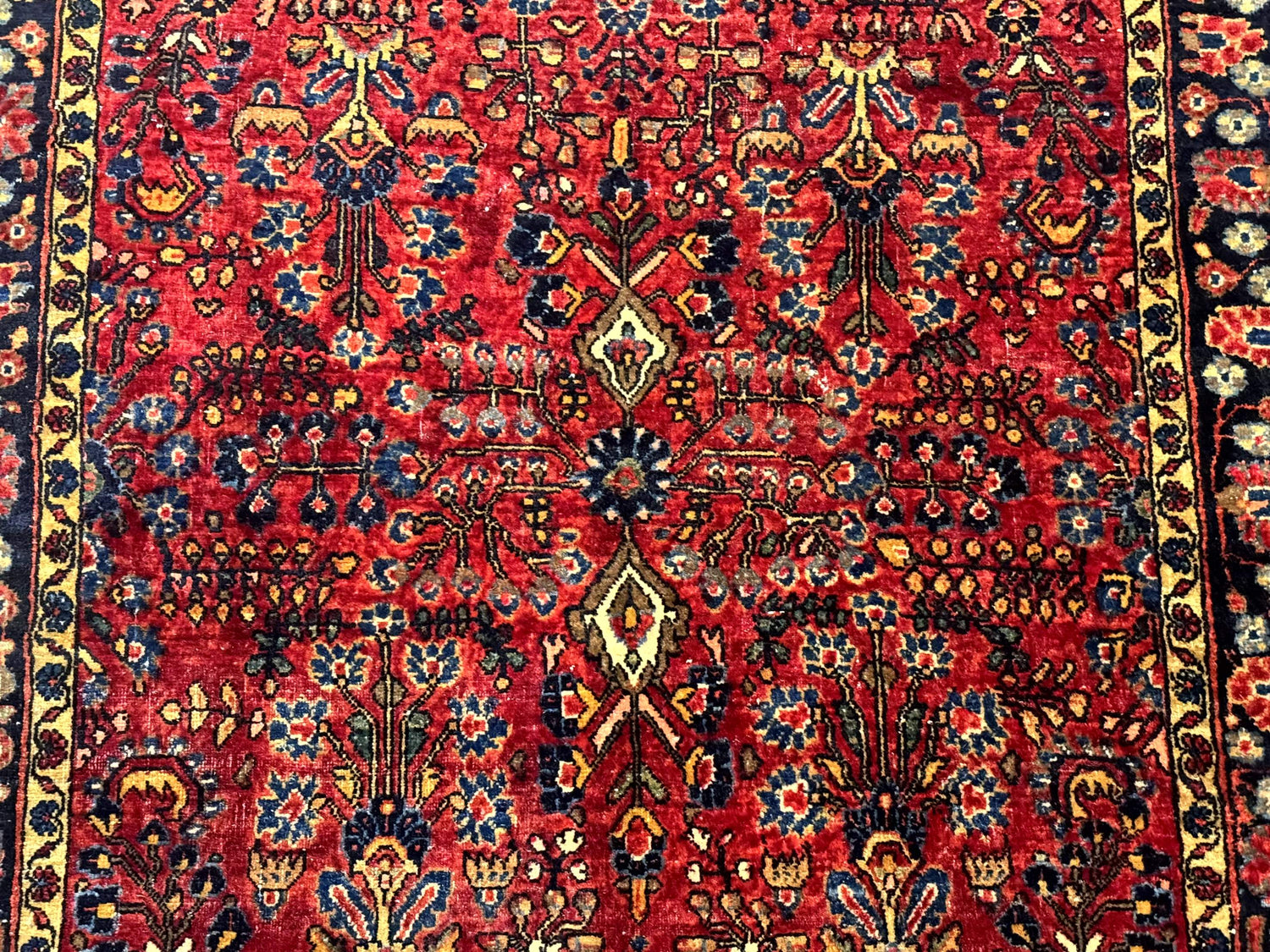 USED Antique Persian Sarouk Rug 3x4, Red, Floral, 1920s Wool Rug