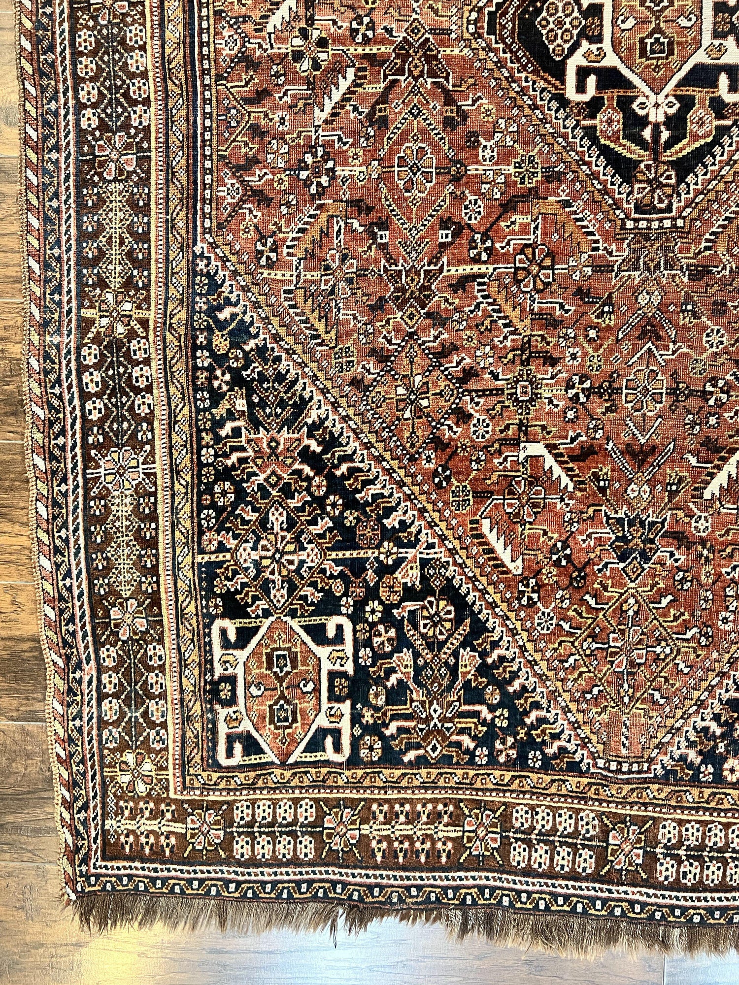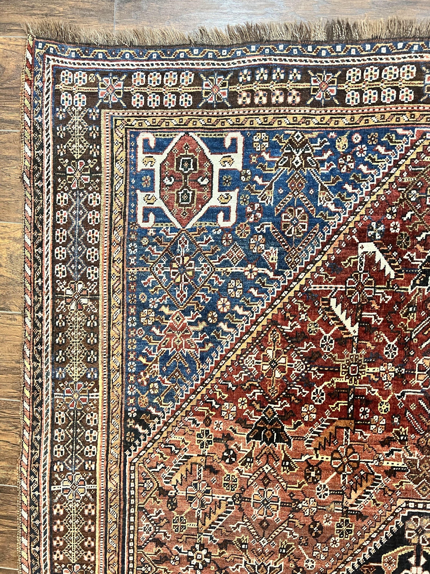 USED Antique Persian Shiraz Tribal Rug 6x8, Geometric Rug, Wool Handmade Hand Knotted Carpet, Red Blue