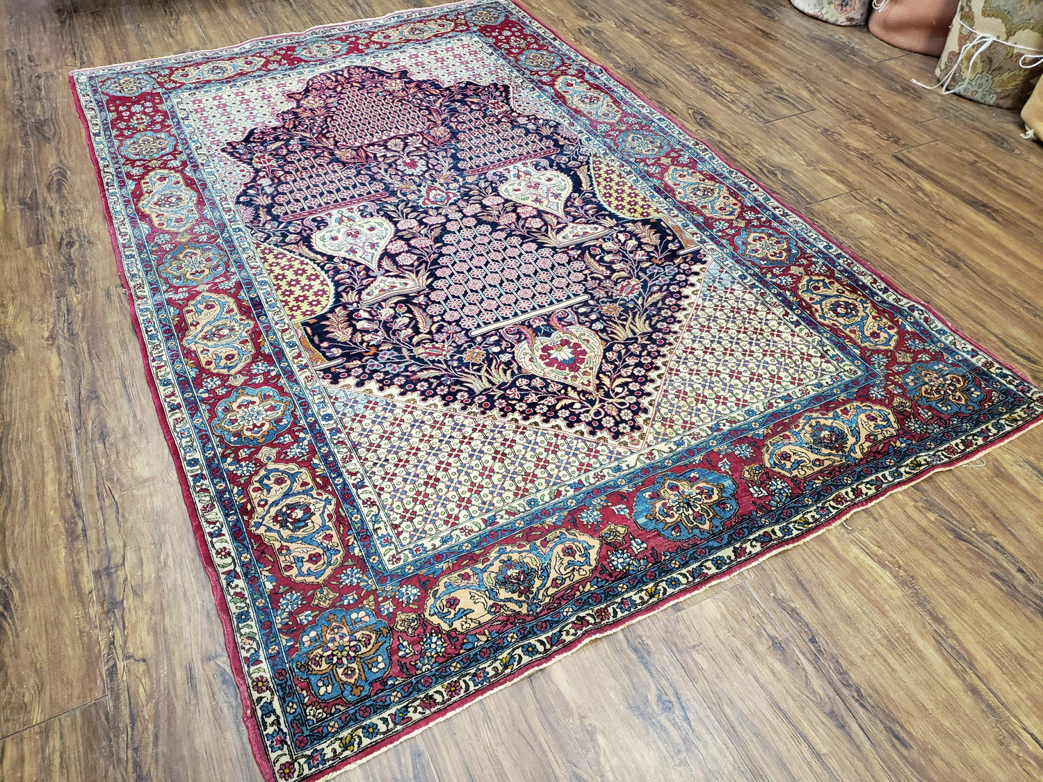 USED Antique Persian Tehran Rug 5x8, Midnight Blue and Red, Hand-Knotted, Wool