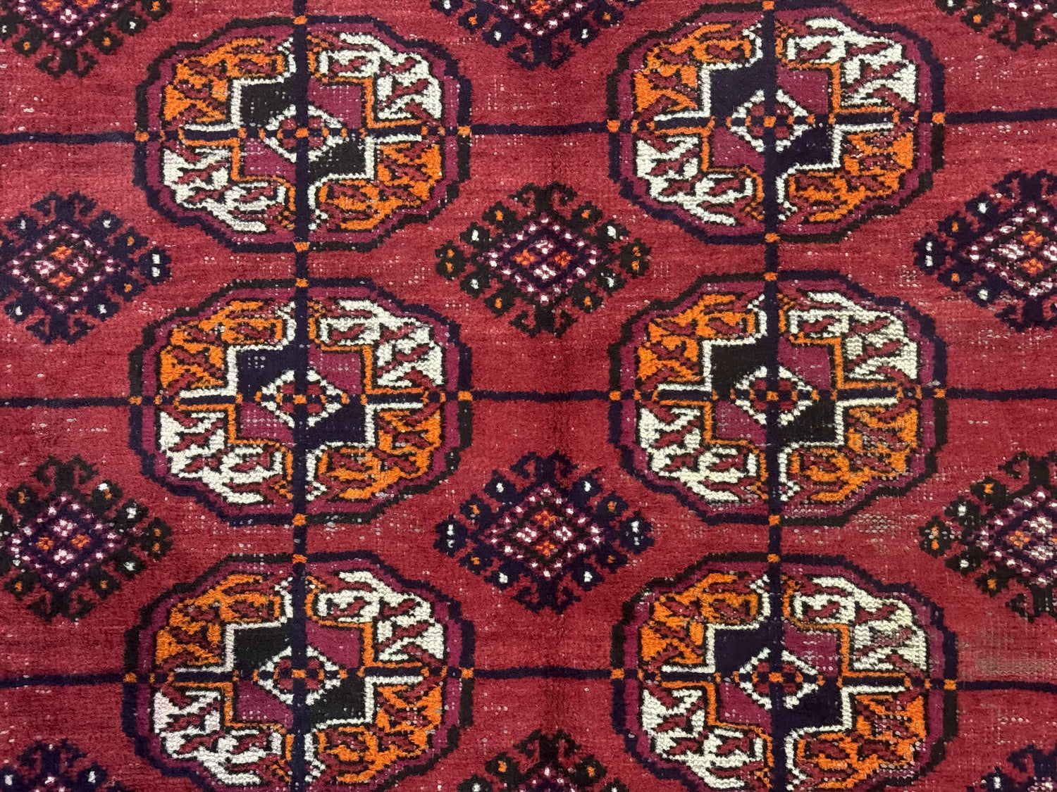 USED Antique Persian Turkoman Bokhara Rug 7x11, Tribal Rug, Red