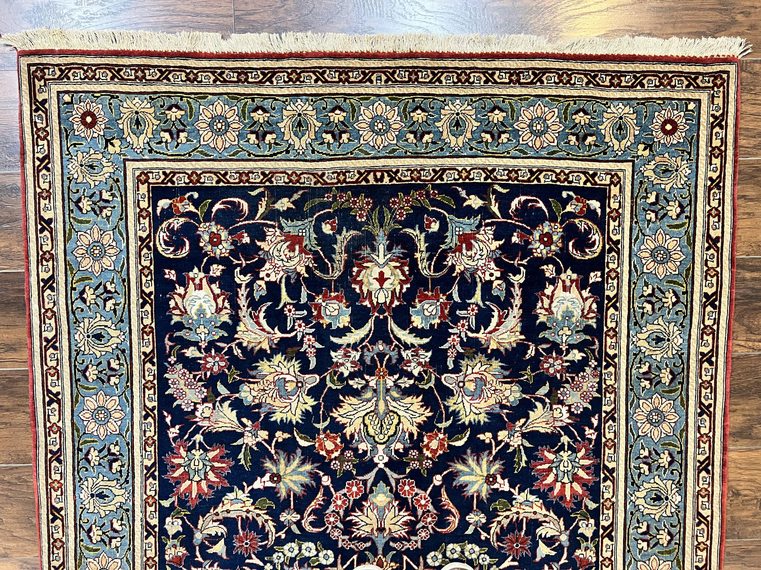 USED Blue Persian Qum Rug 5x7, Very Fine and Wonderful Authentic Persian Carpet, Wool Hand Knotted Vintage Semi Antique Oriental Rug, Floral, Ghom Qom Rug