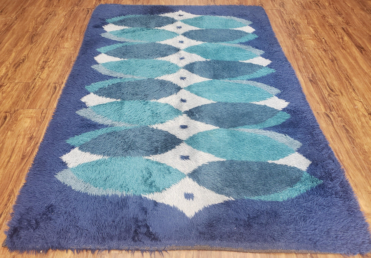 | Condition/Notes | A beautiful 1960s Danish Ege Rya Shag rug in nice condition. Wonderful blue colors. Free of stains, odors, discolorations, tears, etc. Good, soft pile. Recently cleaned and ready to be enjoyed in your space. |