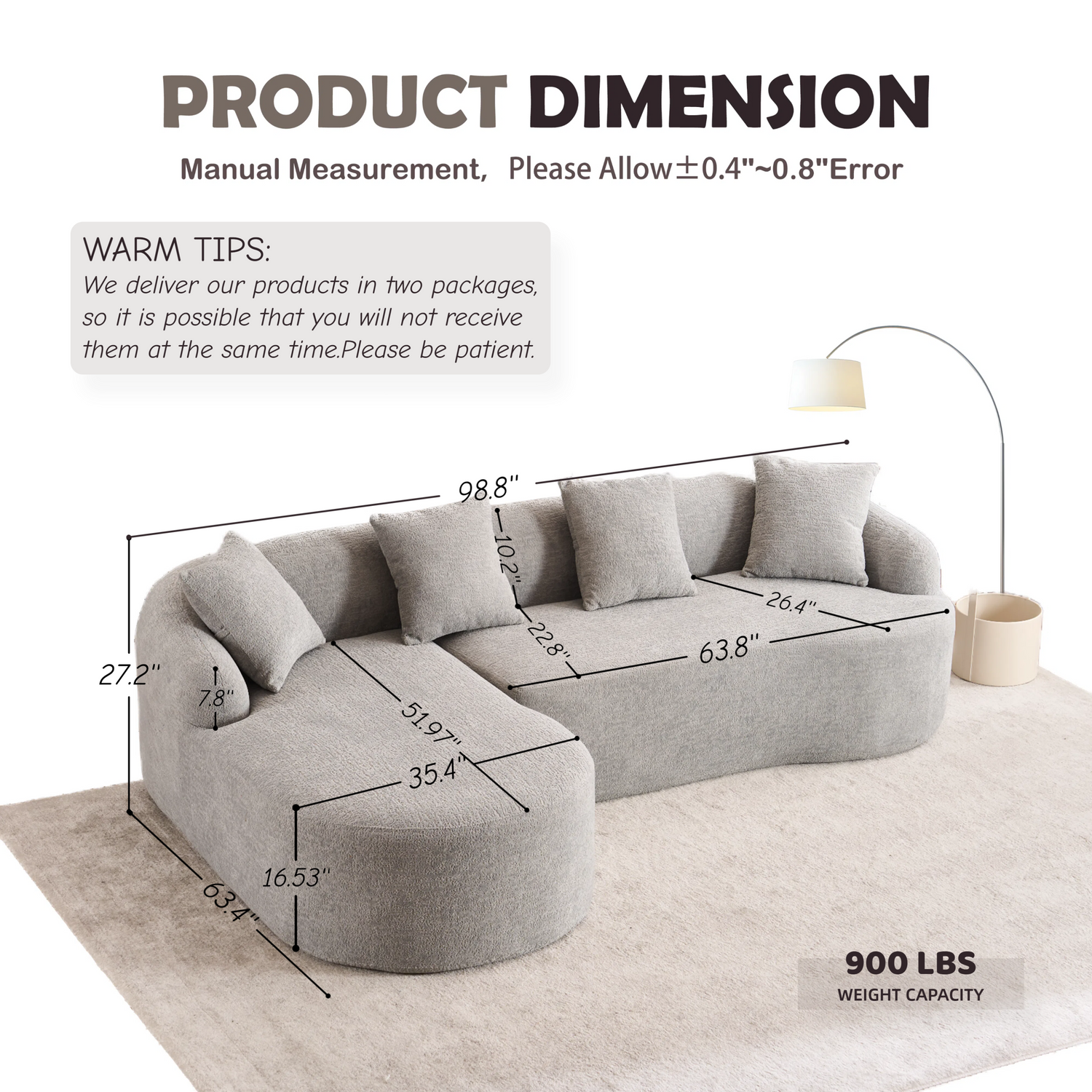 NEW Boneless Minimalist Curved Chaise Grey Chenille Compression Modular L-Shape Sectional Sofa Sleeper Couch with 30D High-Density Foam
