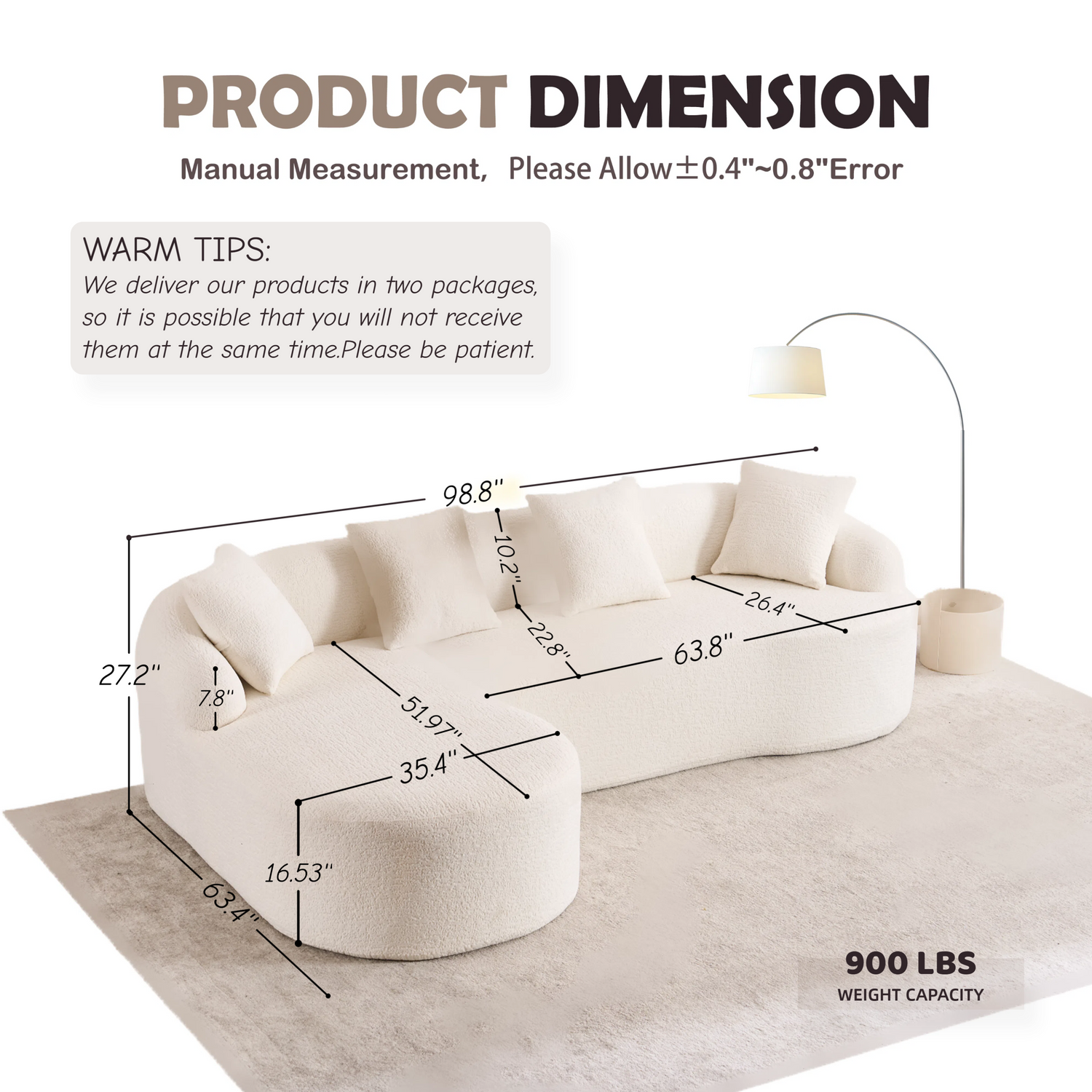 NEW Boneless L-Shape Sectional Sofa White Modular Chenille Compression 30D High-Density Foam Minimalist Modular Couch Sleeper with Curved Chaise