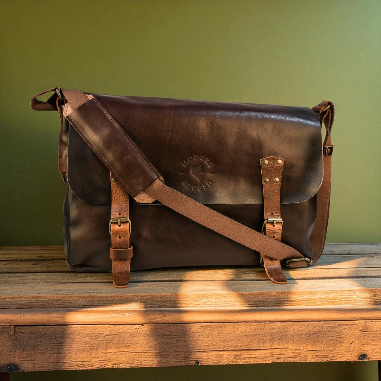 NEW Bovine Leather Buckled Messenger Bag - Brown