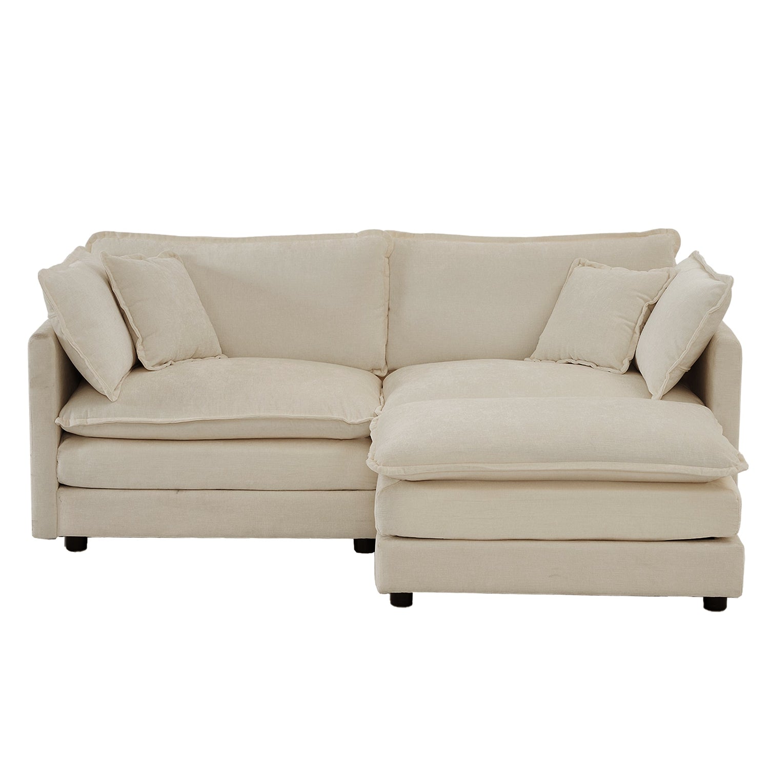 - Premium Material - Sturdy solid wood frame, high end breathable Chenille fabric, filled with high quality sponge, making this sectional sofa beautiful and comfort, it can be perfectly support your body shape and give you relaxation feelings after a big day.