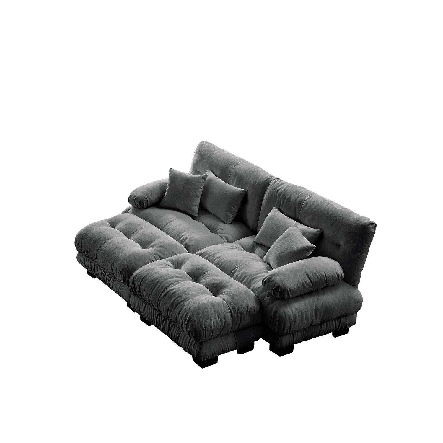 NEW Cloud Gray Chenille 2 Seater Loveseat Upholstered Wide Arm Couch Sleeper Sofa with 2 Lumbar Pillows and 2 Throw Pillows and 2 Ottomans