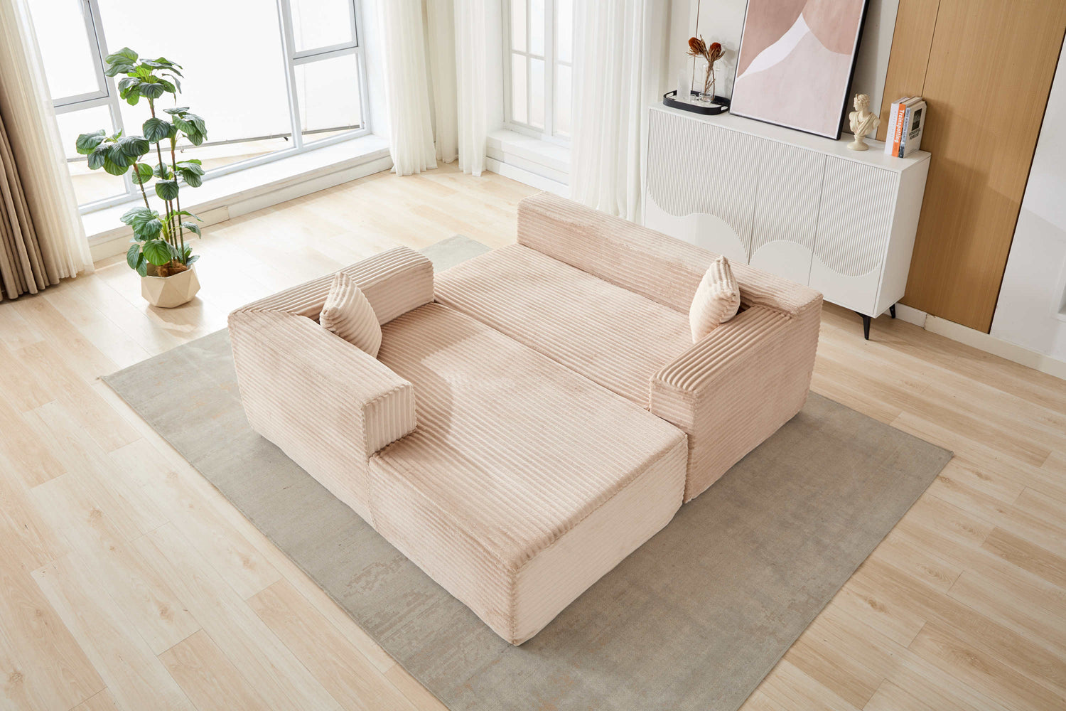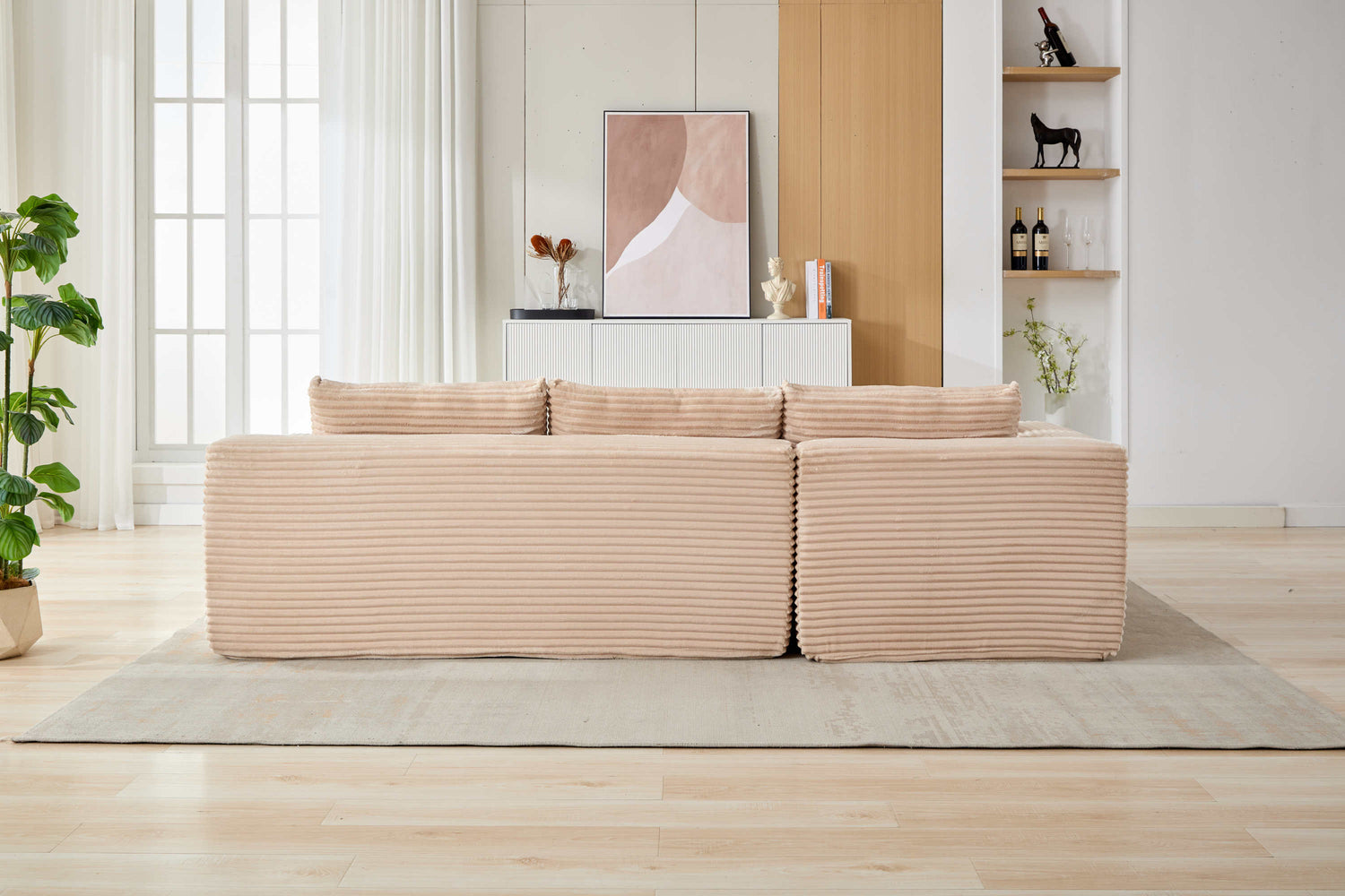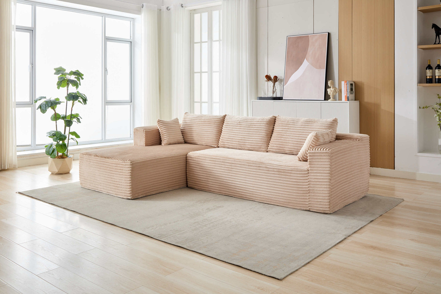 NEW Compression Sectional Couch with Comfy Chaise, Boneless L Shape Sofa with Deep Seat, Minimalist Modular Couches Sleeper for Living Room Bedroom Apartment Lounge,corduroy,Beige