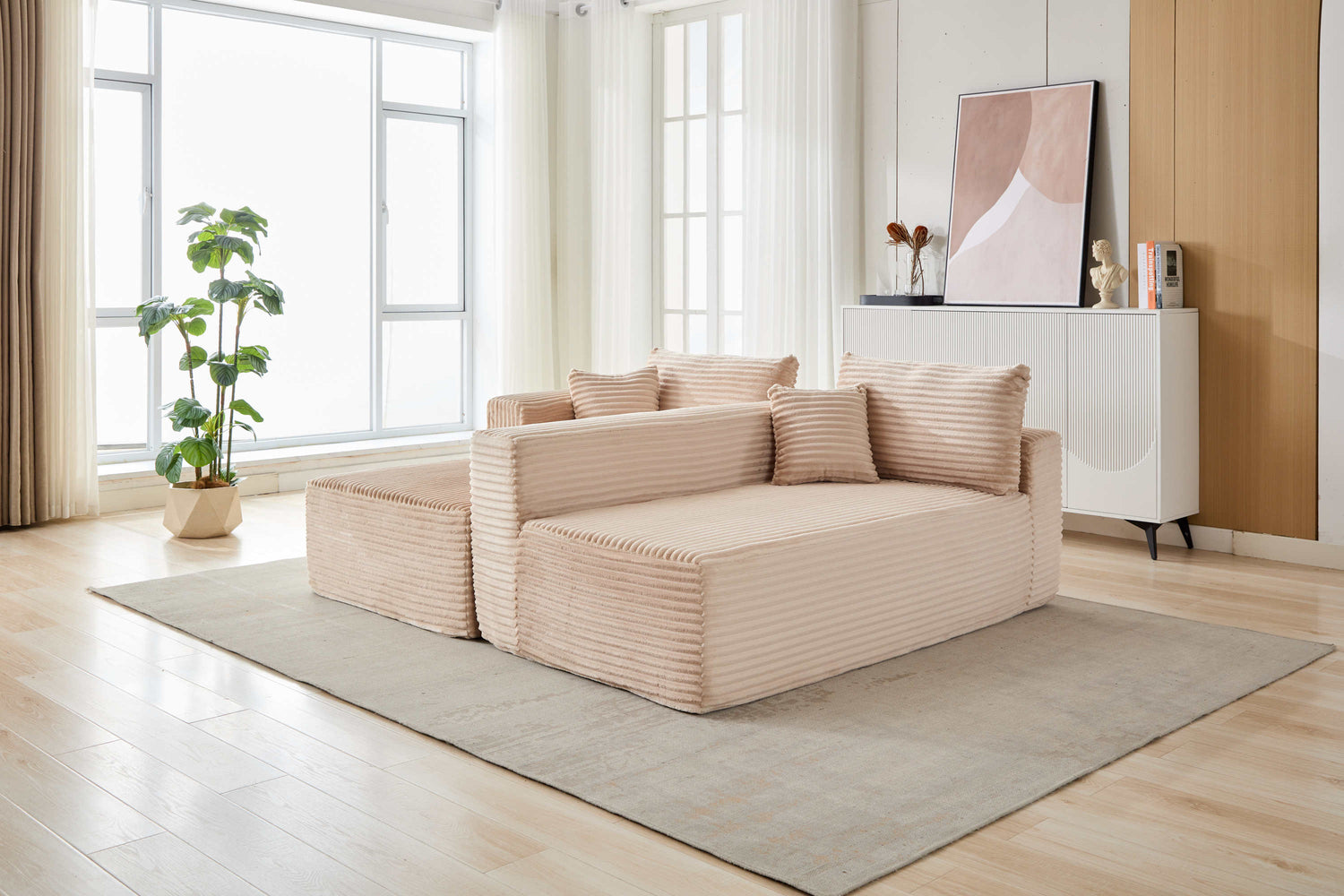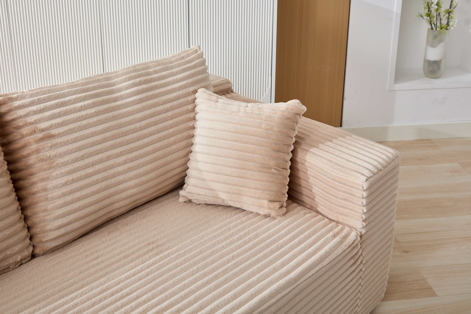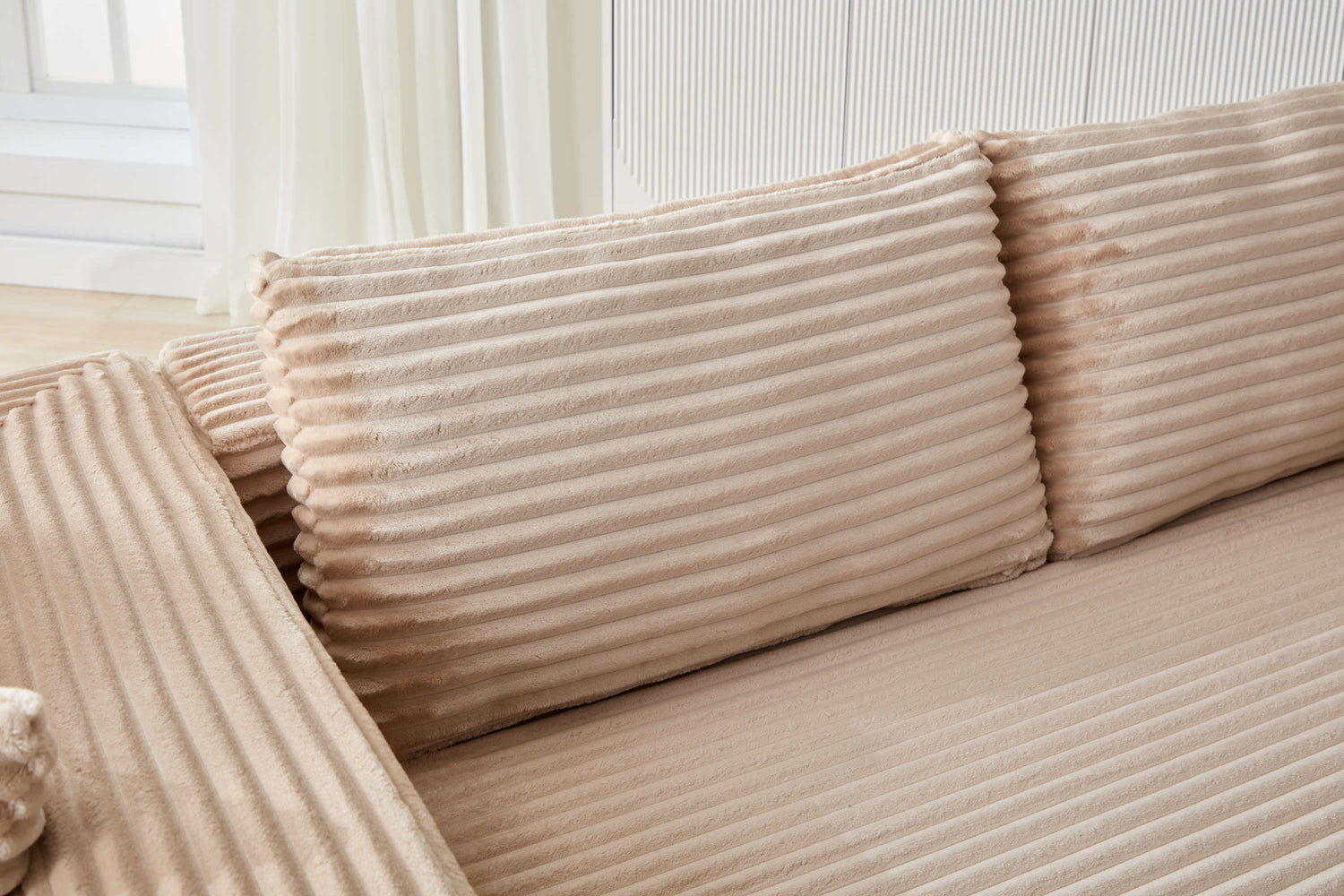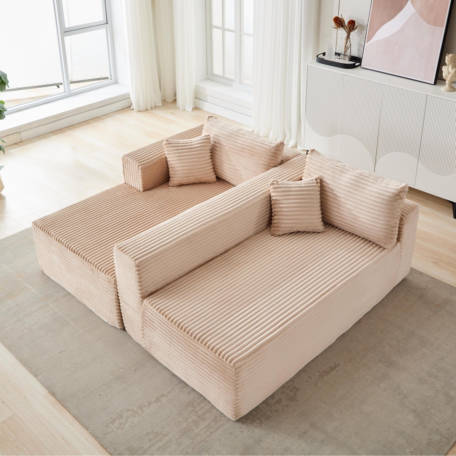 NEW Compression Sectional Couch with Comfy Chaise, Boneless L Shape Sofa with Deep Seat, Minimalist Modular Couches Sleeper for Living Room Bedroom Apartment Lounge,corduroy,Beige