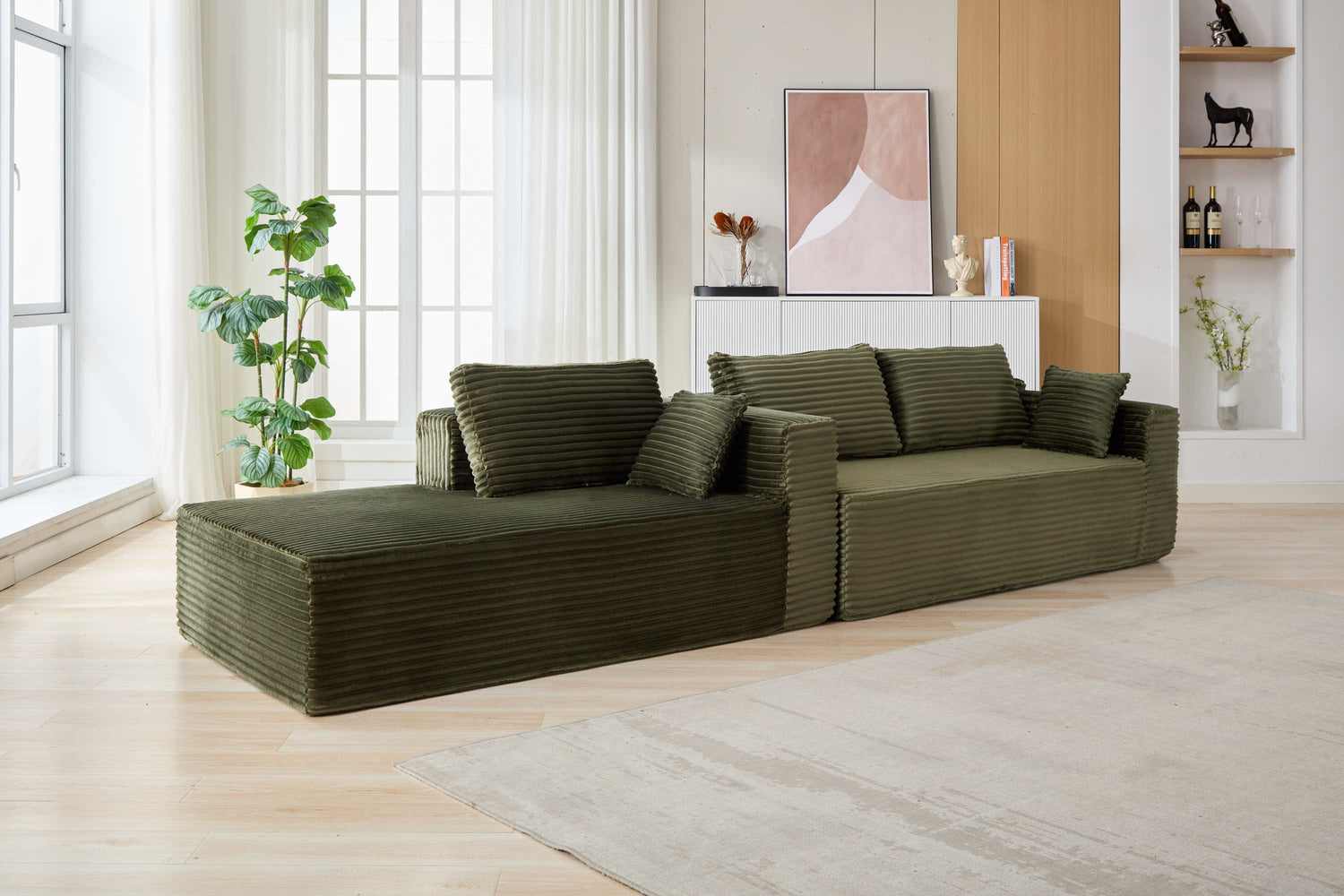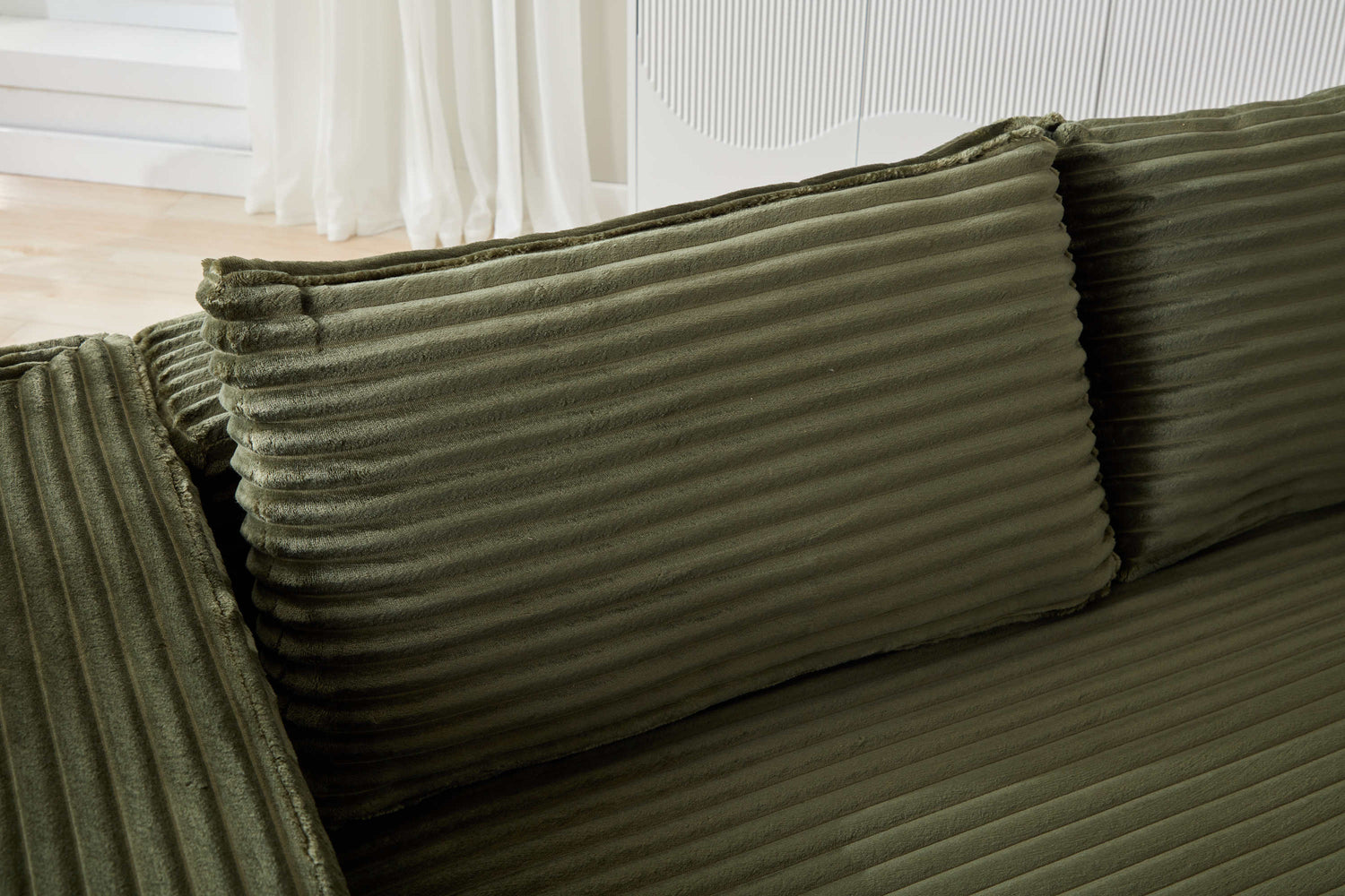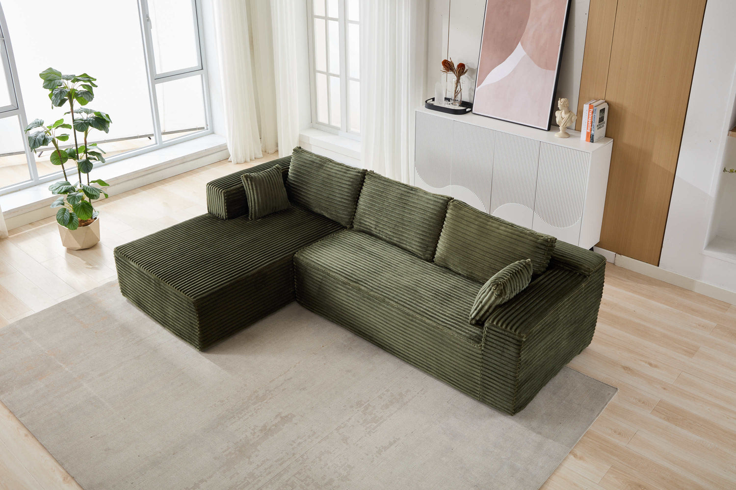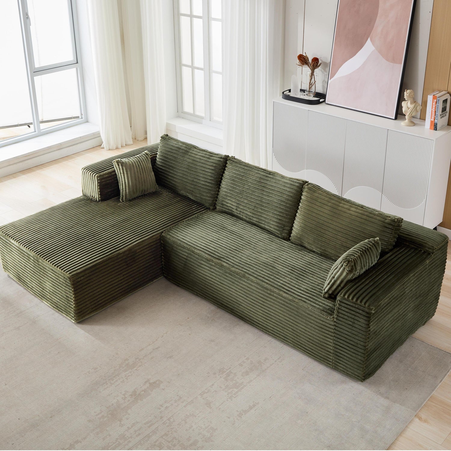 NEW Compression Sectional Couch with Comfy Chaise, Boneless L Shape Sofa with Deep Seat, Minimalist Modular Couches Sleeper for Living Room Bedroom Apartment Lounge,corduroy,Green