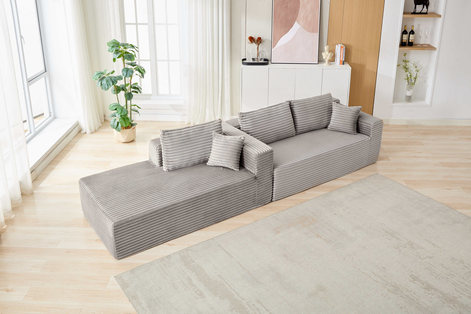- [Modular Sectional Couch] The L-shaped sectional sofa designed with versatility in mind. Its flexible design allows for easy adaptation to suit a range of spaces. The minimalist style is ideal for optimising space, particularly when placed against a wall. Two chic pieces offer customers the option to customise their comfort and style.