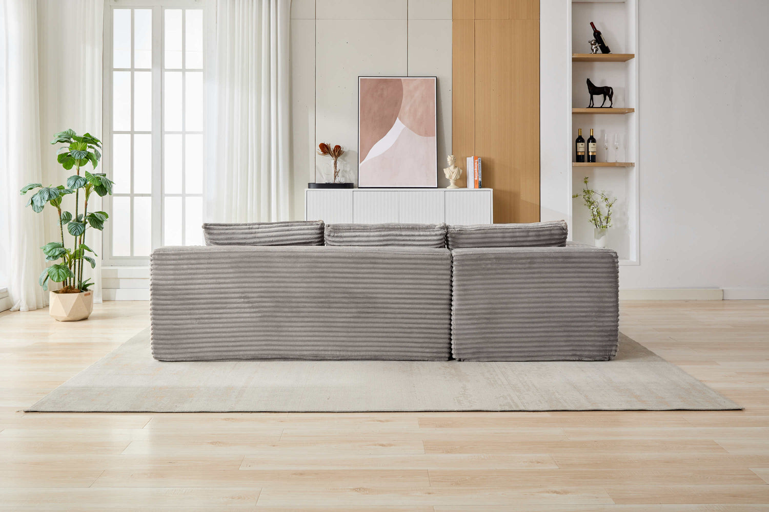 NEW Grey Compression Sectional Couch Boneless L Shape Sofa