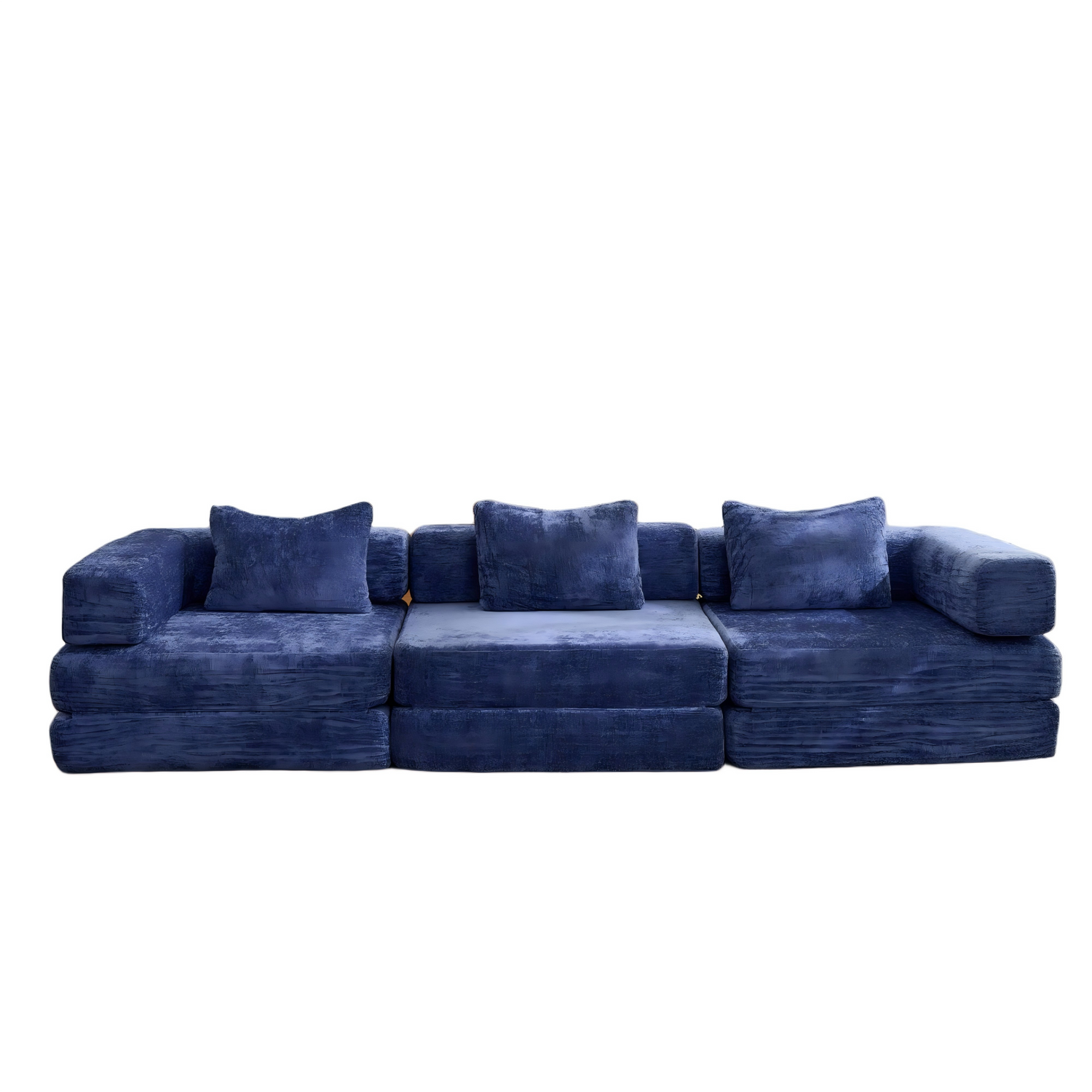 NEW Dark Blue Chenille Fabric Compression Convertible Floor Sofa Bed with Fixed-Shape Frame Boneless Modular Sectional Couch