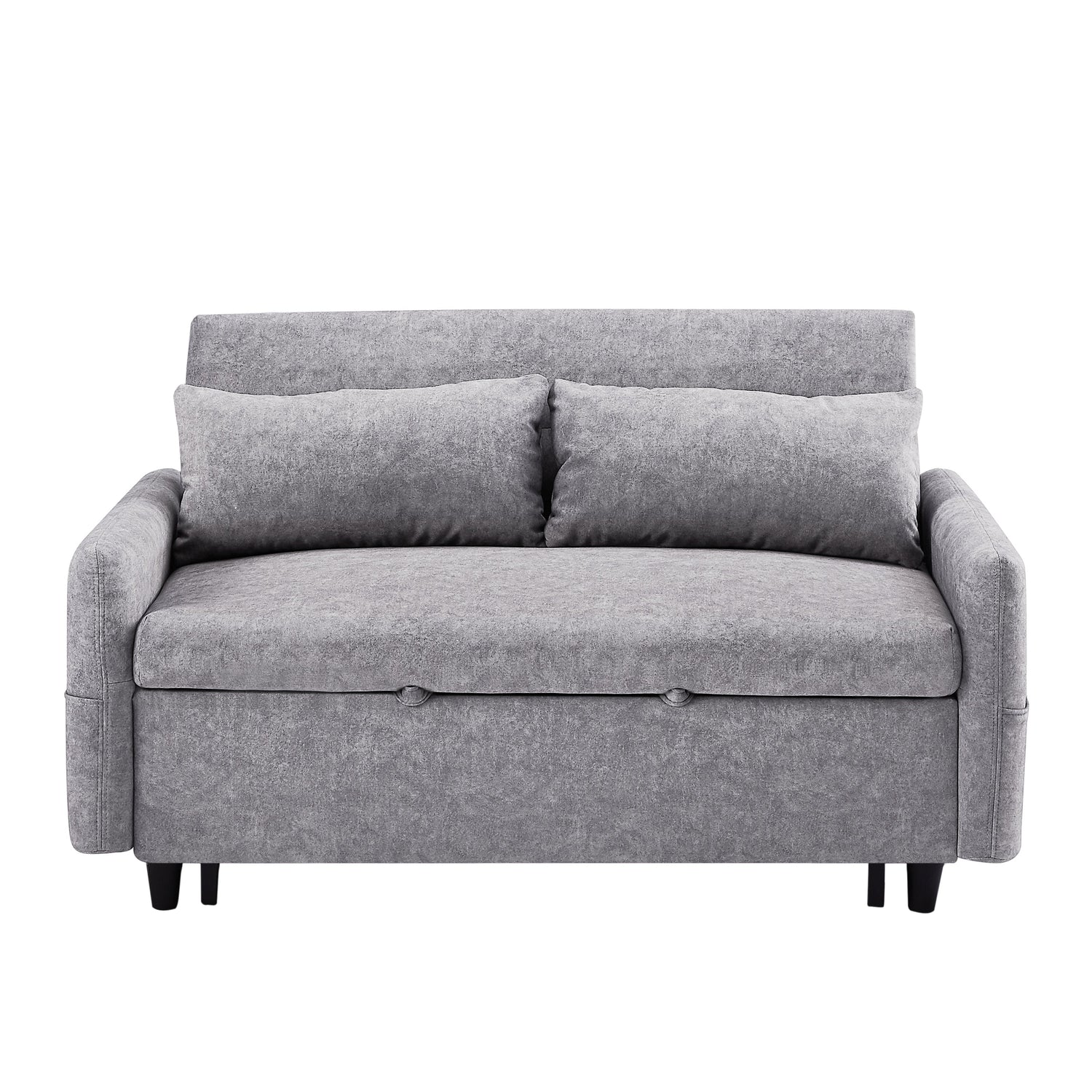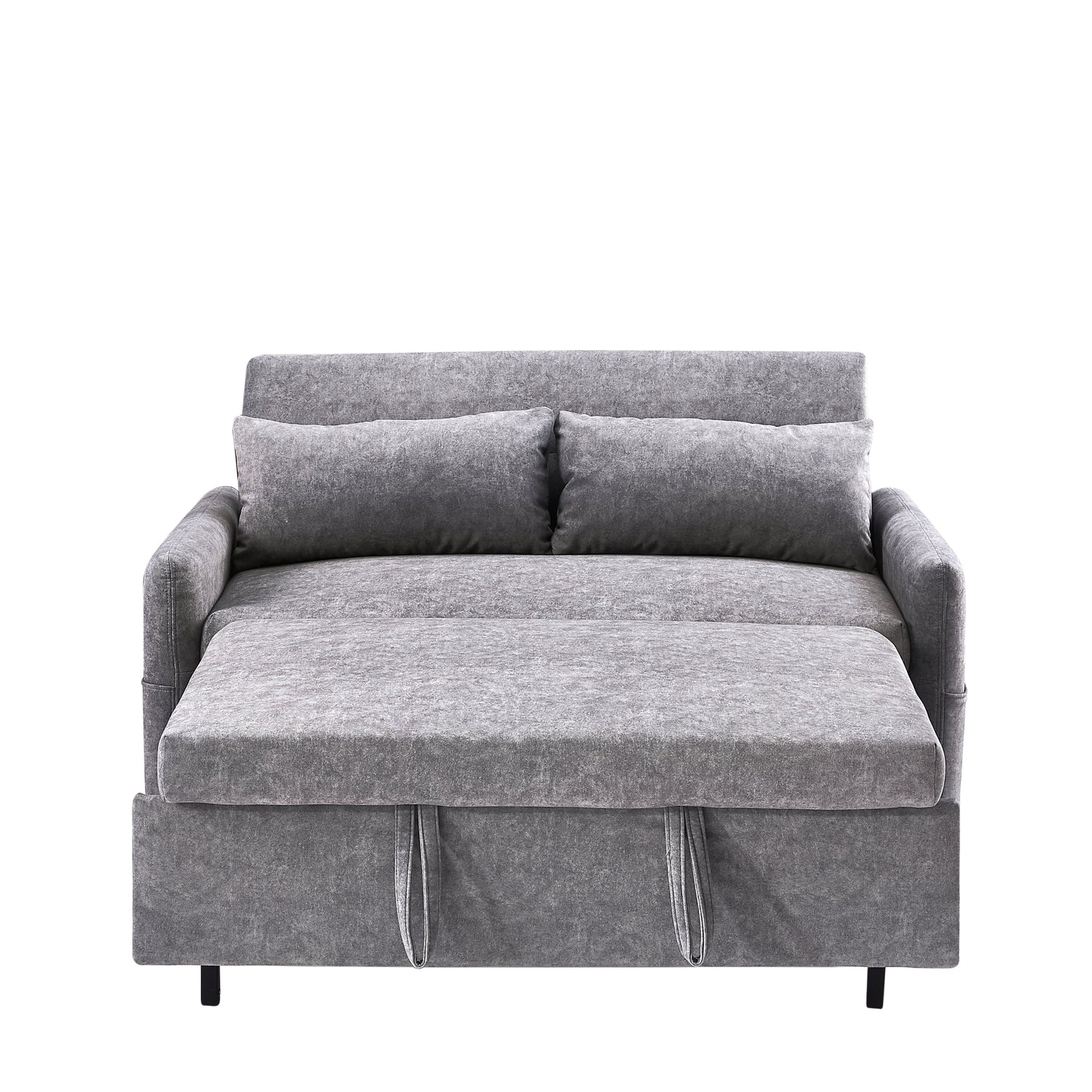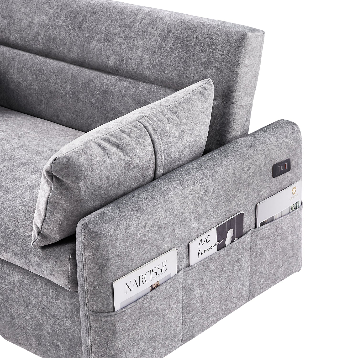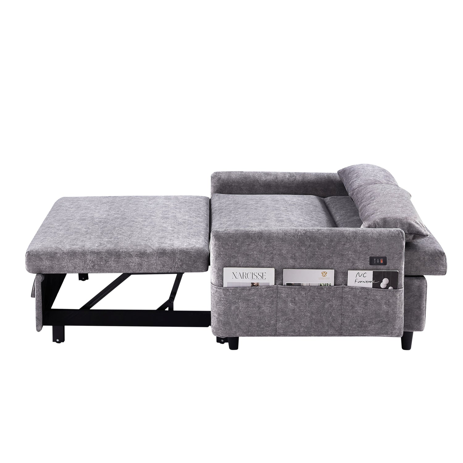 NEW Contemporary Grey Pull Out Sleep Sofa Bed Loveseat with Adjustable Backrest Storage Pockets USB Ports and 2 Soft Pillows