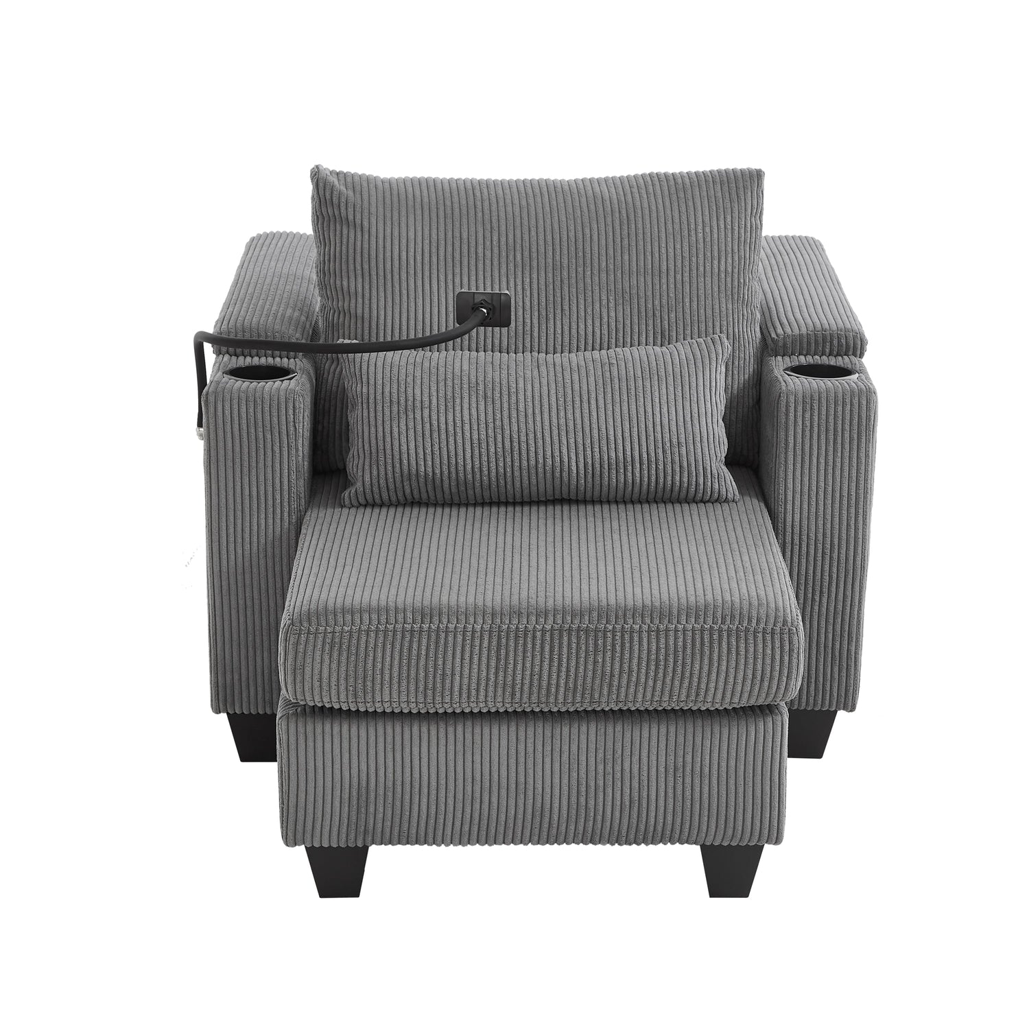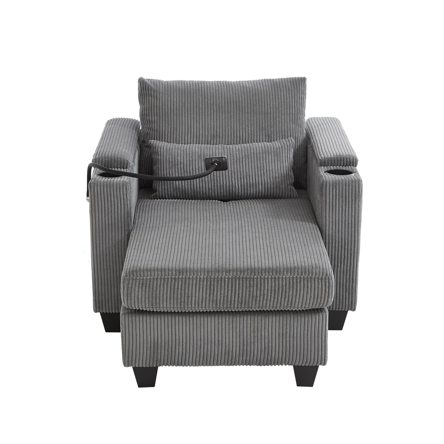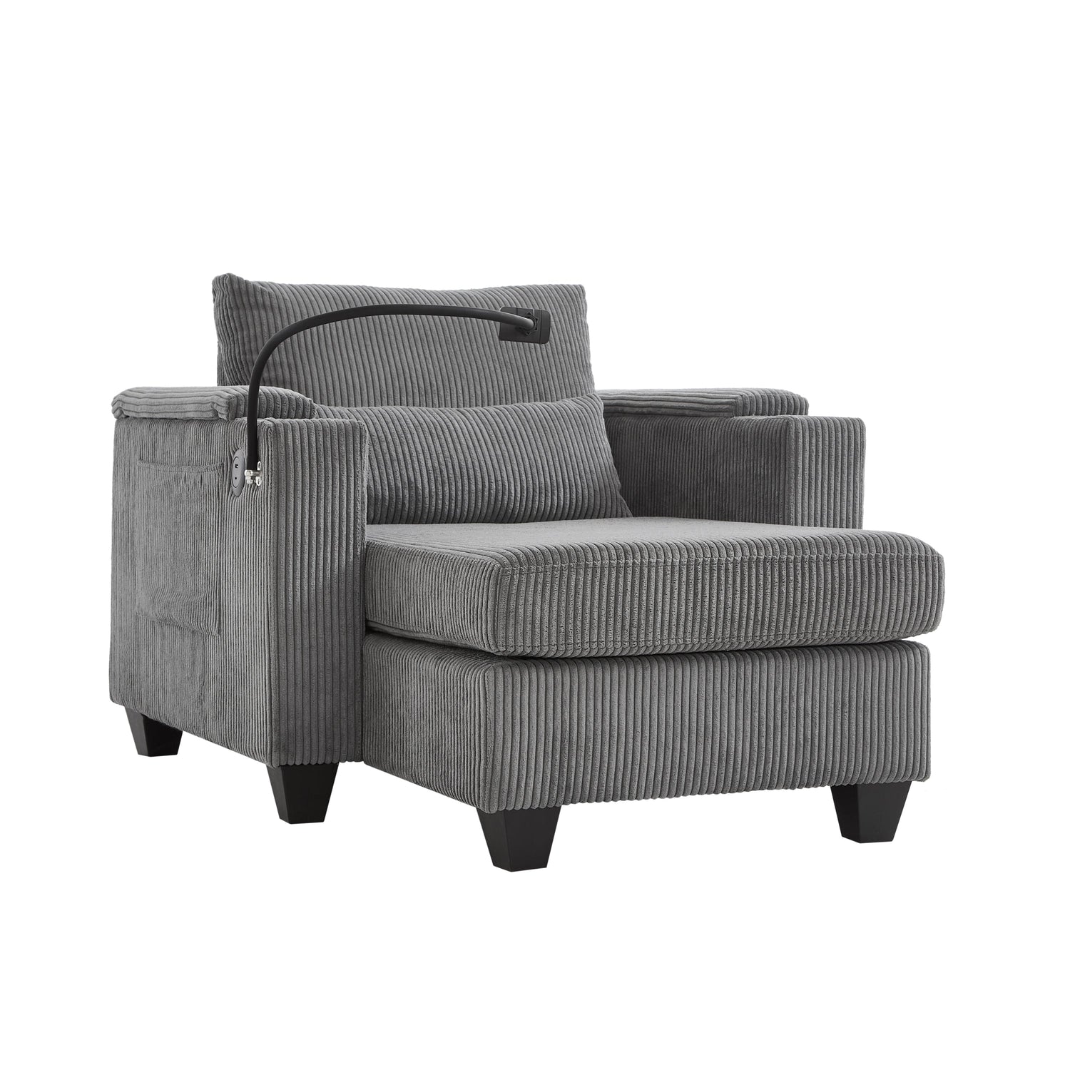 NEW Convertible Chaise Lounge Sofa Chair Corduroy Sleeper with USB Ports Cup Holders and Storage
