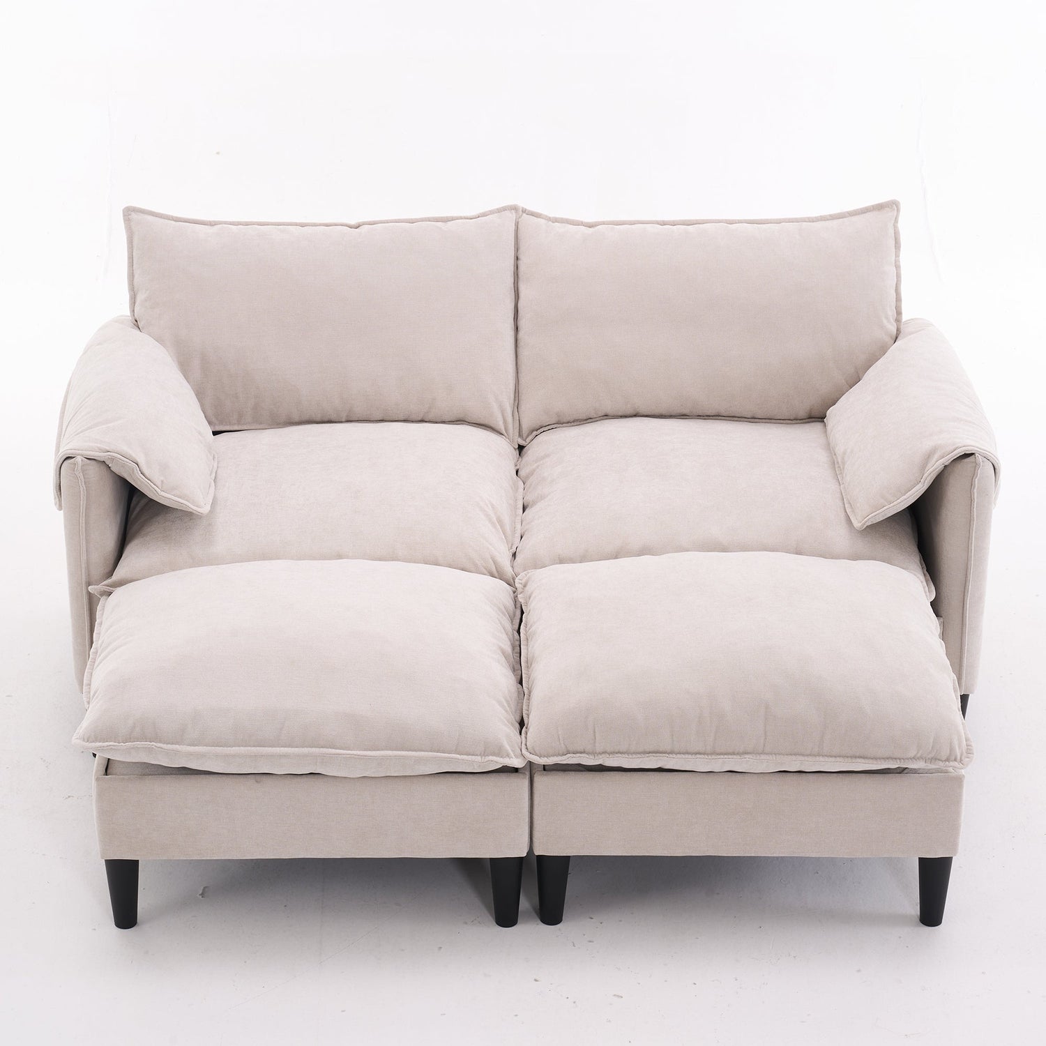 NEW Beige Multi-Functional Fabric Metal Frame Modern Style Pull Out Loveseat