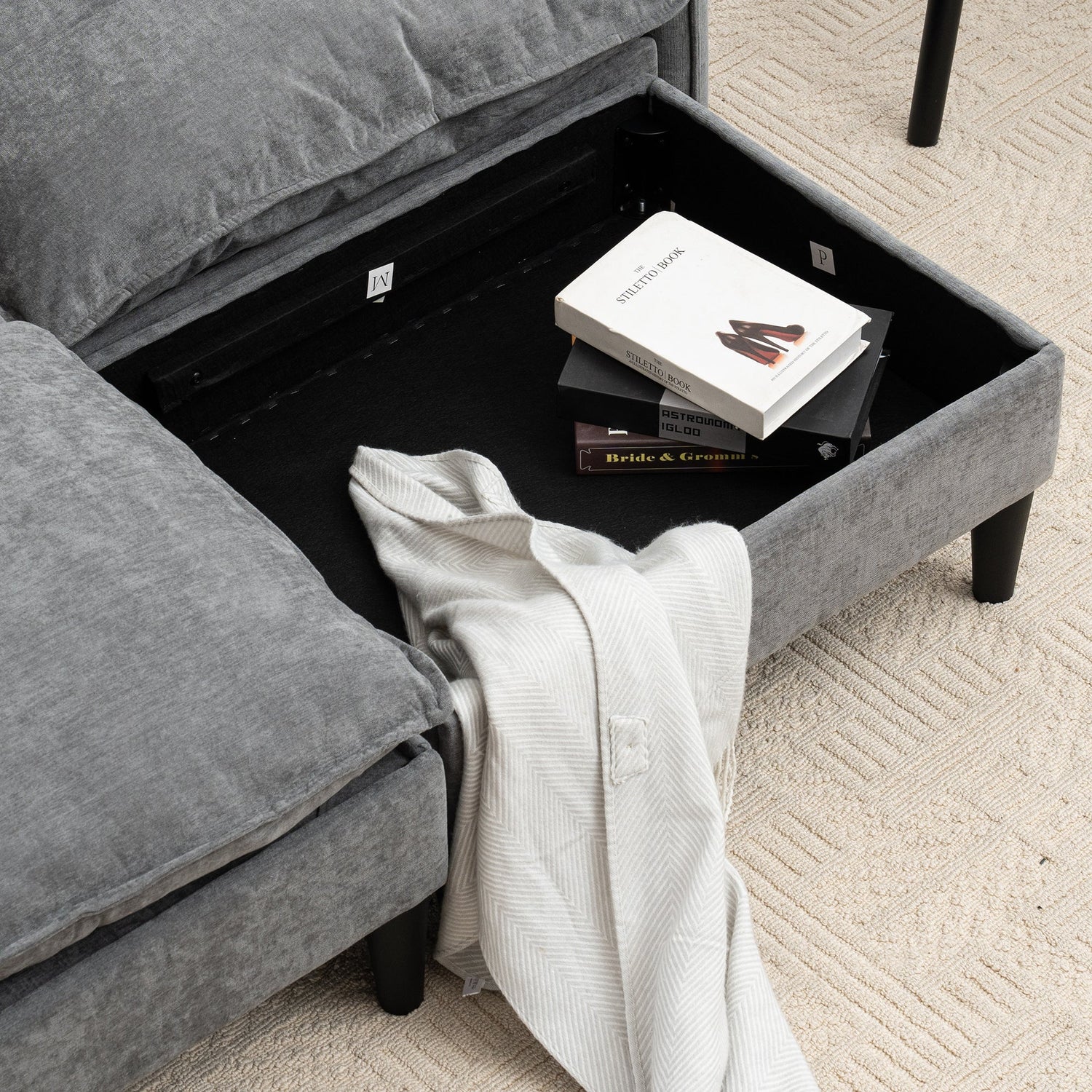 NEW Convertible Combination Gray U-Shaped Sofa with Footstools Storage