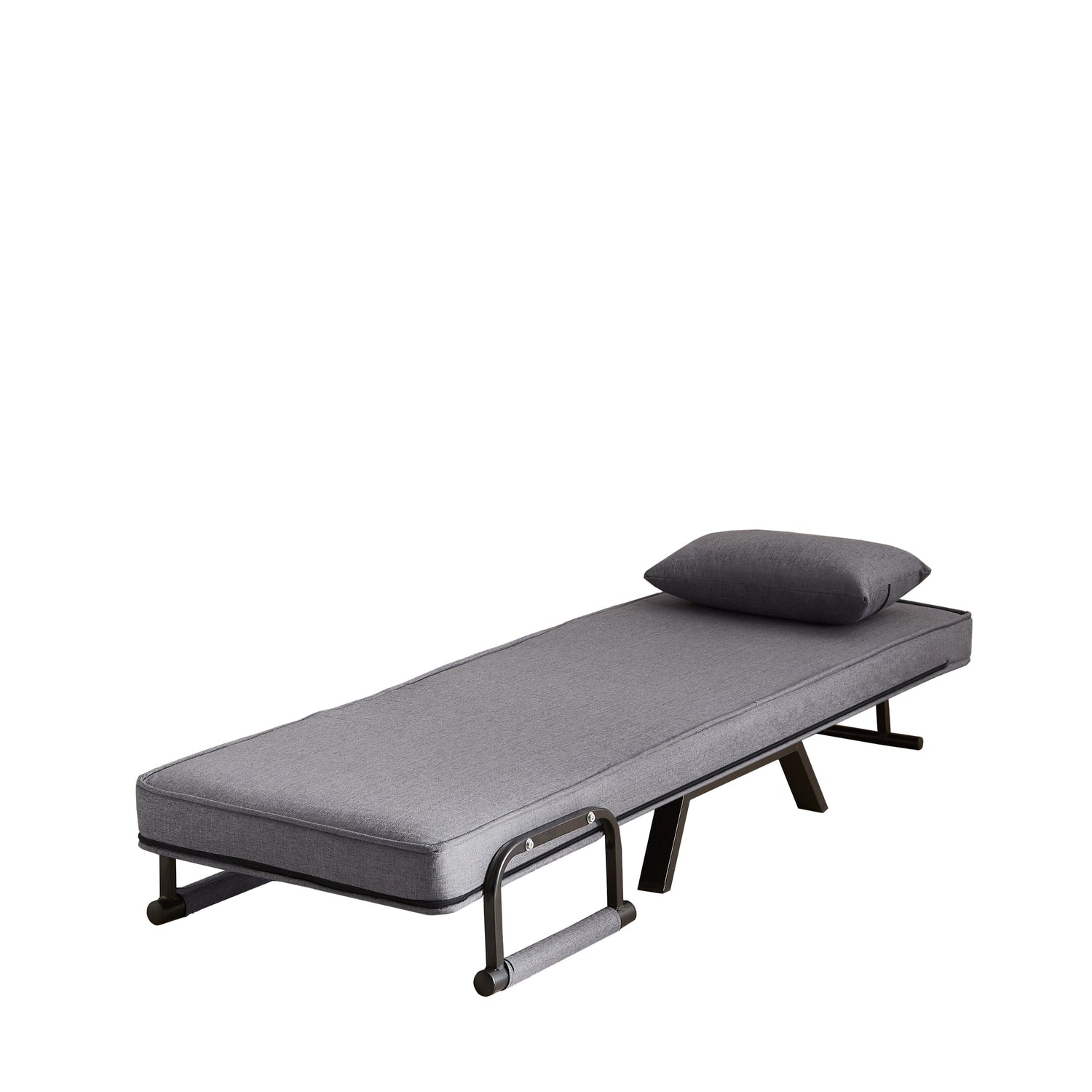 NEW Light Grey Linen Convertible Folding Chair Bed with Adjustable Backrest and Pillow