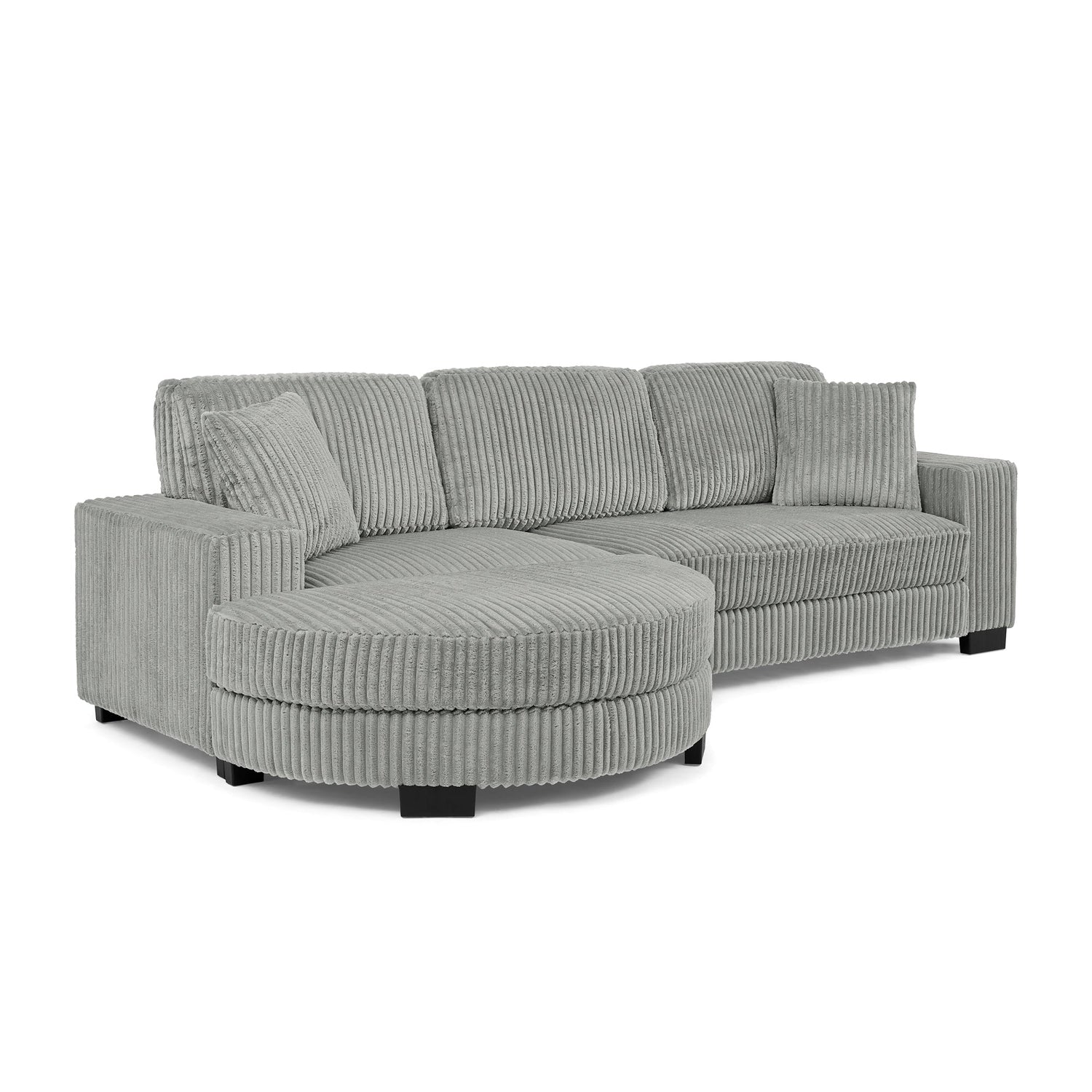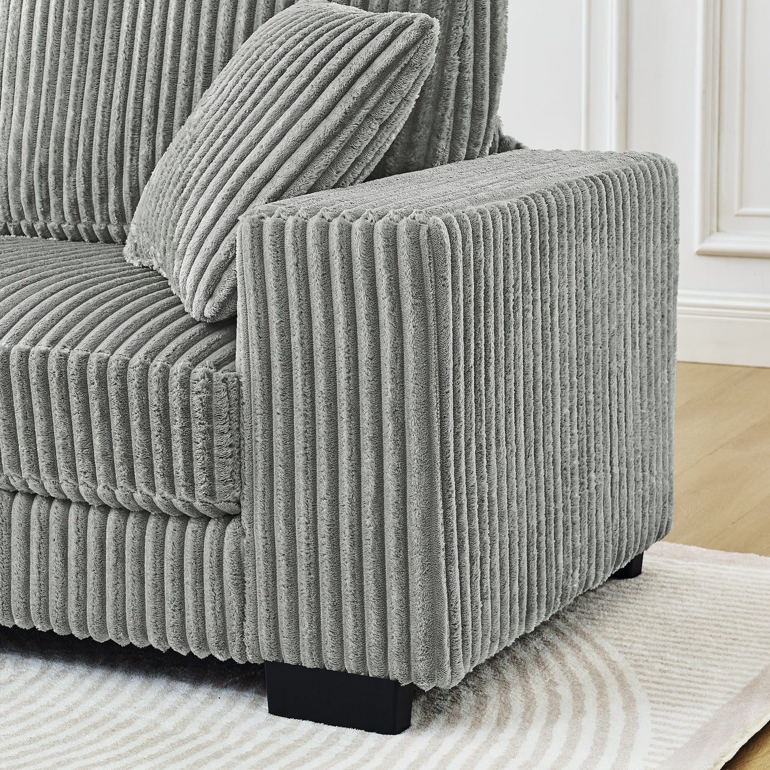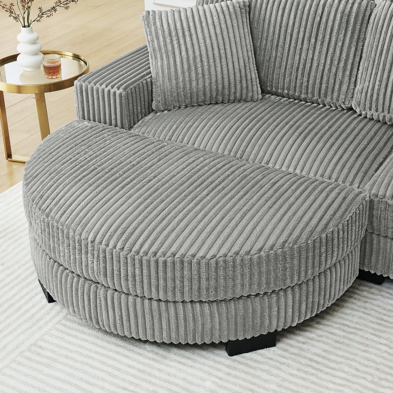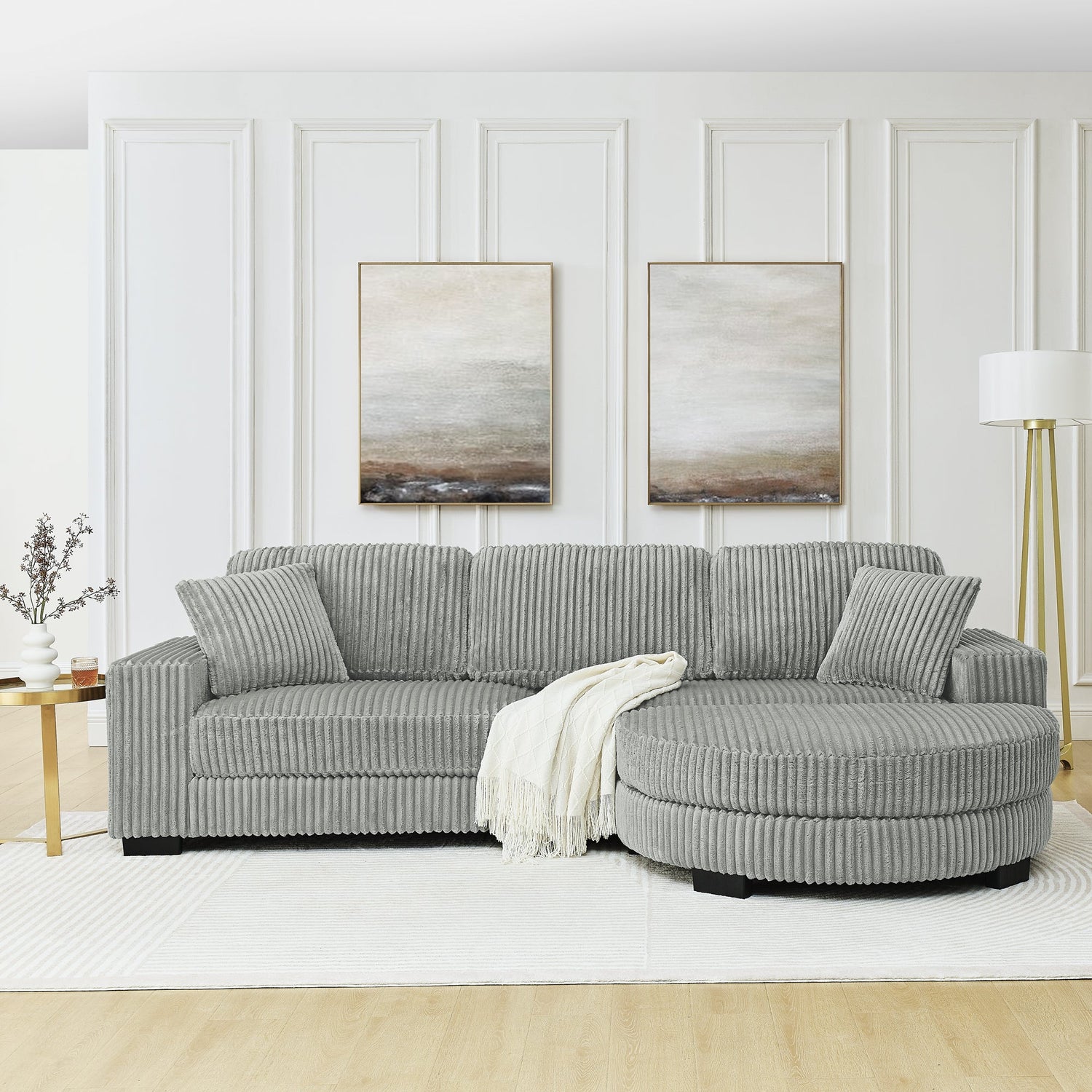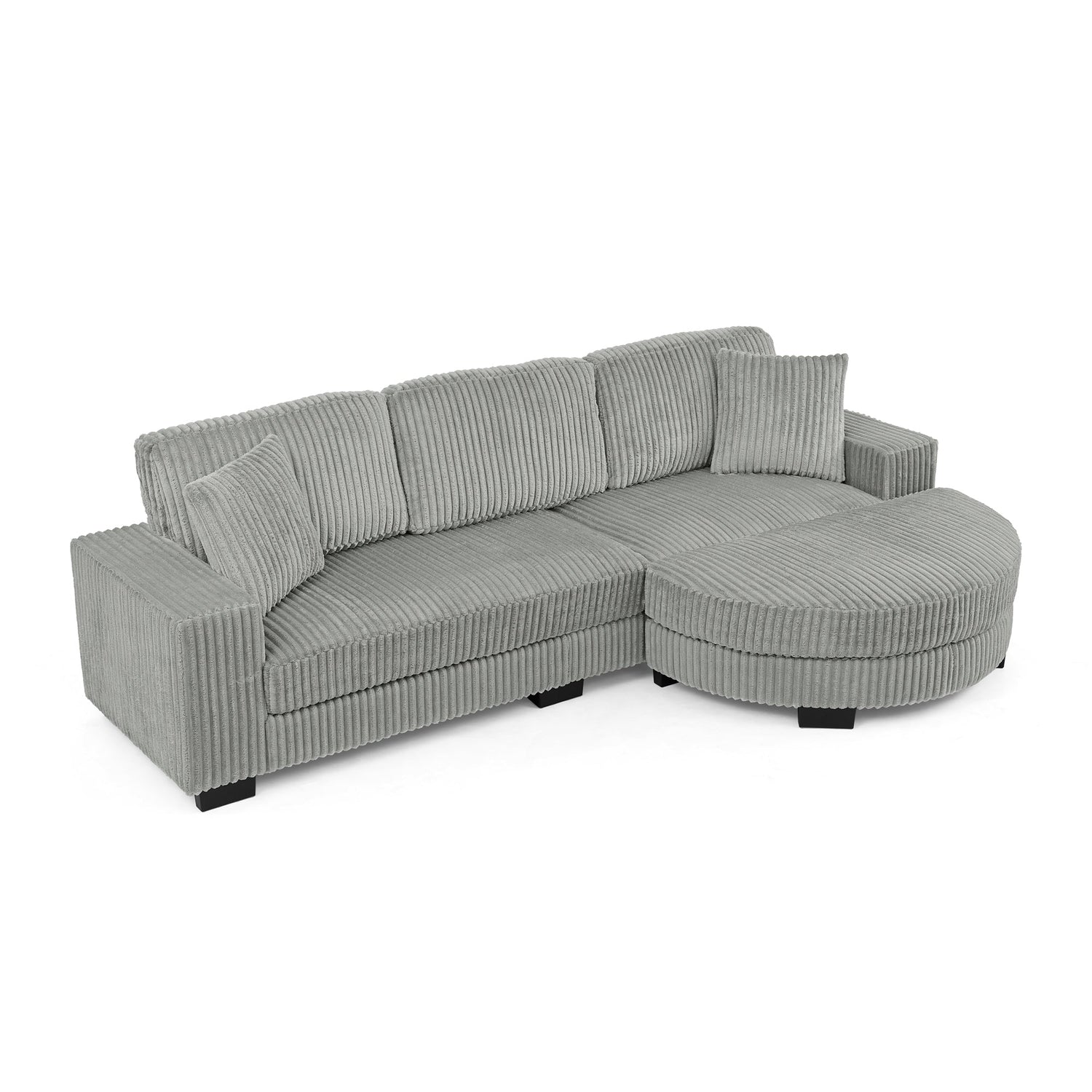 NEW Corduroy Tufted Upholstered Sleeper Sectional L-Shaped Modular Convertible Sofa with Arc-Shaped Footstool