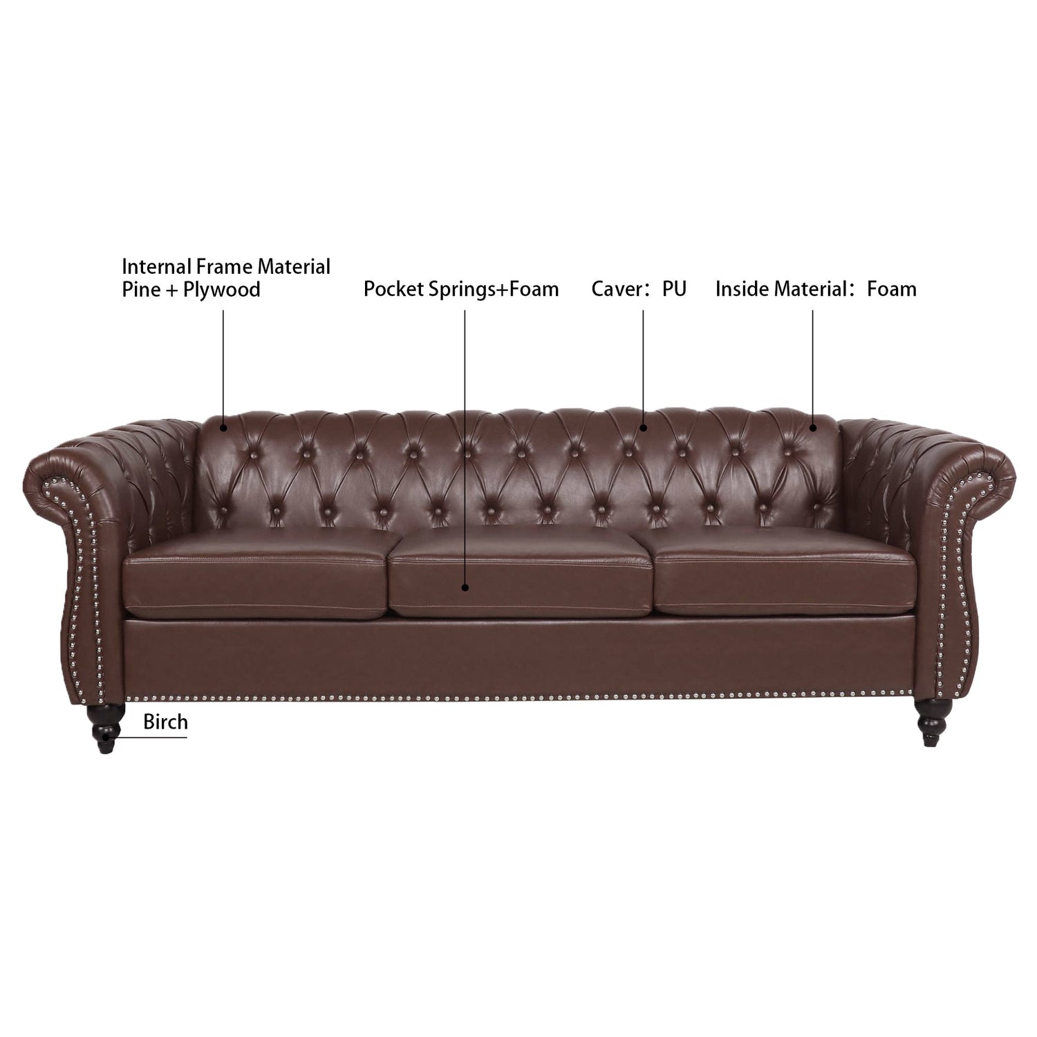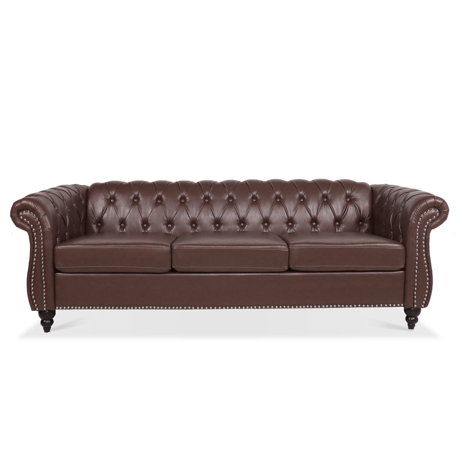 NEW Dark Brown PU Rolled Arm Chesterfield Three Seater Sofa