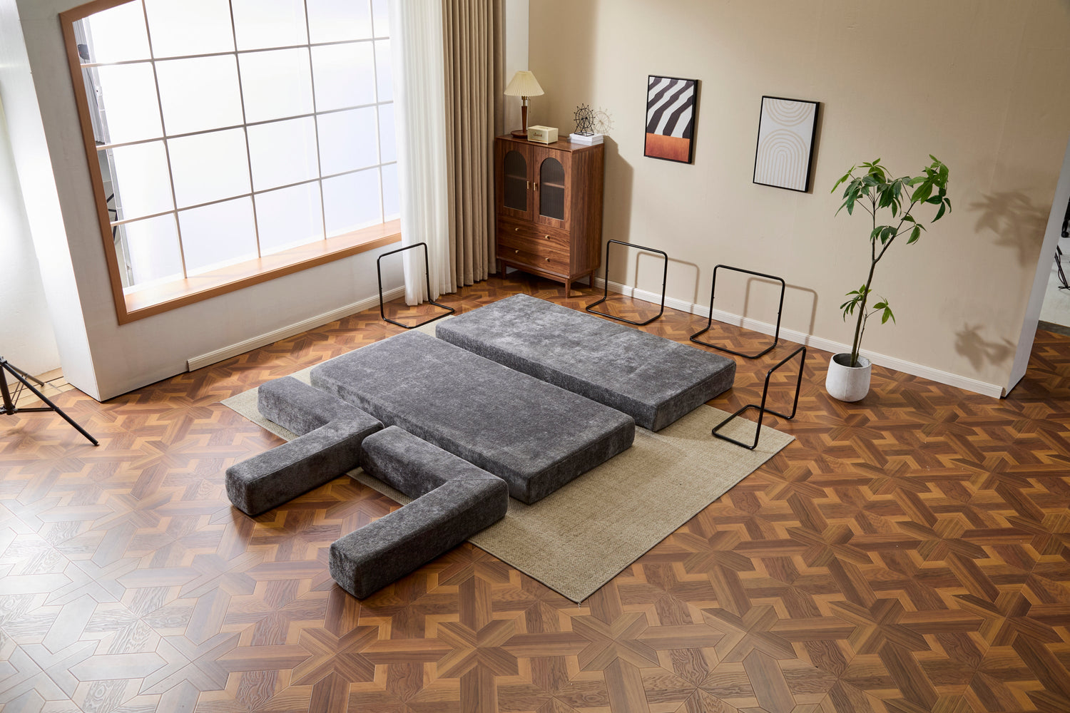 - •【Convertible Foldable Design】The futon sofa bed has 2 forms of floor sofa and mattress, it can be easily converted between bed and sofa by folding the side armrests or backrest, which can largely save your space and you don't have to worry about not having a place to sleep when your friends or family members come to visit you, it can be a suitable choice for your living room sofa.