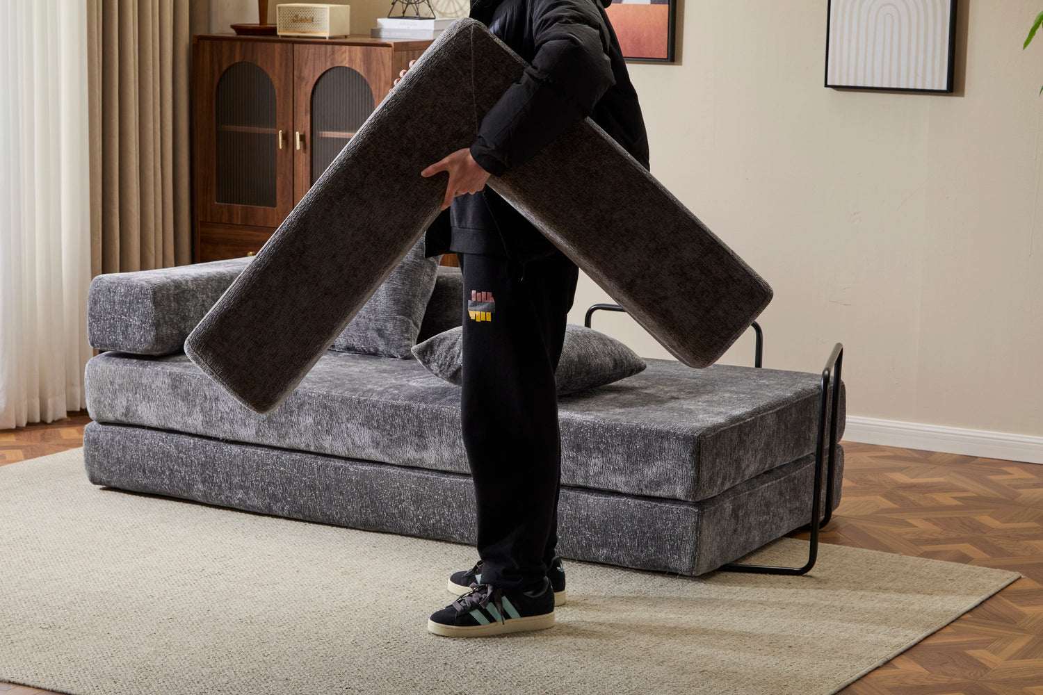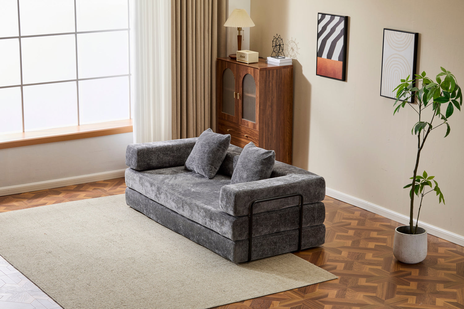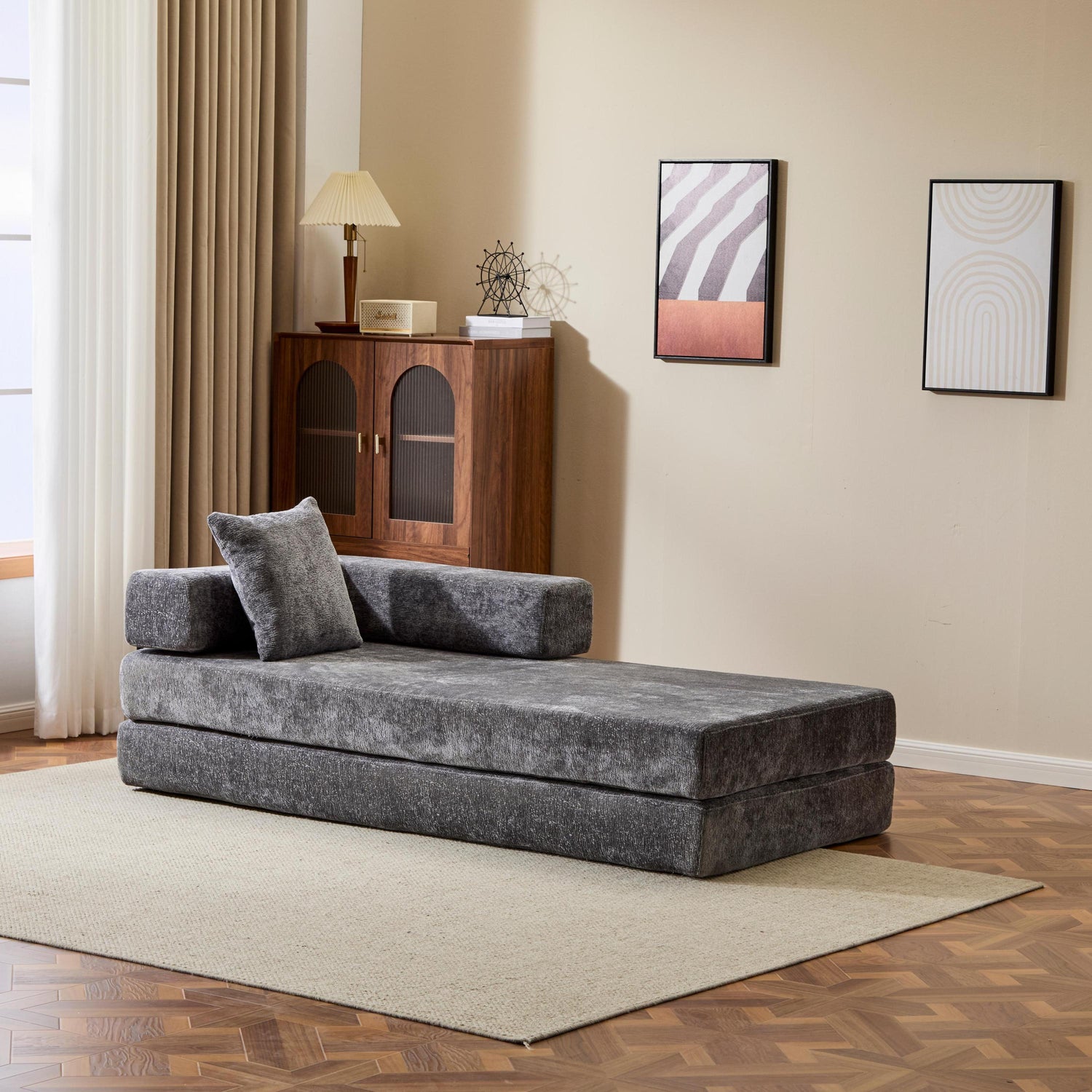 - •【High-quality Chenille Fabric 】The texture are very comfortable, while also retaining the high breathability and softness of the cloth, when you touch it, you can feel it is different to the normal cloth fabric, it is fashion and colorfast characteristics, easy to clean will be your favor. The contact surface of the fold down sofa are used chenille fabric, it is as popular textile materials, abrasion resistance is very high and it is durable.