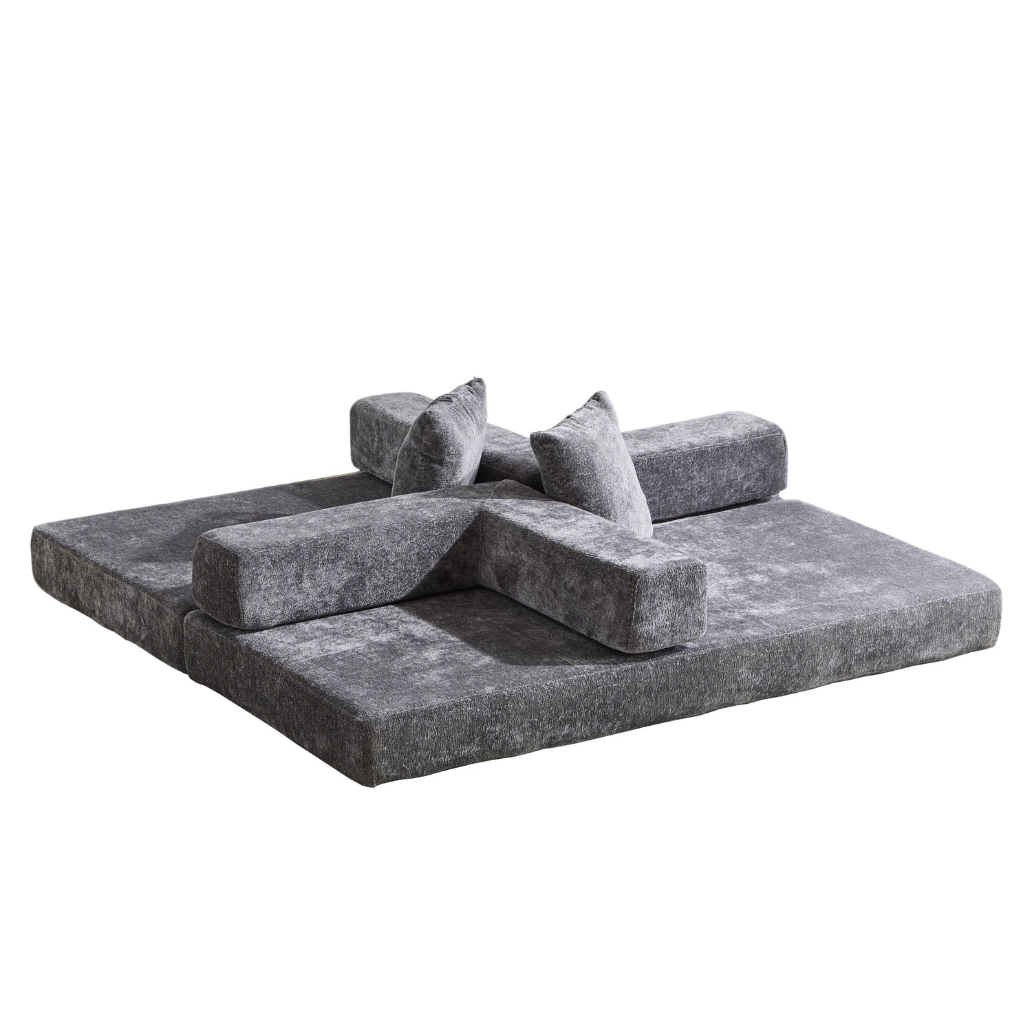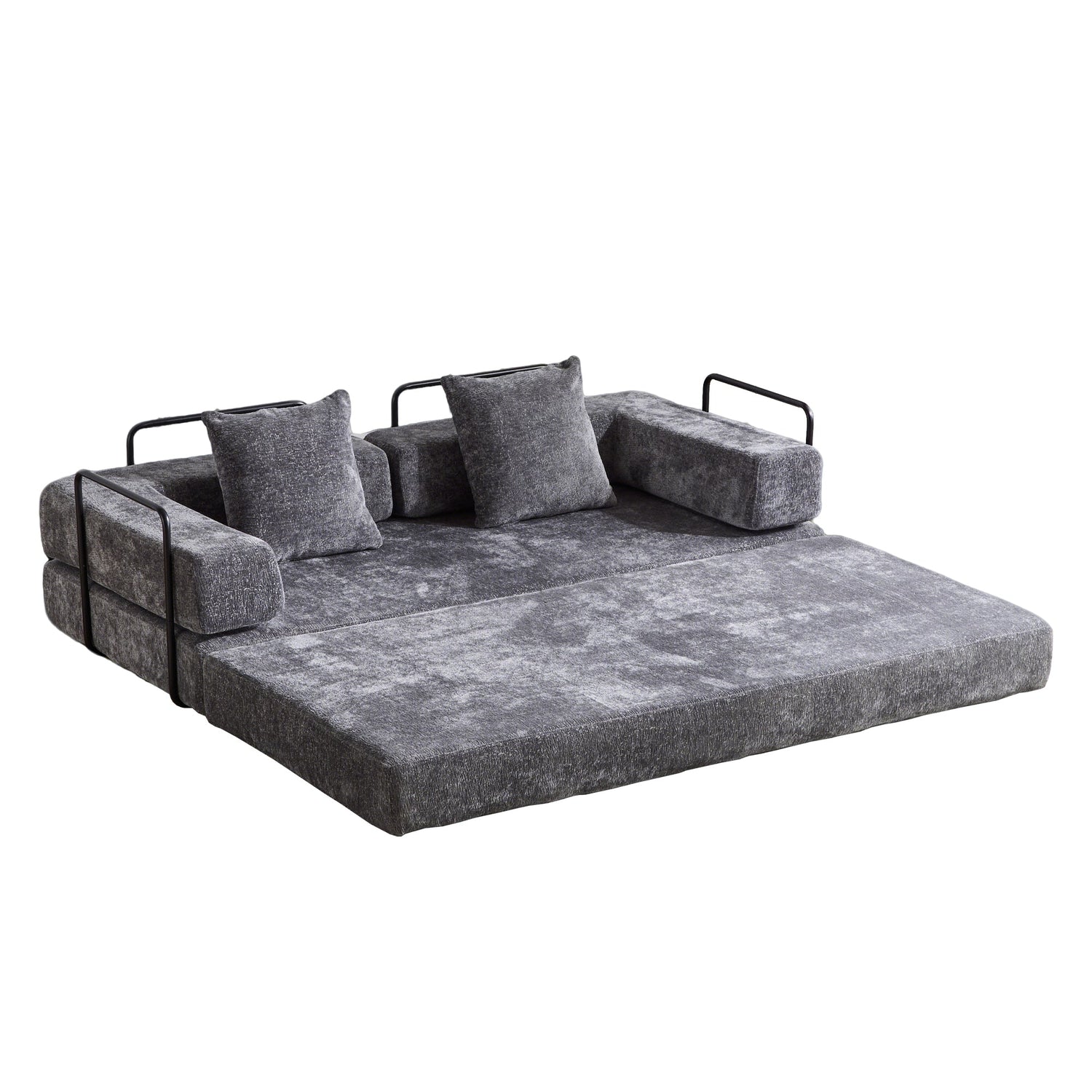 NEW Floor Couch,Compression Sofa,Convertible Floor Sofa Bed-with Pillow Back Support Armrest,Comfy Futon Couch Lounge Sleeper Bed,Chenile fabric,for Living Room Bedroom (DARK-GREY)