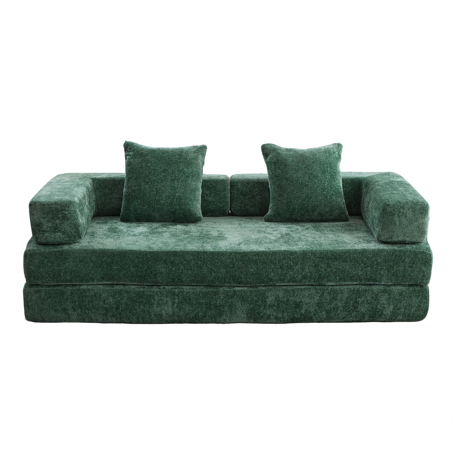 NEW Dark Green Chenille Fabric Floor Compression Convertible Sofa Bed
