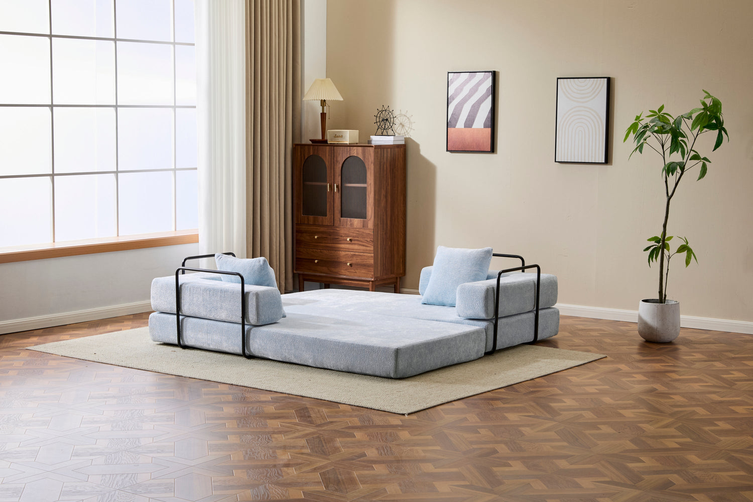 - •【Convertible Foldable Design】The futon sofa bed has 2 forms of floor sofa and mattress, it can be easily converted between bed and sofa by folding the side armrests or backrest, which can largely save your space and you don't have to worry about not having a place to sleep when your friends or family members come to visit you, it can be a suitable choice for your living room sofa.