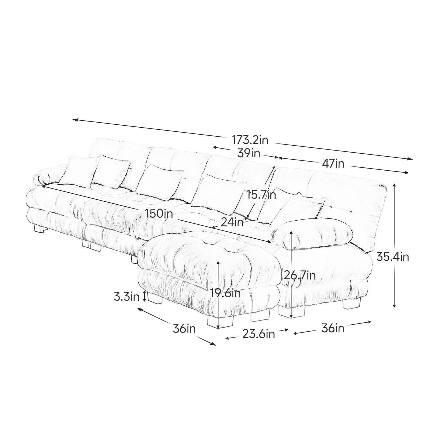 NEW Free Combination Chenille Light Coffee Modular Sectional L Shaped 4-Seater Comfy Cloud Sofa Couch with Convertible Ottoman