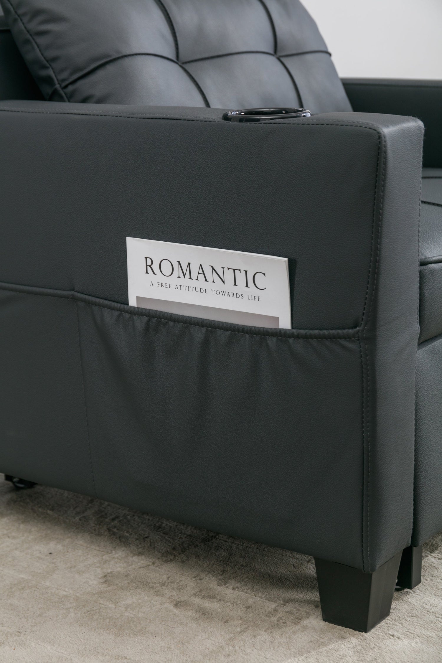 - USB AND CUP HOLDERS: There are 1 USB charging port and 1 Tapy C interface on the left armrest of the sofa for various charging cables, which can provide continuous power supply for your phone. There is a convenient cup holders design on the seat back to place drinks and cups. There are 4 side pockets and built-in cup holders to meet your daily needs.