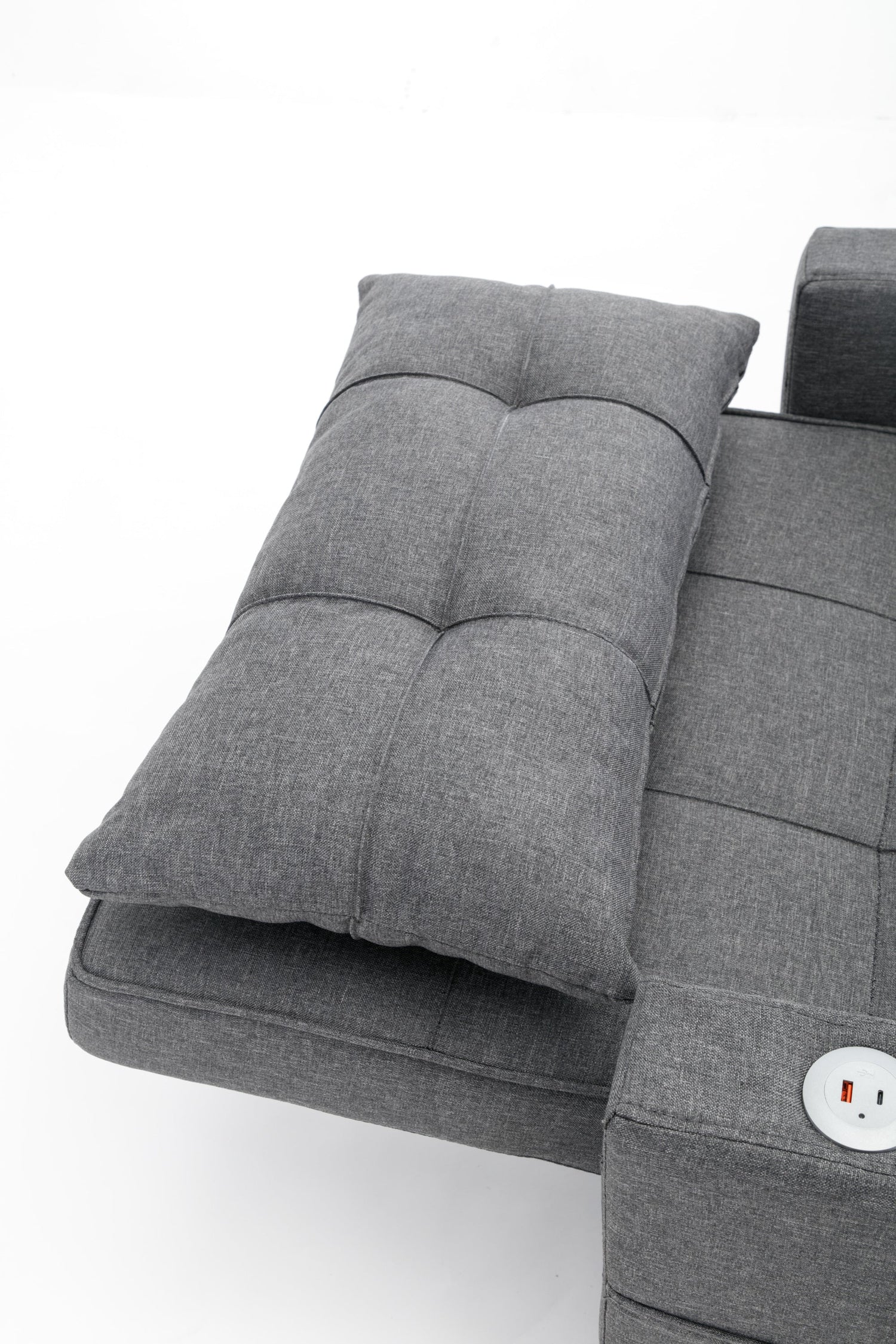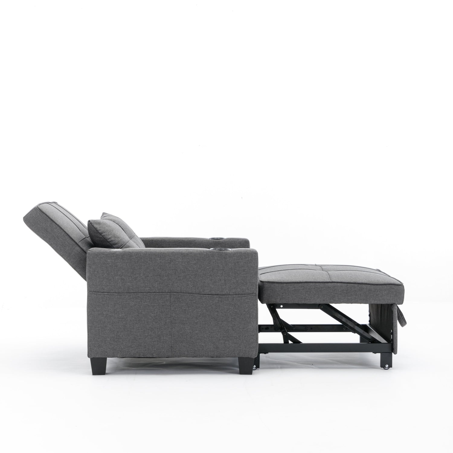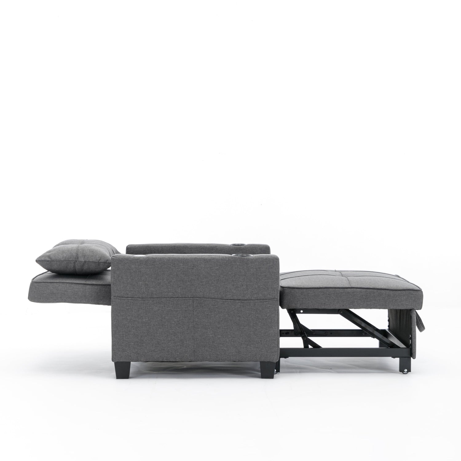 NEW Dark Grey Linen Futon Bed Convertible Chair 3-in-1 Pull Out Sleeper