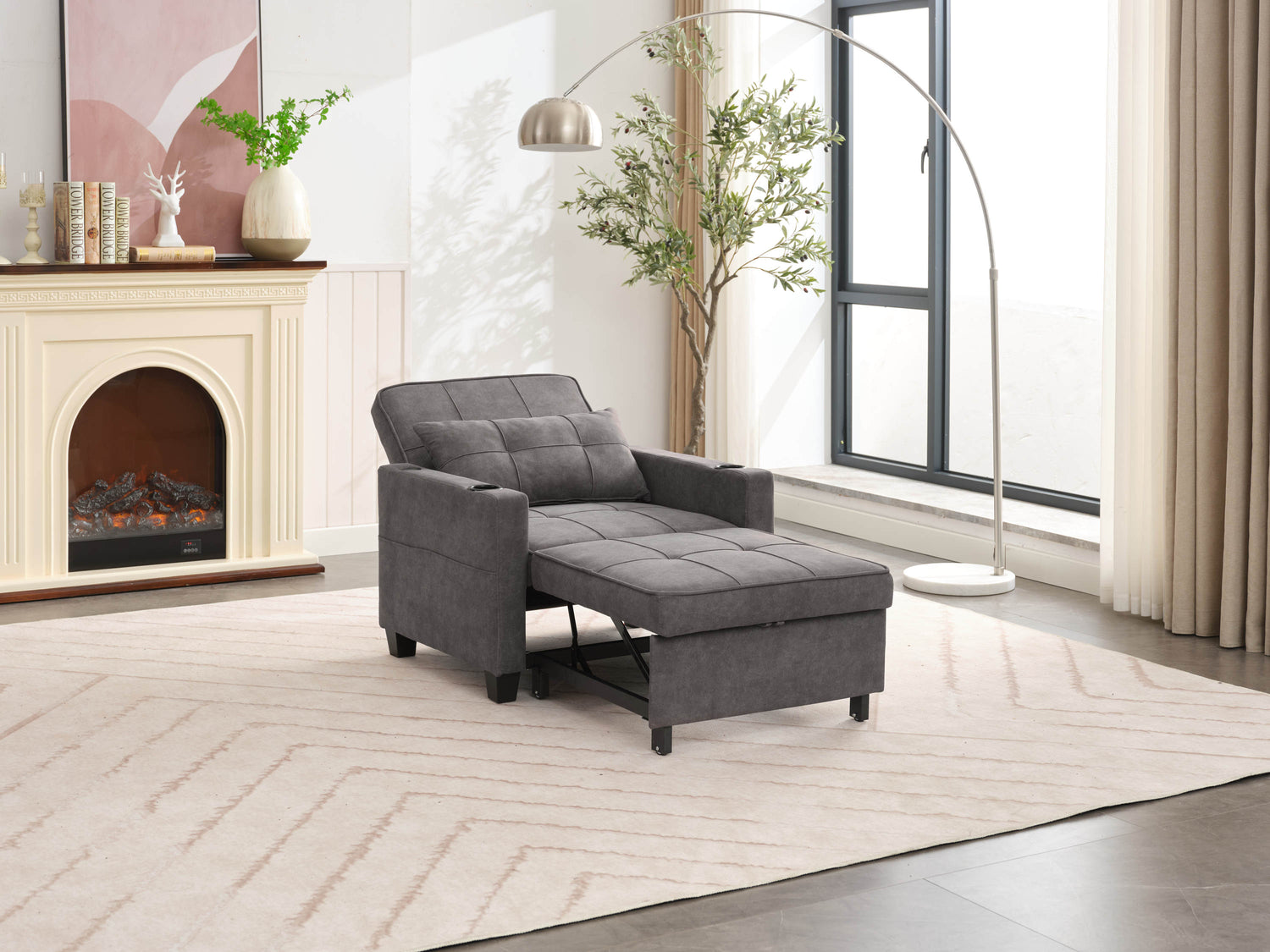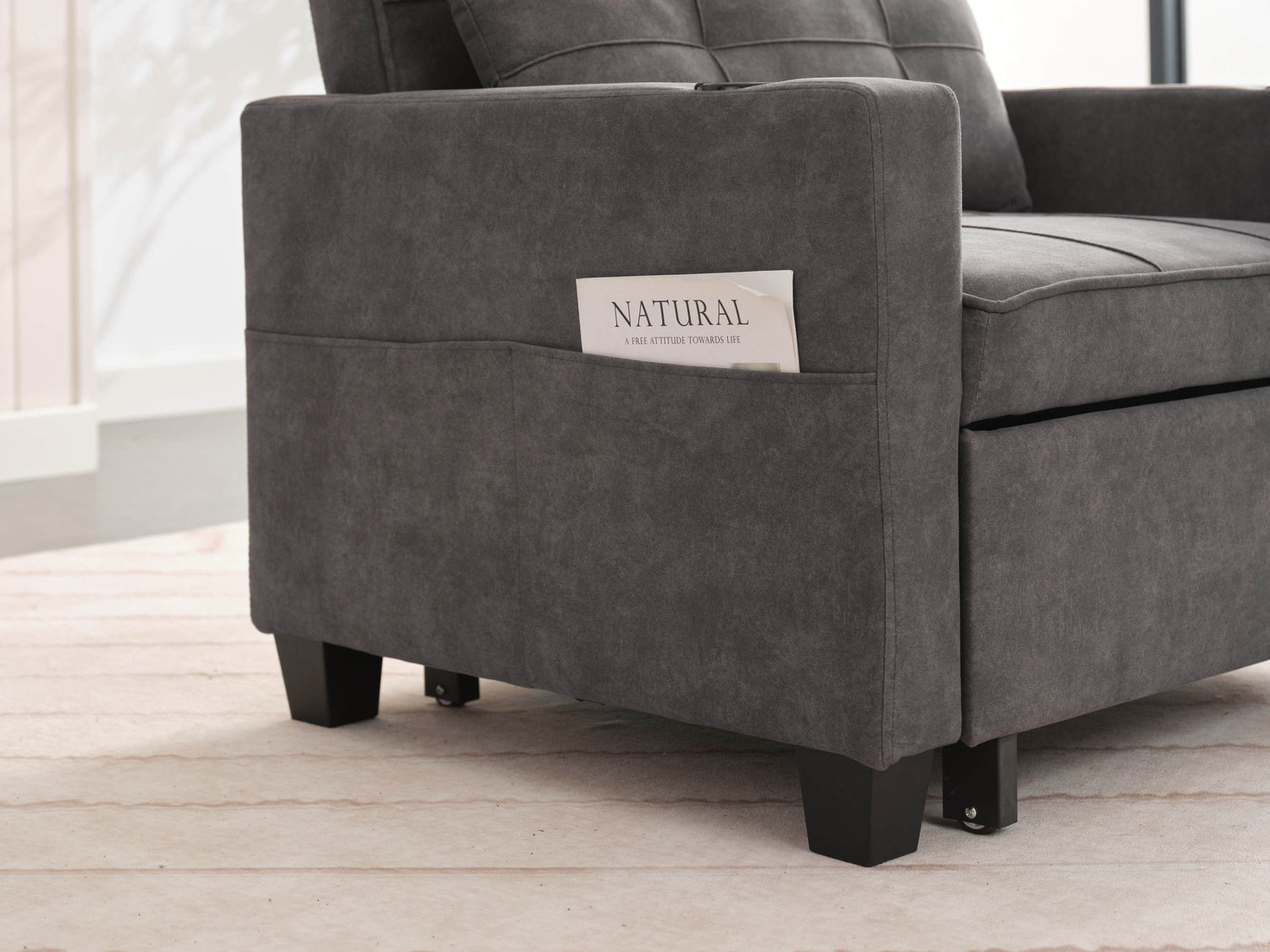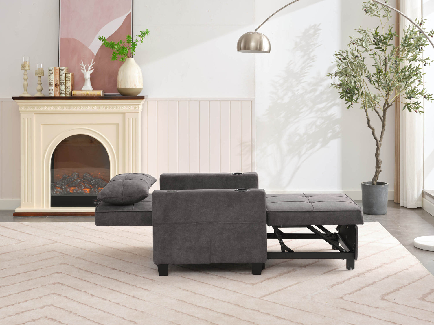 NEW Dark Grey Futon Bed Convertible Chair 3-in-1 Pull Out Sleeper Sofa with USB Ports