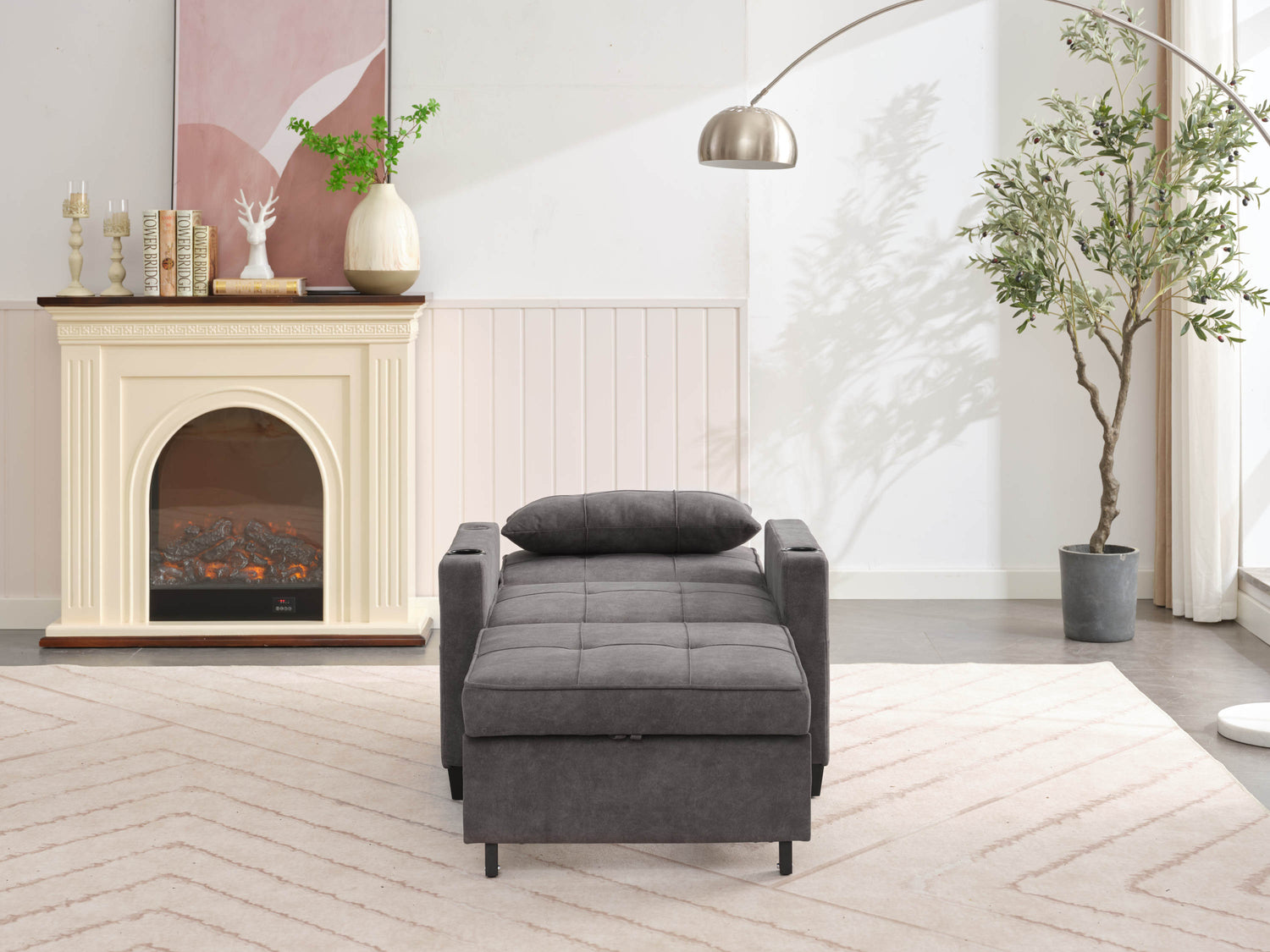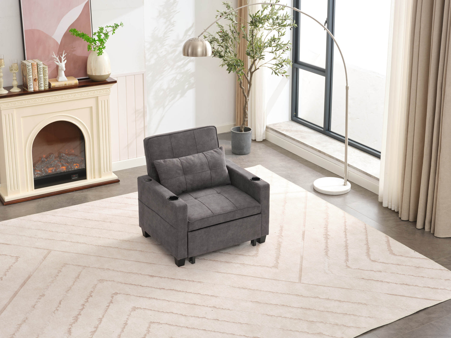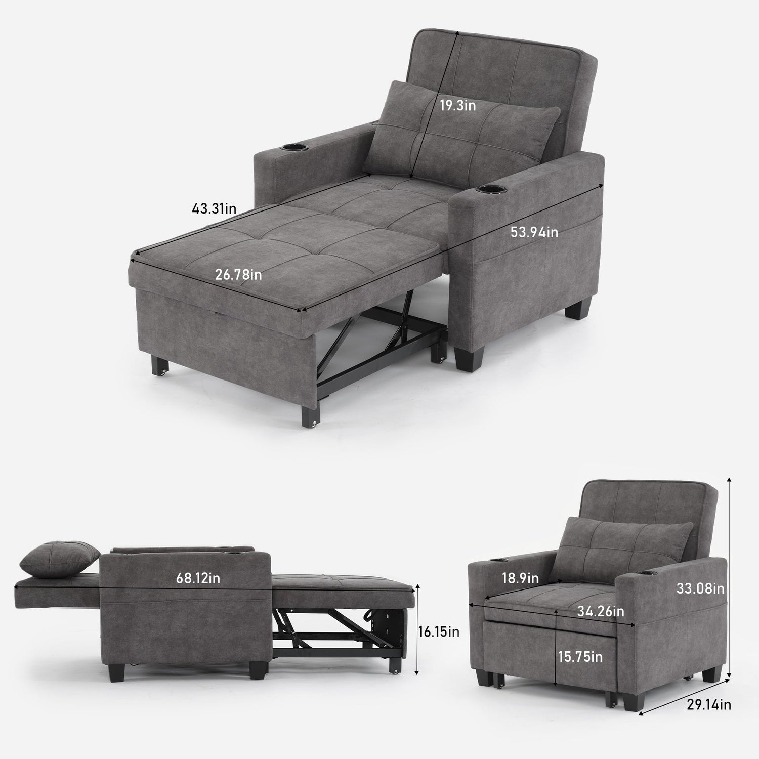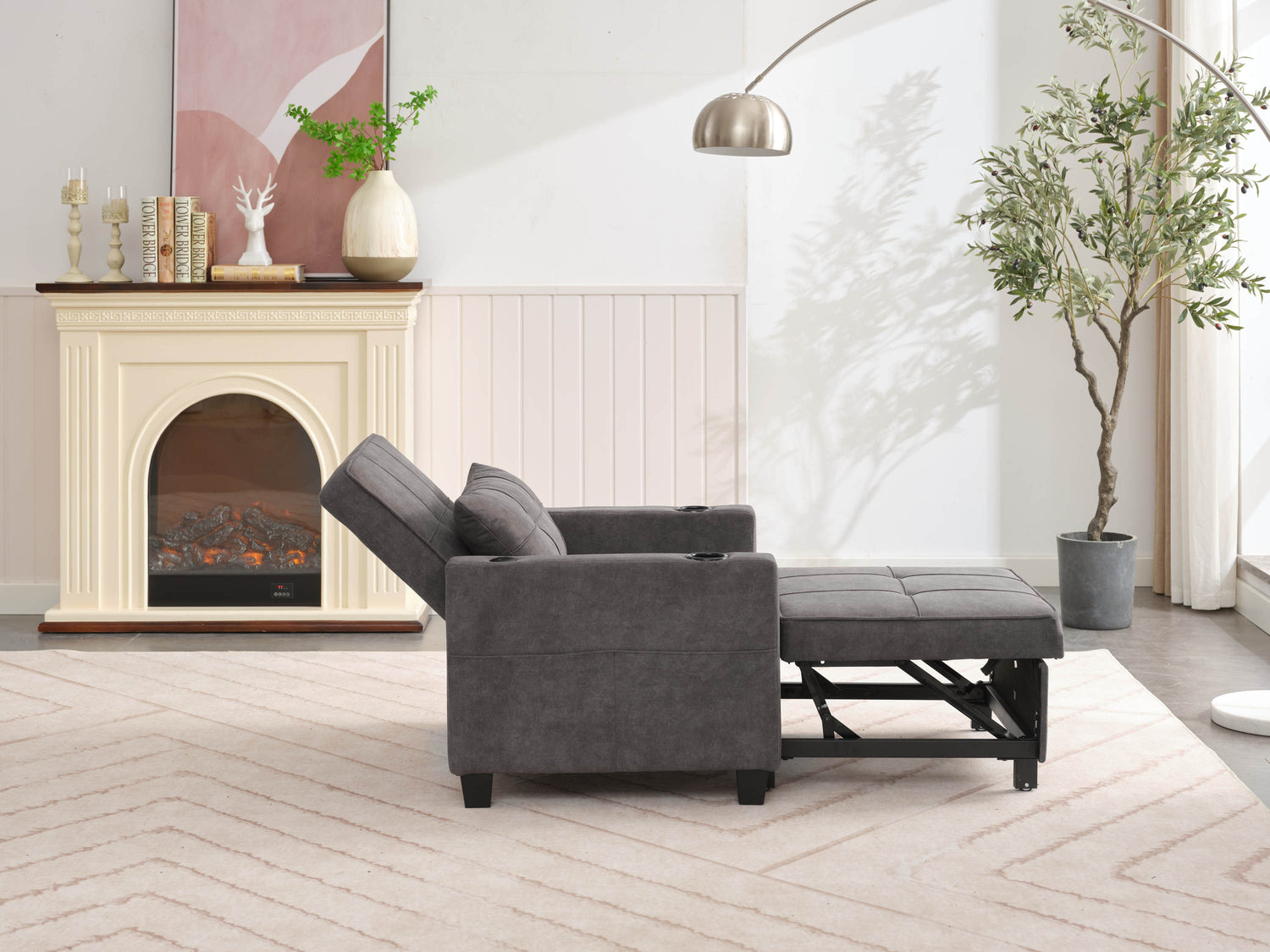 NEW Dark Grey Futon Bed Convertible Chair 3-in-1 Pull Out Sleeper Sofa with USB Ports
