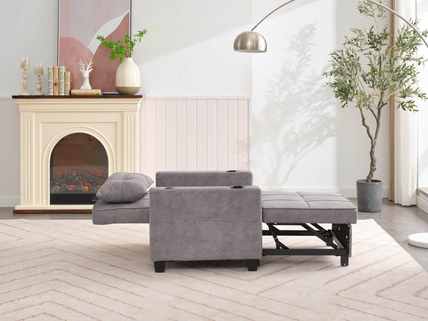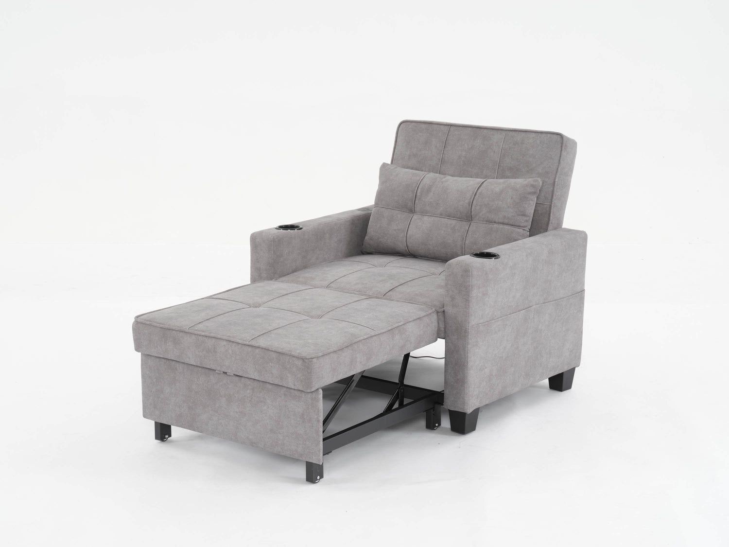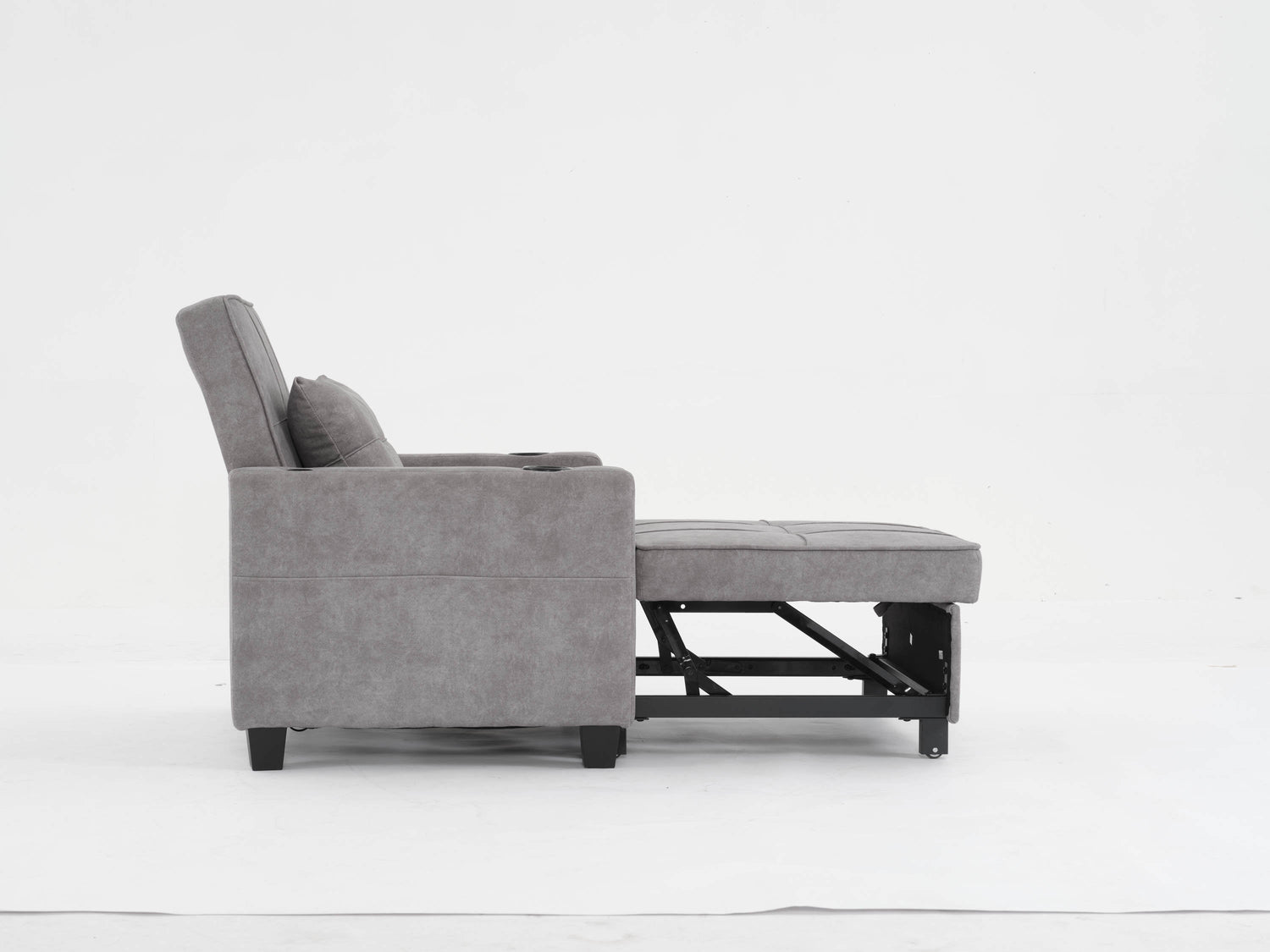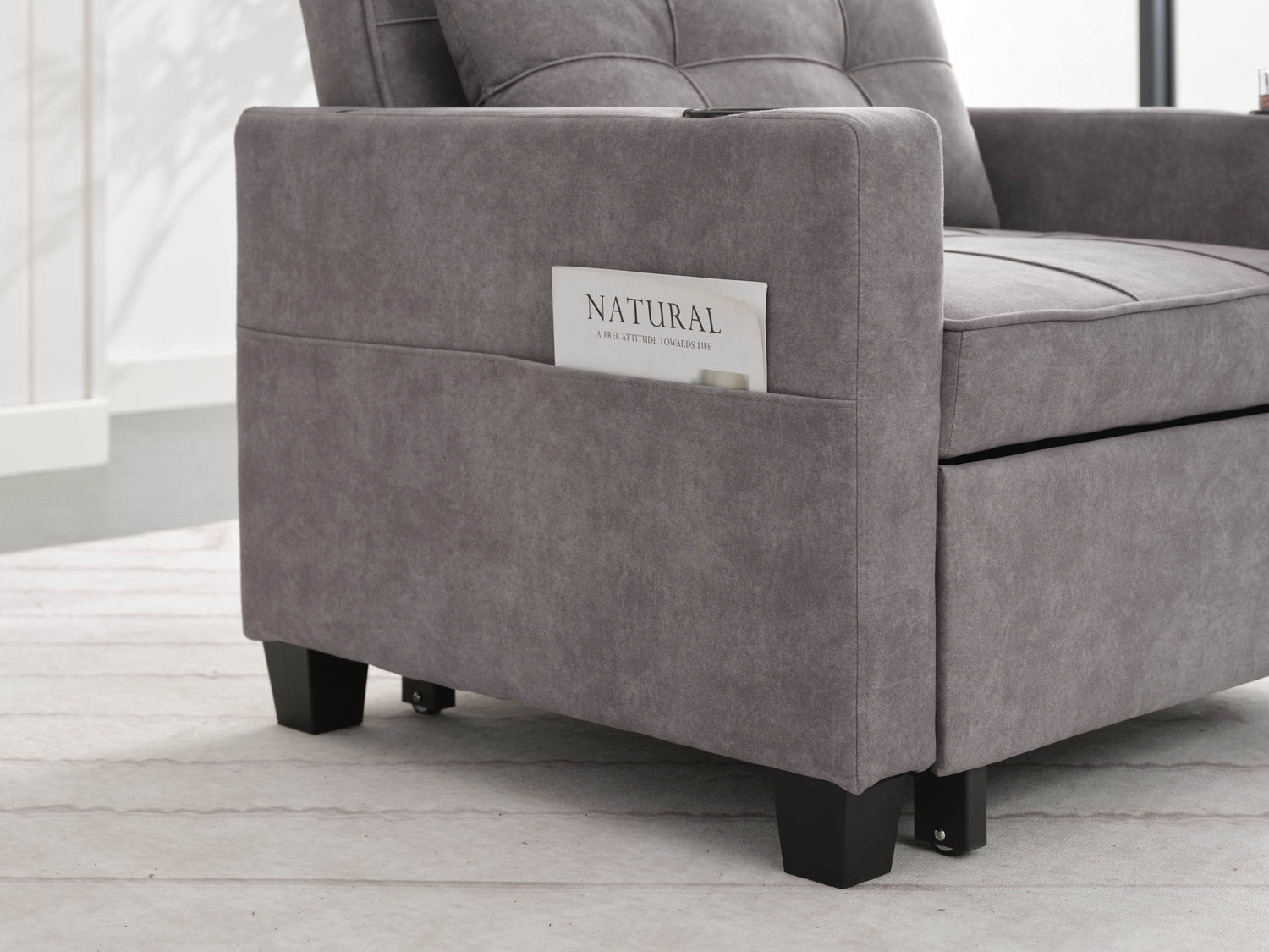 NEW Futon Chair Bed Convertible Chair 3-in-1 Pull Out Sleeper Chair Beds with USB Ports,Wear-resistant and Anti-scratch, Armchair Bed Sleeper for Living Room (Light Grey Scratch Cloth)