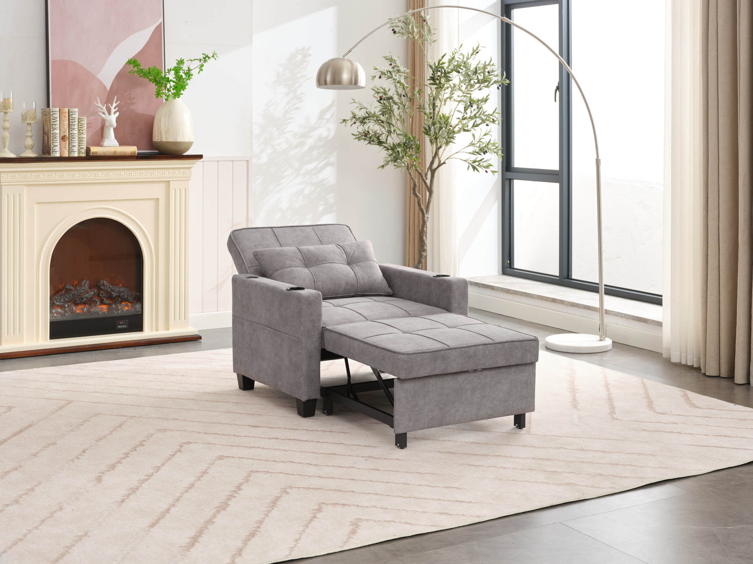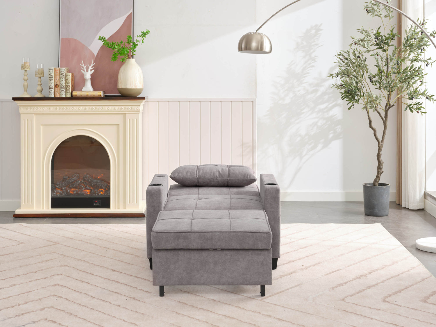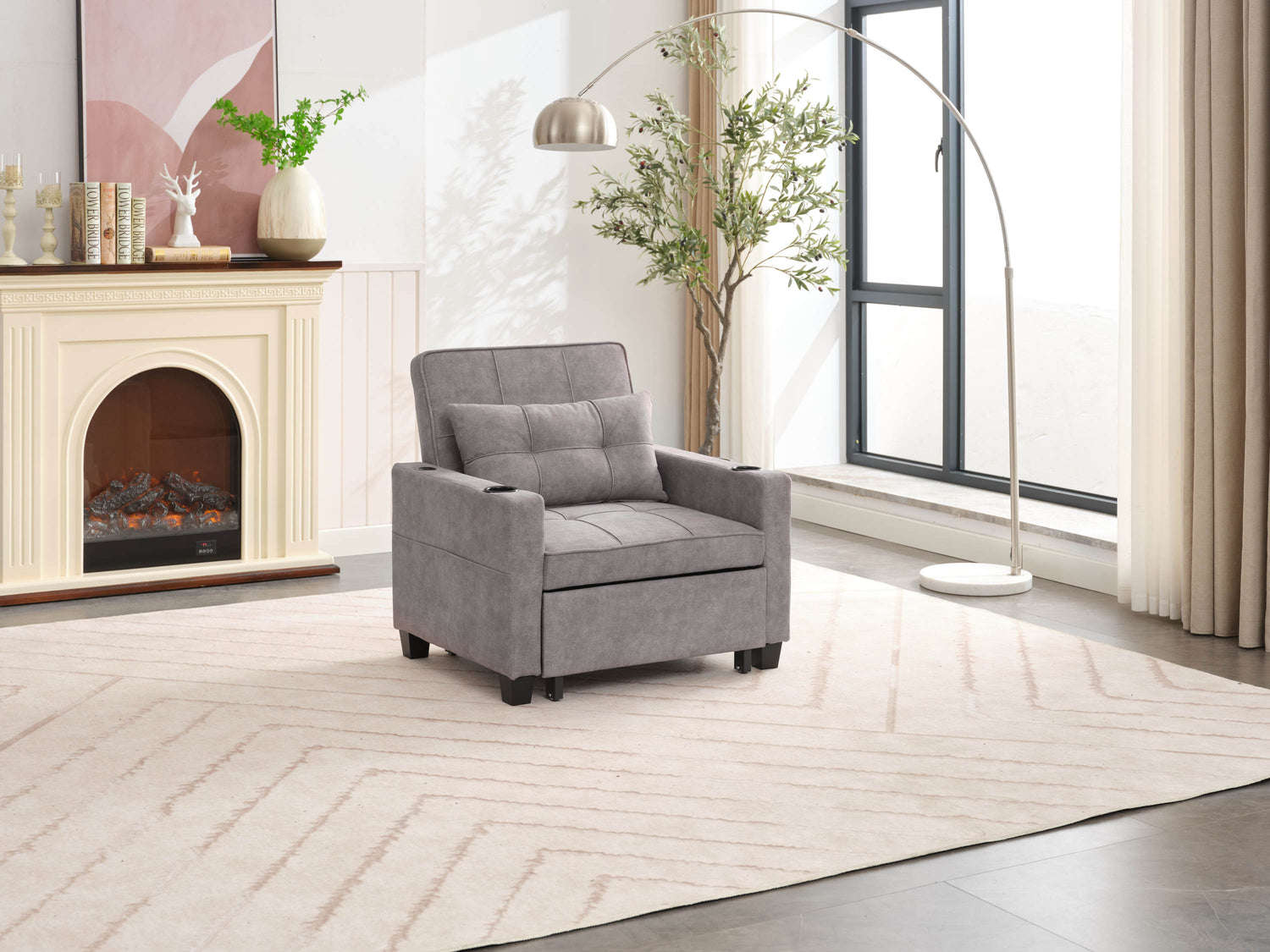 NEW Futon Chair Bed Convertible Chair 3-in-1 Pull Out Sleeper Chair Beds with USB Ports,Wear-resistant and Anti-scratch, Armchair Bed Sleeper for Living Room (Light Grey Scratch Cloth)