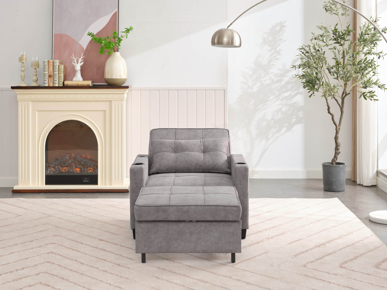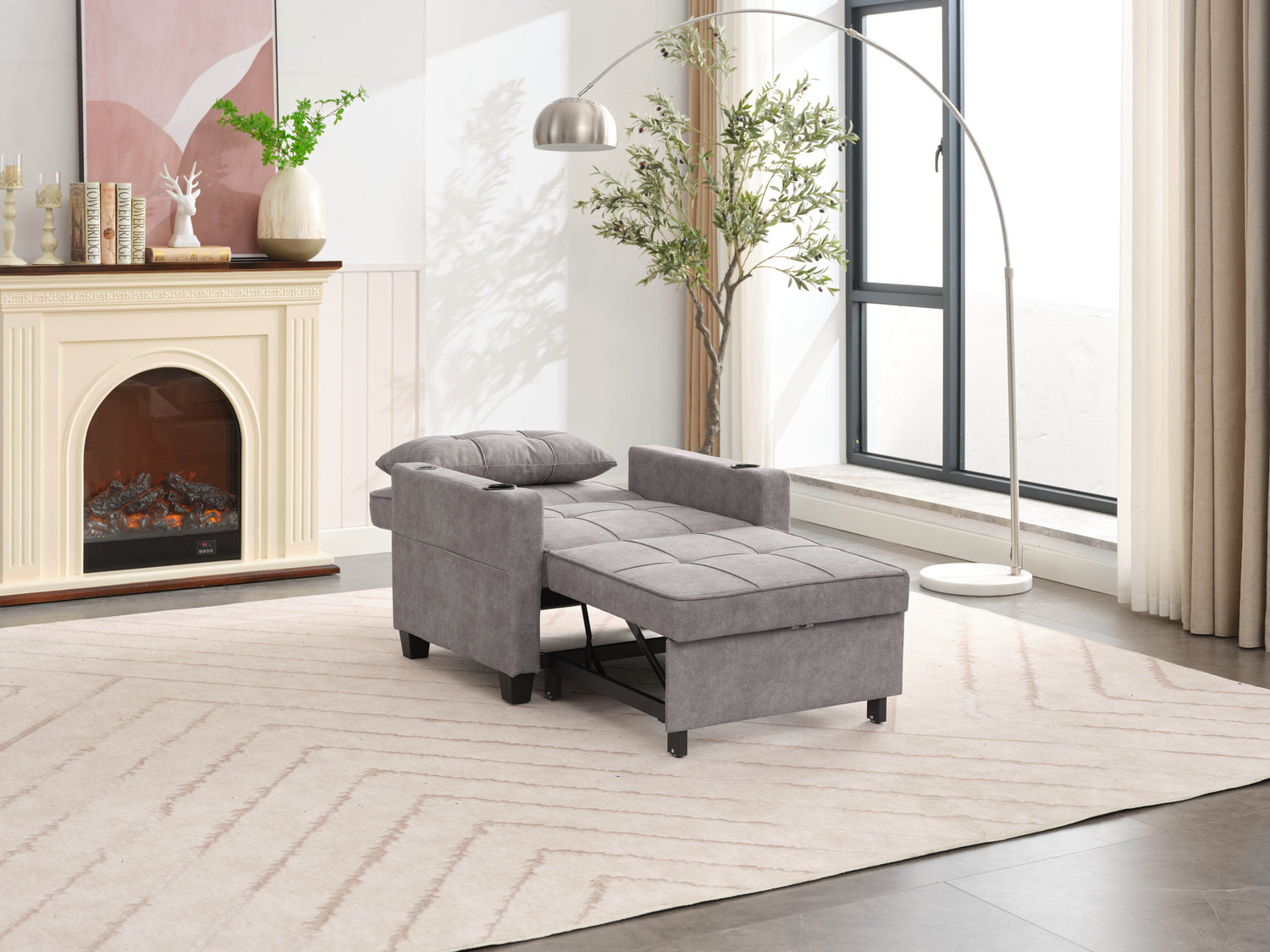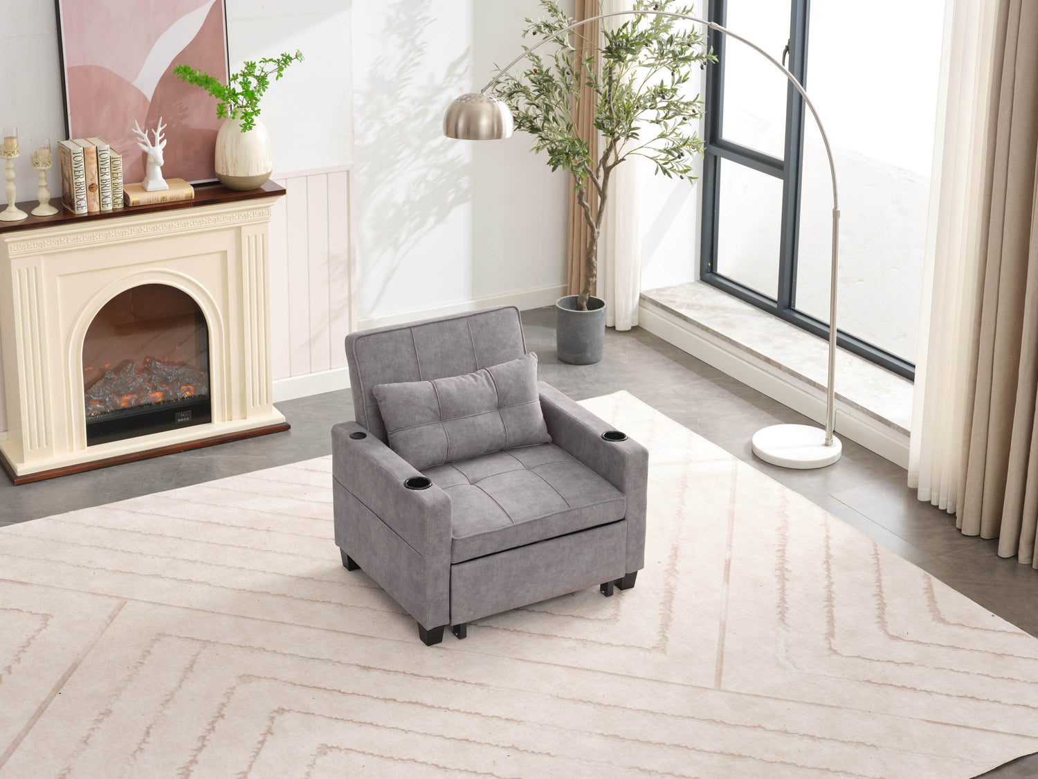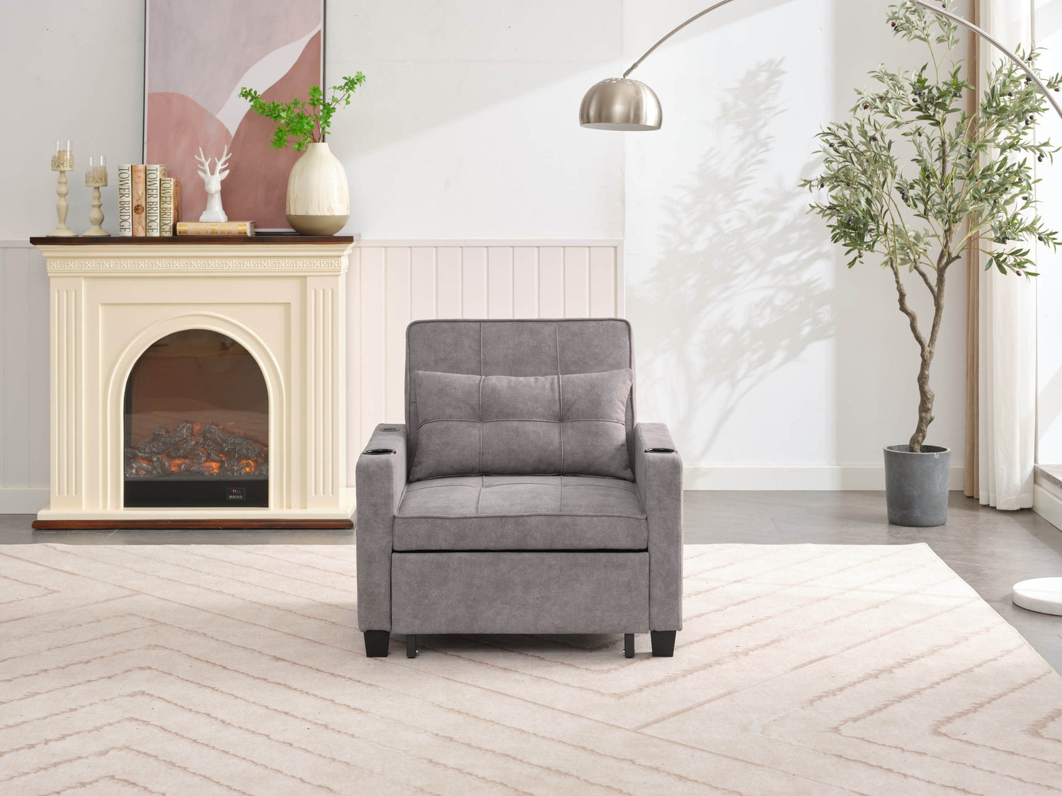 NEW Futon Chair Bed Convertible Chair 3-in-1 Pull Out Sleeper Chair Beds with USB Ports,Wear-resistant and Anti-scratch, Armchair Bed Sleeper for Living Room (Light Grey Scratch Cloth)