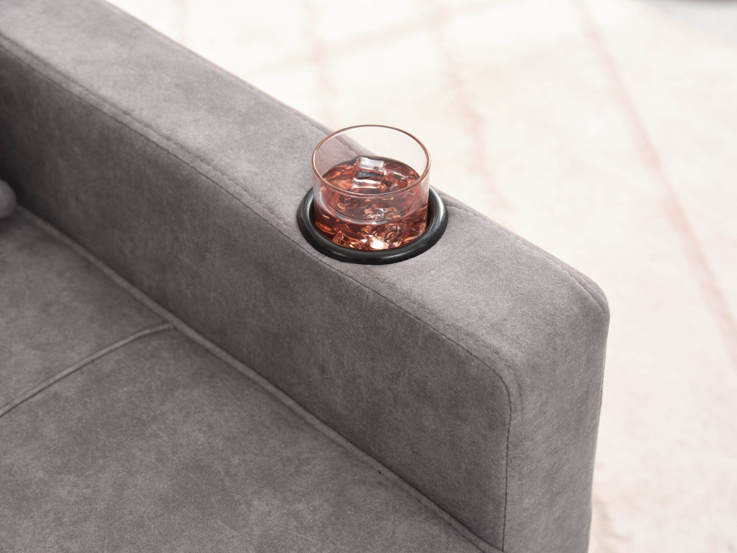 - USB AND CUP HOLDERS: There are 1 USB charging port and 1 Tapy C interface on the left armrest of the sofa for various charging cables, which can provide continuous power supply for your phone. There is a convenient cup holders design on the seat back to place drinks and cups. There are 4 side pockets and built-in cup holders to meet your daily needs.