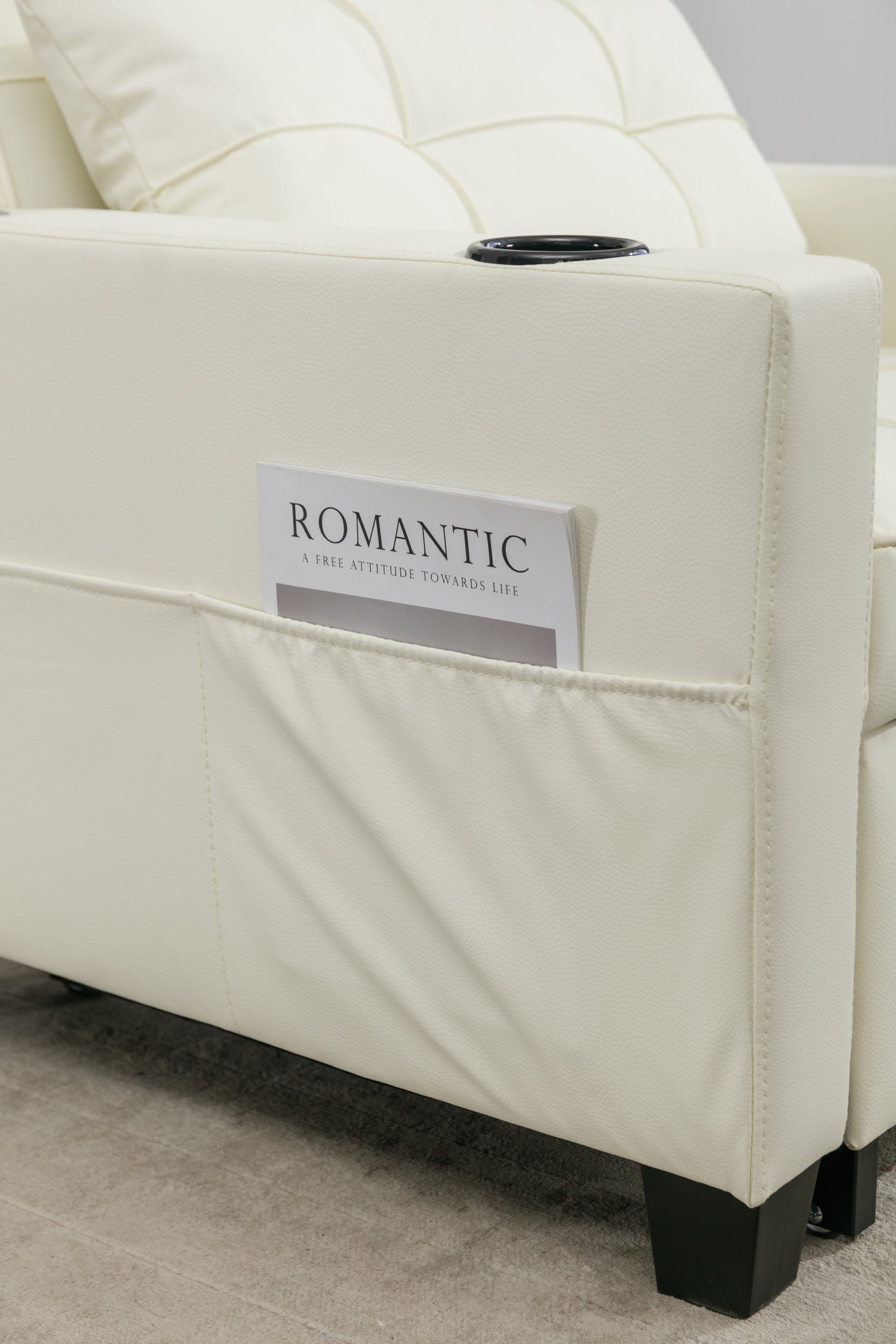 - USB AND CUP HOLDERS: There are 1 USB charging port and 1 Tapy C interface on the left armrest of the sofa for various charging cables, which can provide continuous power supply for your phone. There is a convenient cup holders design on the seat back to place drinks and cups. There are 4 side pockets and built-in cup holders to meet your daily needs.