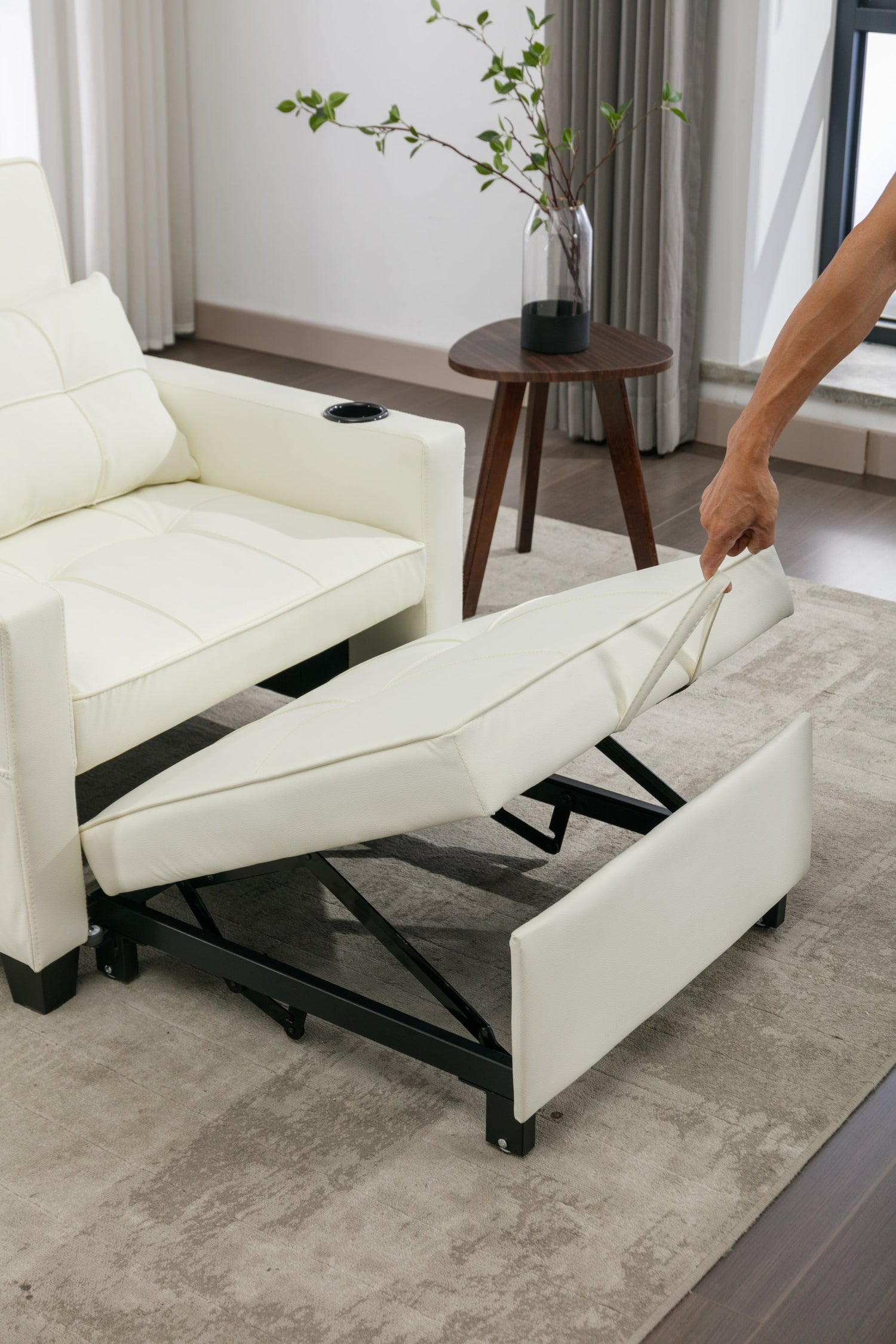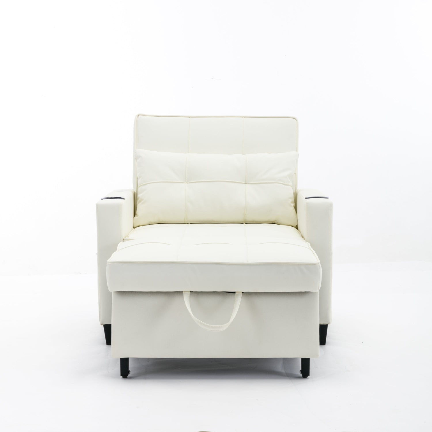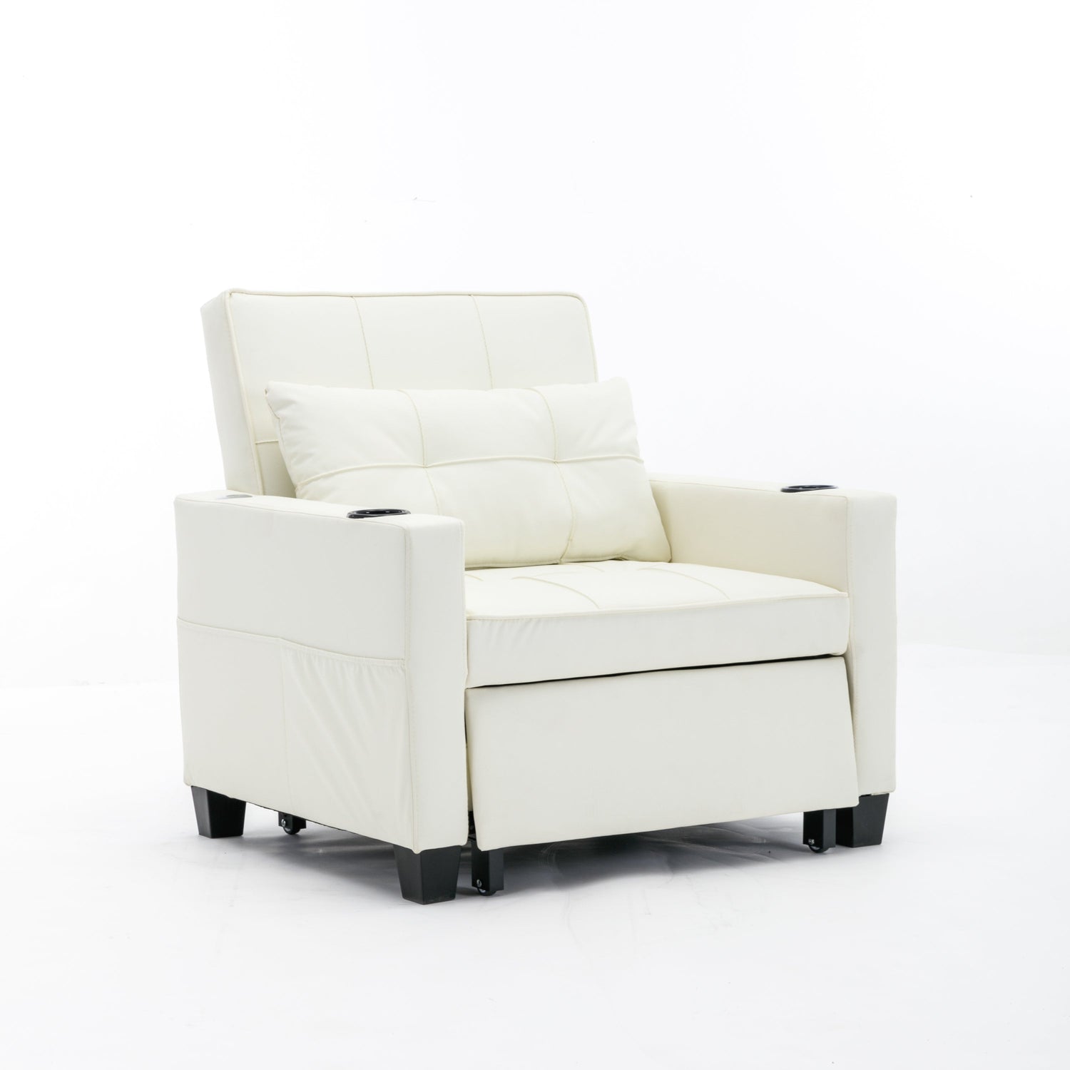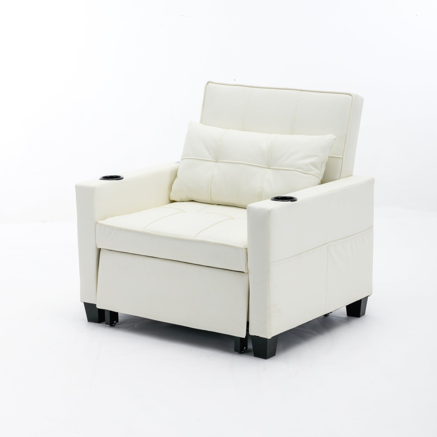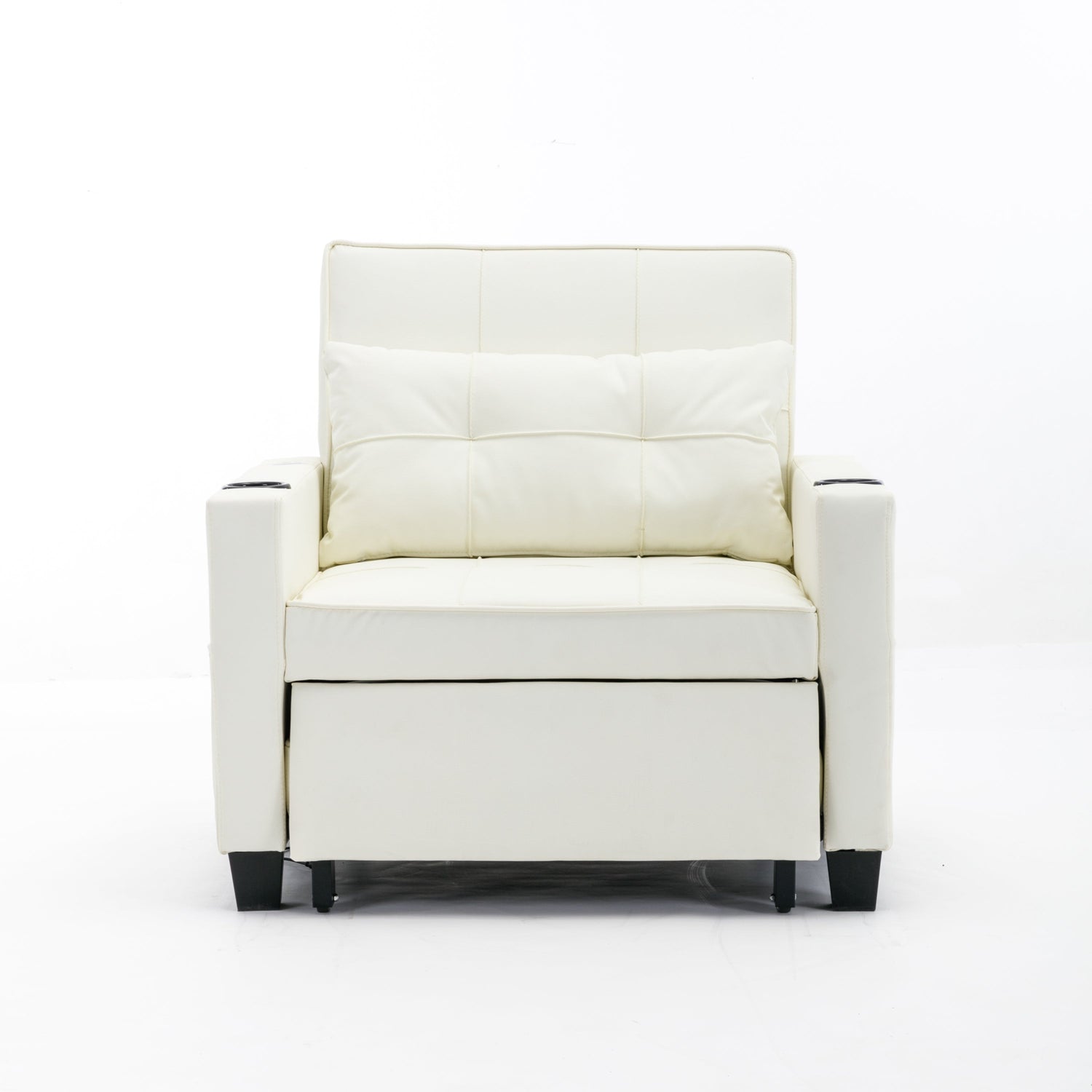 NEW Futon Chair Bed Convertible Chair 3-in-1 Pull Out Sleeper Chair Beds with USB Ports,Wear-resistant and Anti-scratch, Armchair Bed Sleeper for Living Room (White Leather)