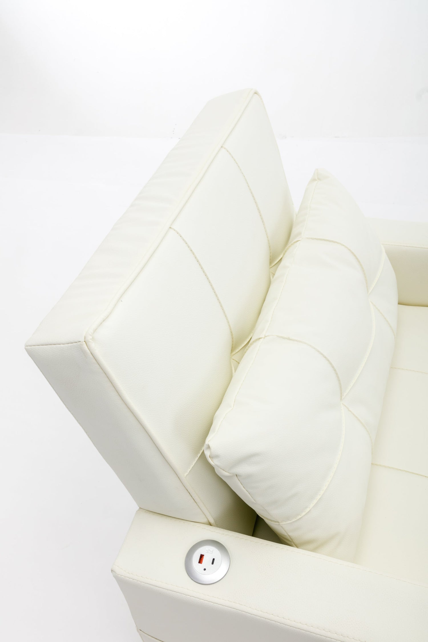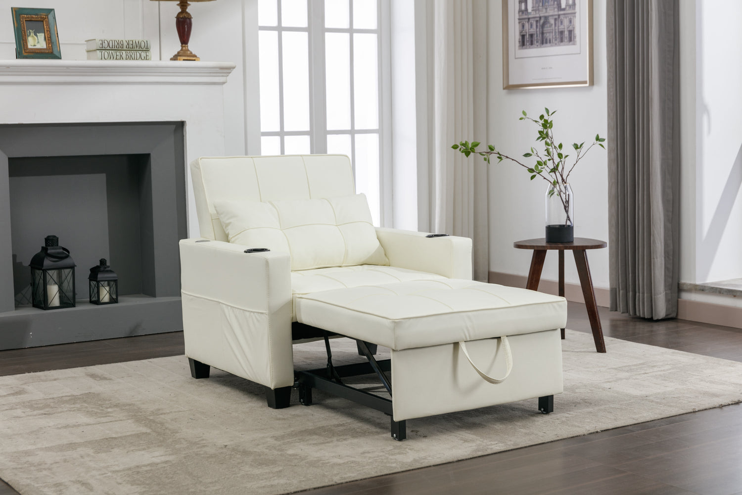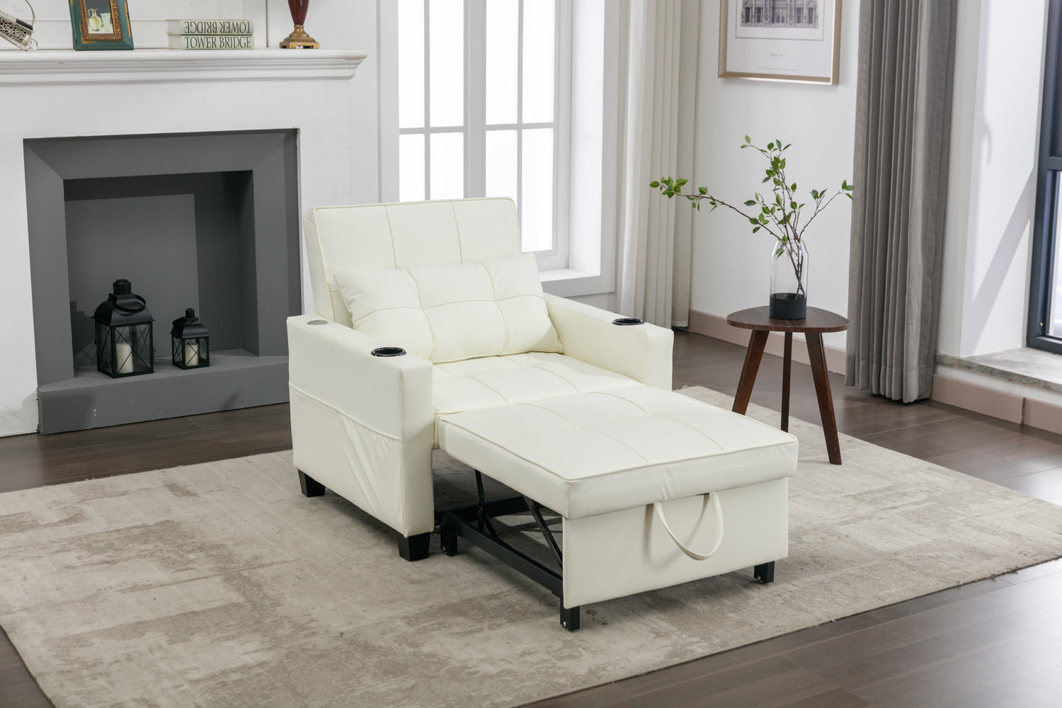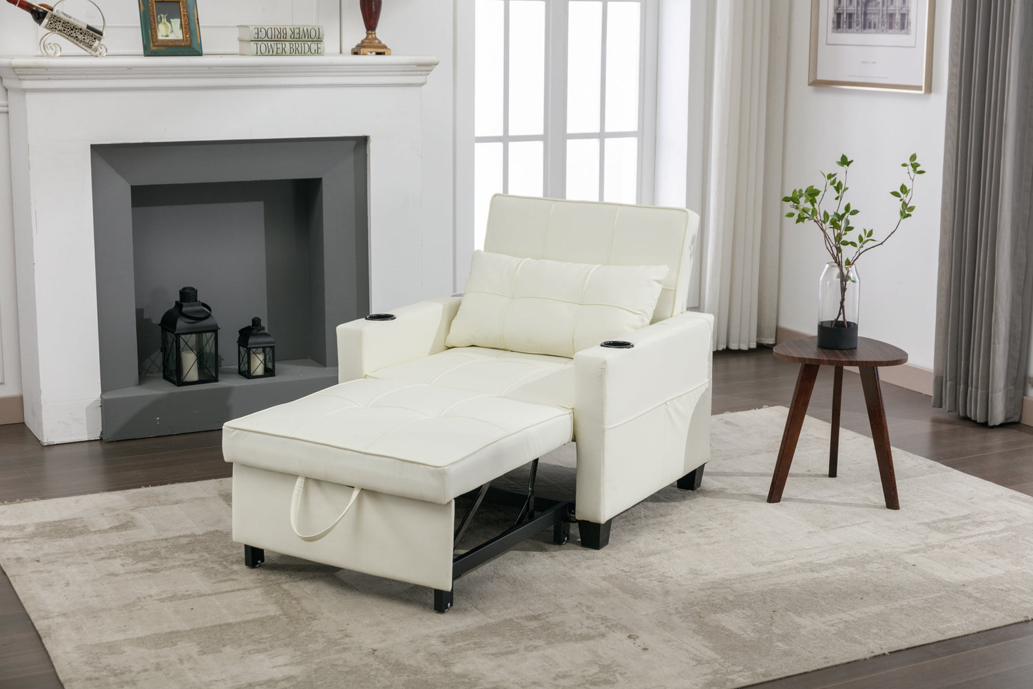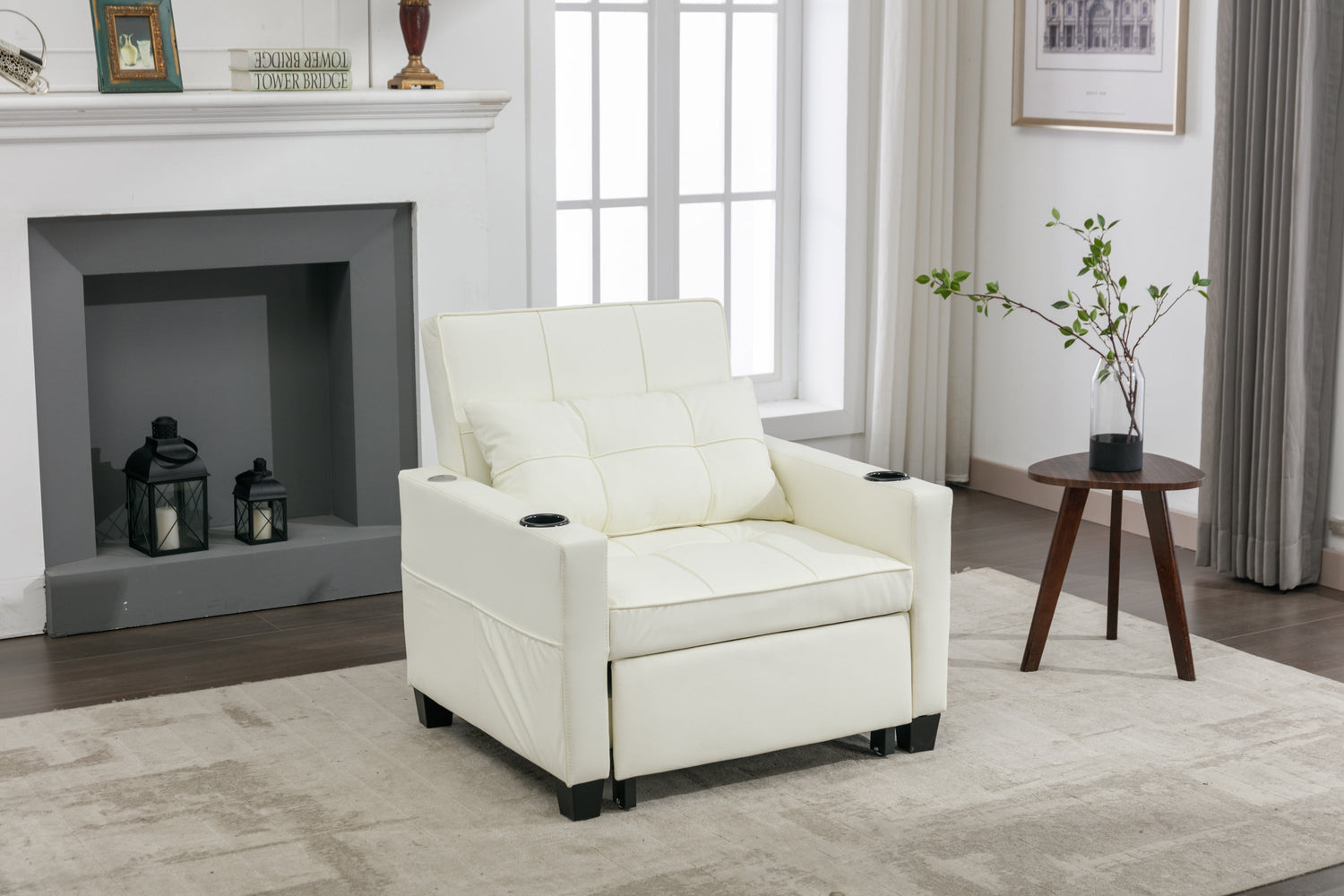 NEW Futon Chair Bed Convertible Chair 3-in-1 Pull Out Sleeper Chair Beds with USB Ports,Wear-resistant and Anti-scratch, Armchair Bed Sleeper for Living Room (White Leather)