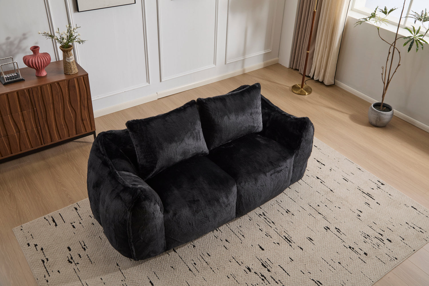 NEW Giant Bean Bag Couch for Adults, Ultra Soft Fluffy Loveseat Bean Bag Sofa, Oversized Chase Lounge Chair Indoor for Living Room Bedroom, No Assembly Required Cozy Reading Chair with Pillows, Black