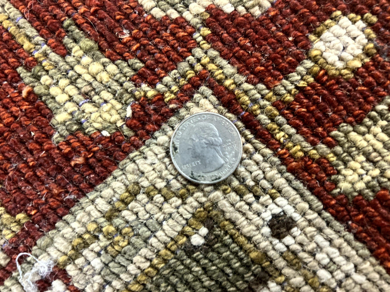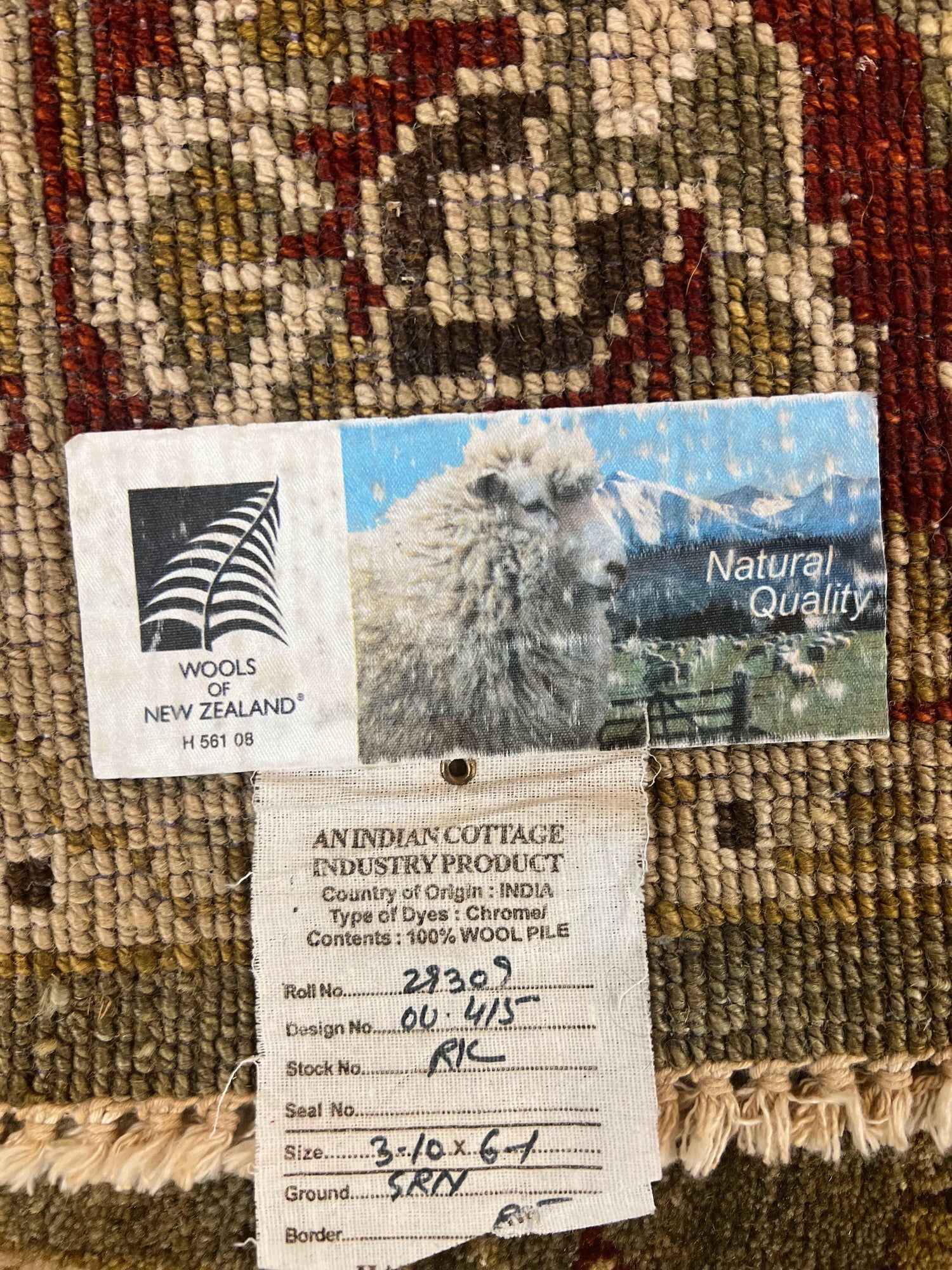 USED Indo Oushak Rug 4x6, Green and Maroon, Vintage Wool Floral Rug, Indian Agra Rug