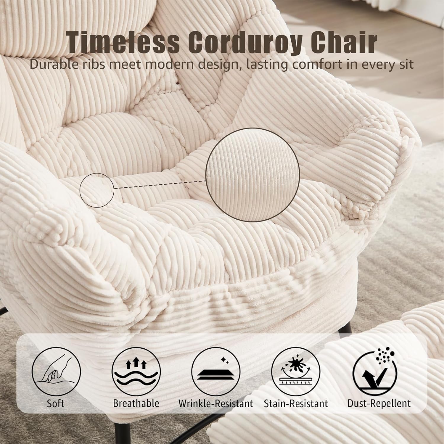 Wrap yourself in warmth and style—the white corduroy upholstery adds a modern touch to any bedroom or living space, while the ottoman footrest creates a complete, inviting lounging experience. It’s more than a chair; it’s your everyday sanctuary for reading, rest, and moments of calm.