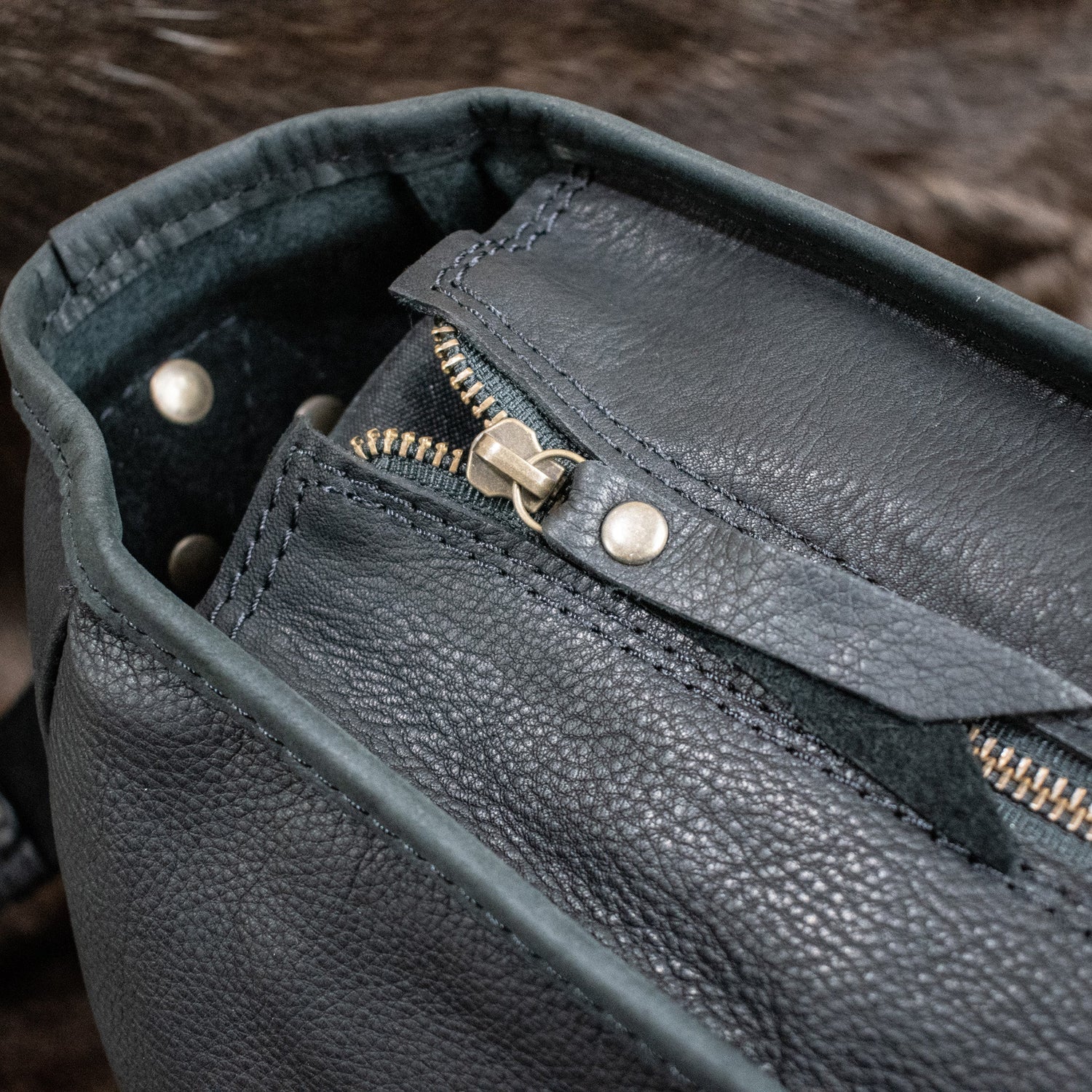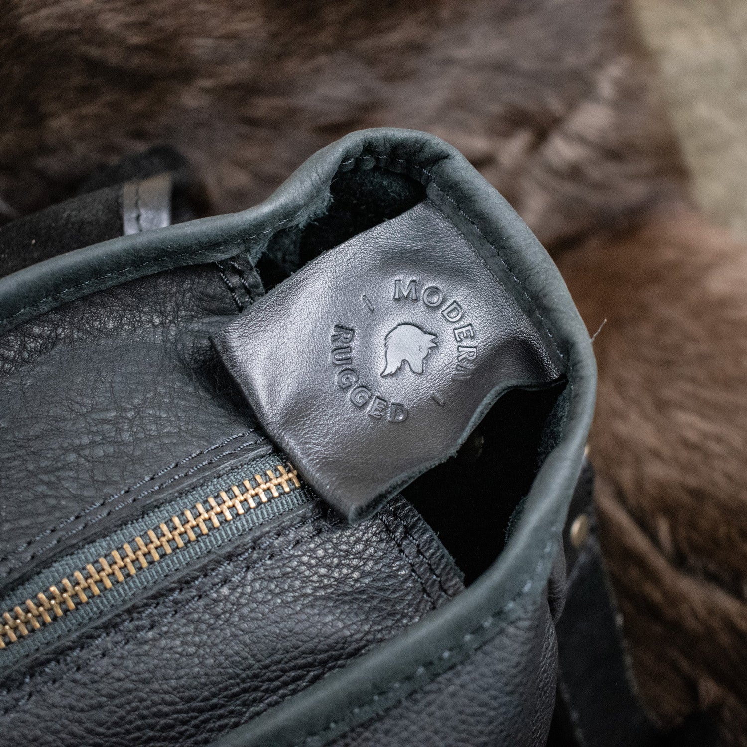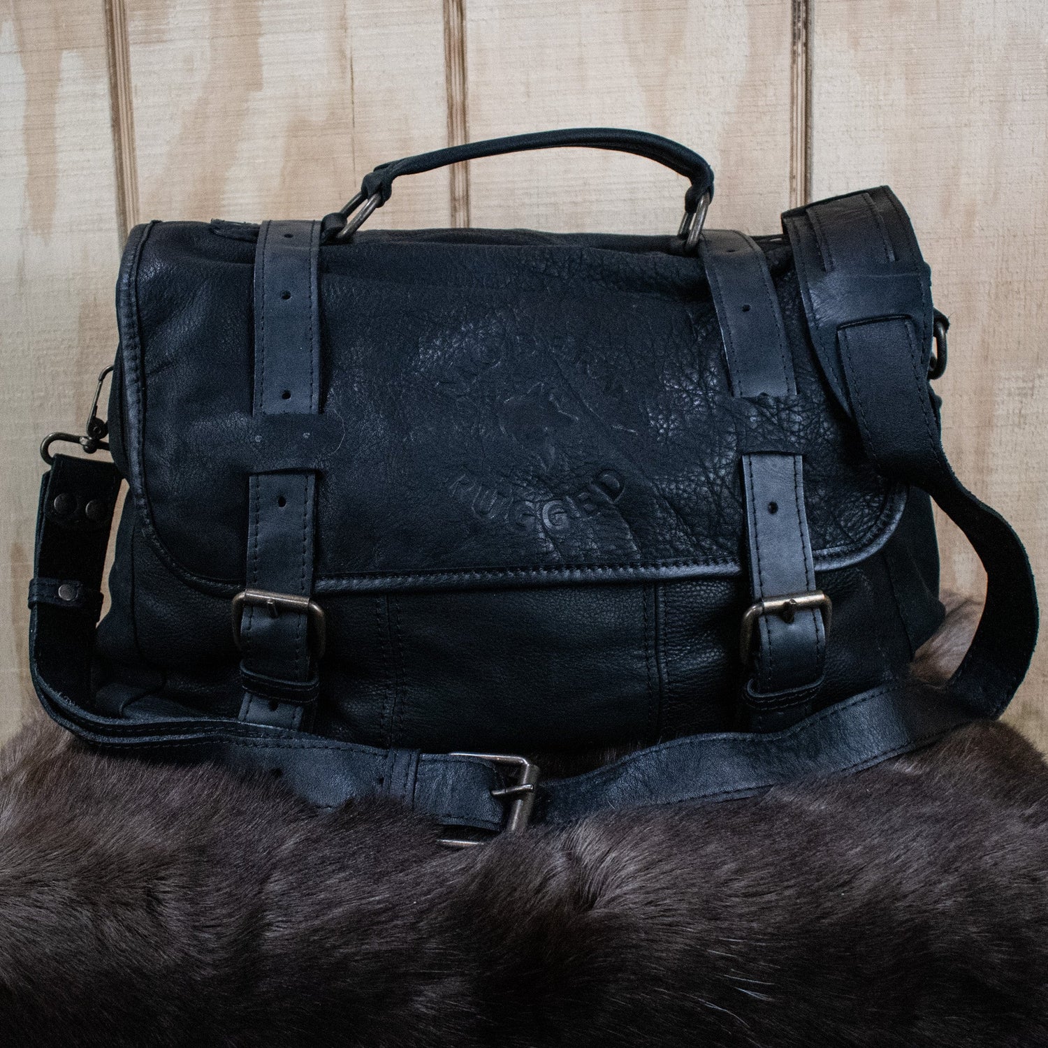 NEW Leather Hide Laptop Bag- Black (Buckles)