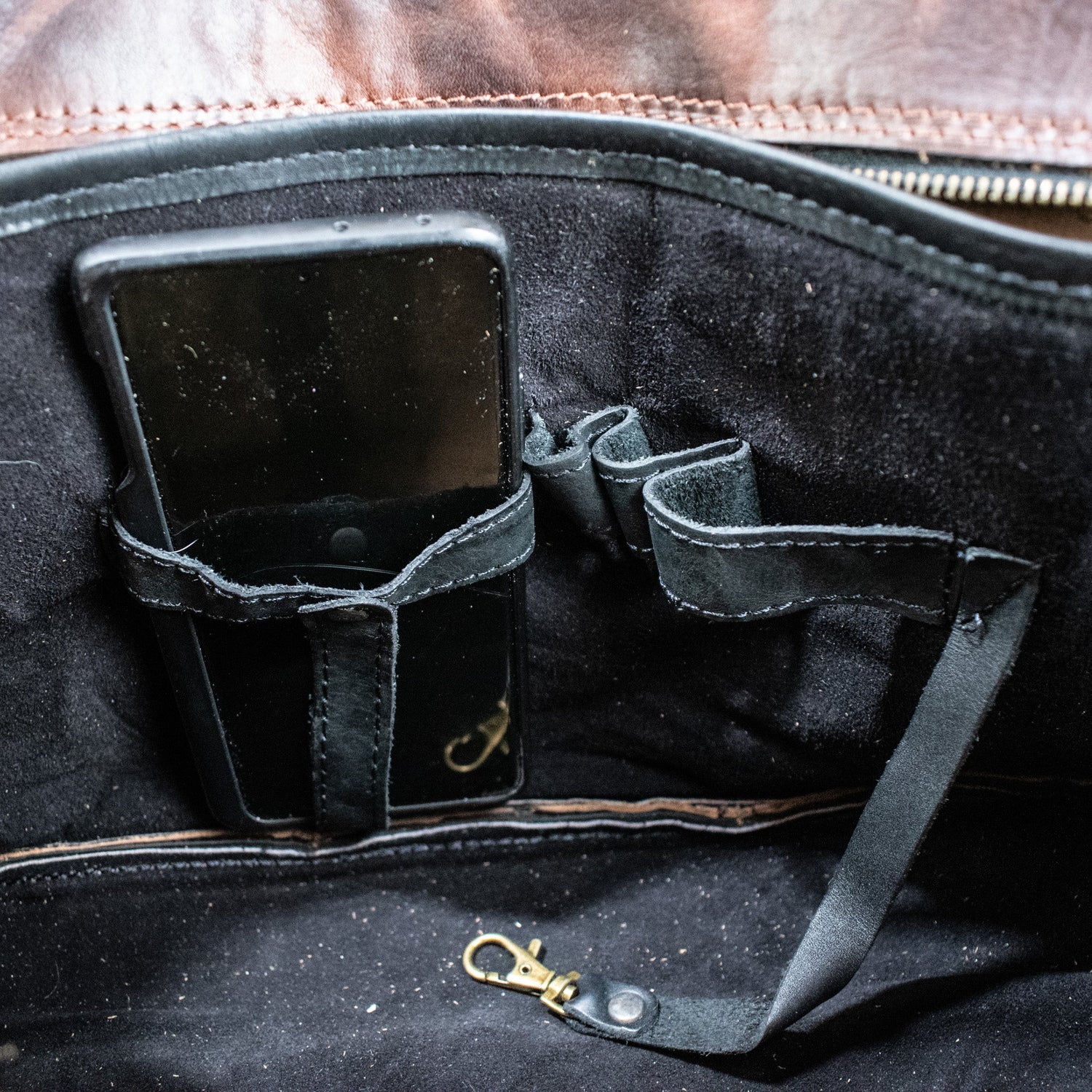 NEW Leather Hide Laptop Bag- Rustic Merlot and Black (Buckles)