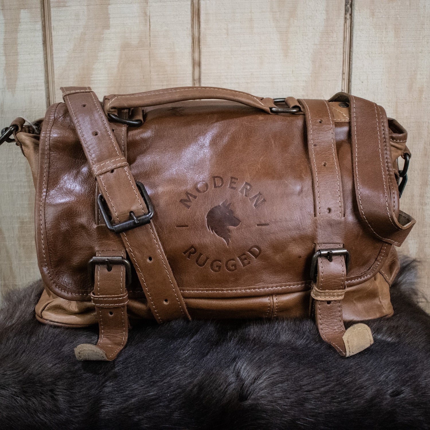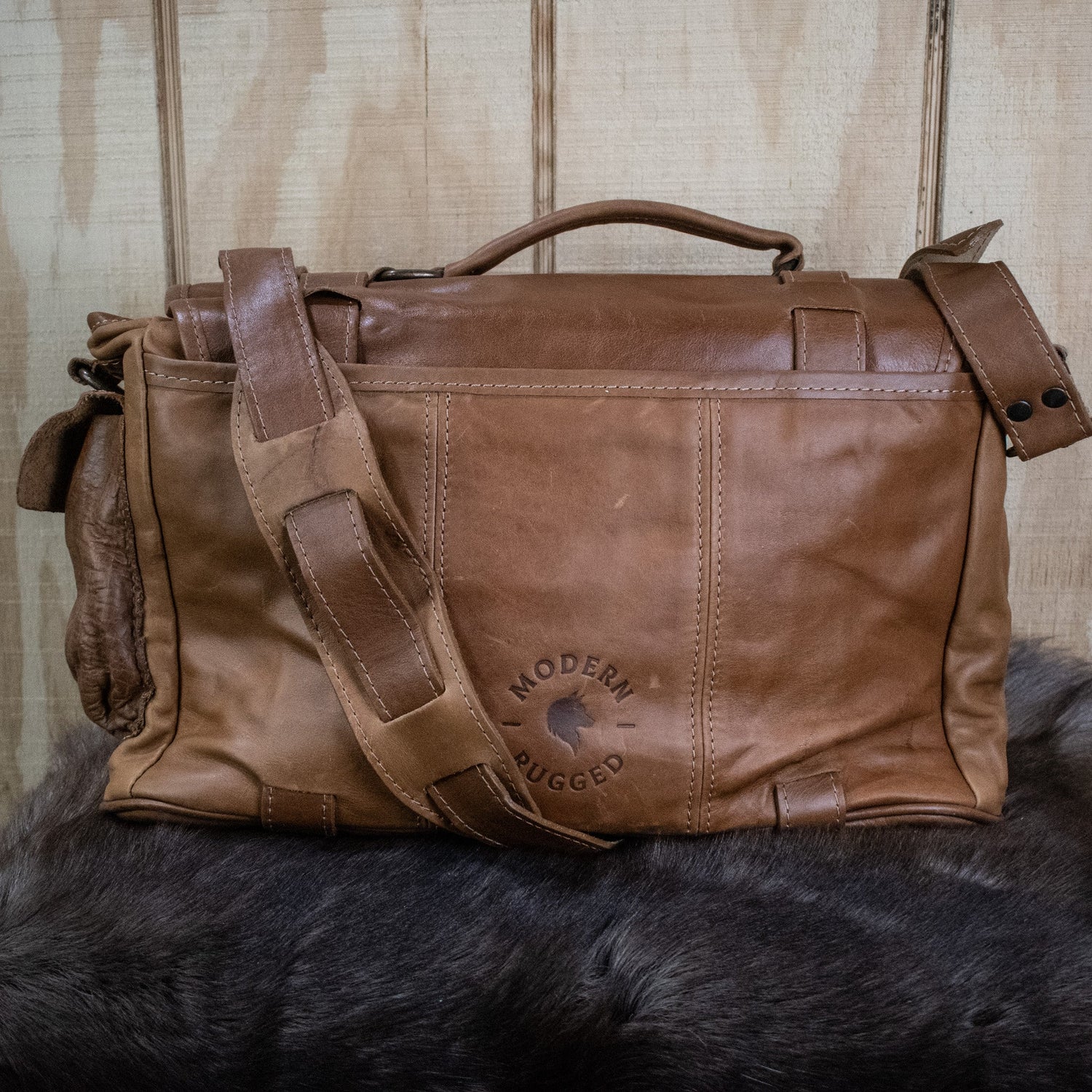 NEW Leather Hide Laptop Bag- Soft Tan (Buckles)